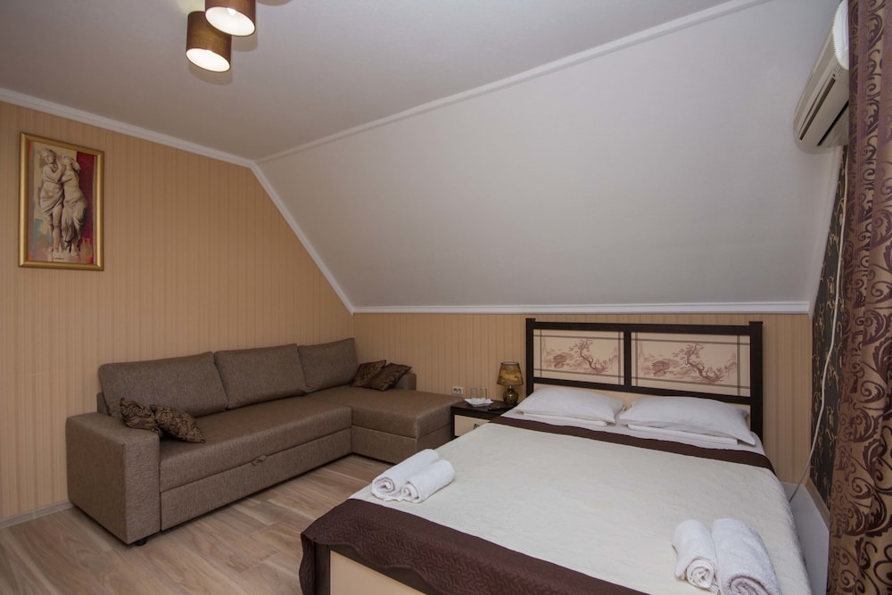 Experience Tranquility in a Lush Garden Setting. Take advantage of the complimentary wireless internet and tour/ticket assistance. Relax at the picnic area or fire up the barbecue grills. Savor Delights at the Snack Bar/Deli offering tasty treats for guests. Enjoy amenities such as a 24-hour front desk and luggage storage. Explore Nearby Attractions like Church of St. Vladimir and Albatross Beach within walking distance. Discover the comfort of one of the 10 air-conditioned rooms with modern amenities. Don't miss the chance to book your stay at Vinograd Hotel and create unforgettable memories.