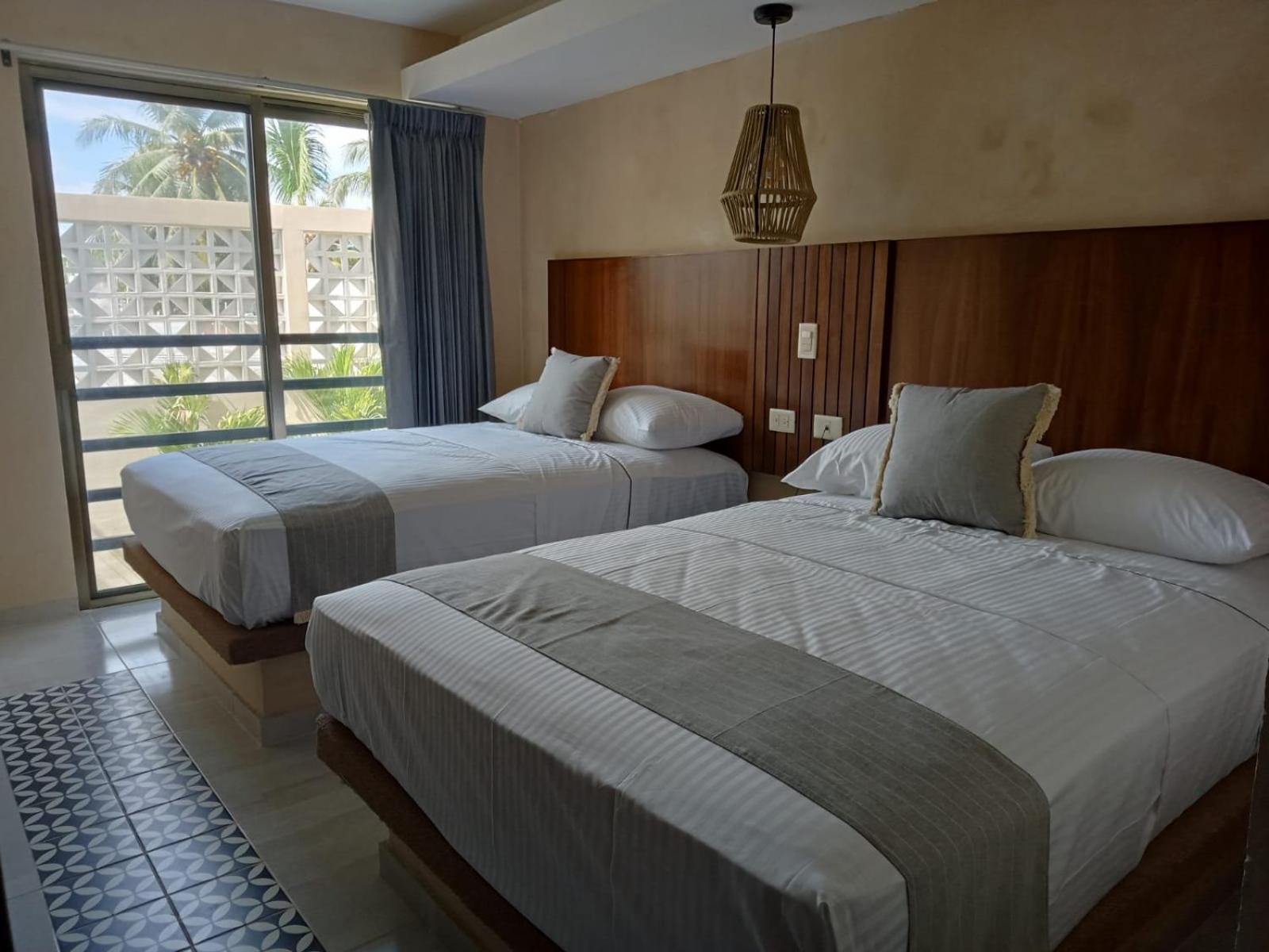Bonito hotel cercano a la playa y a muchos restaurantes. Habitación comoda, amplia con buen aire acondicionado, decoracion muy agradable. Alberca.
