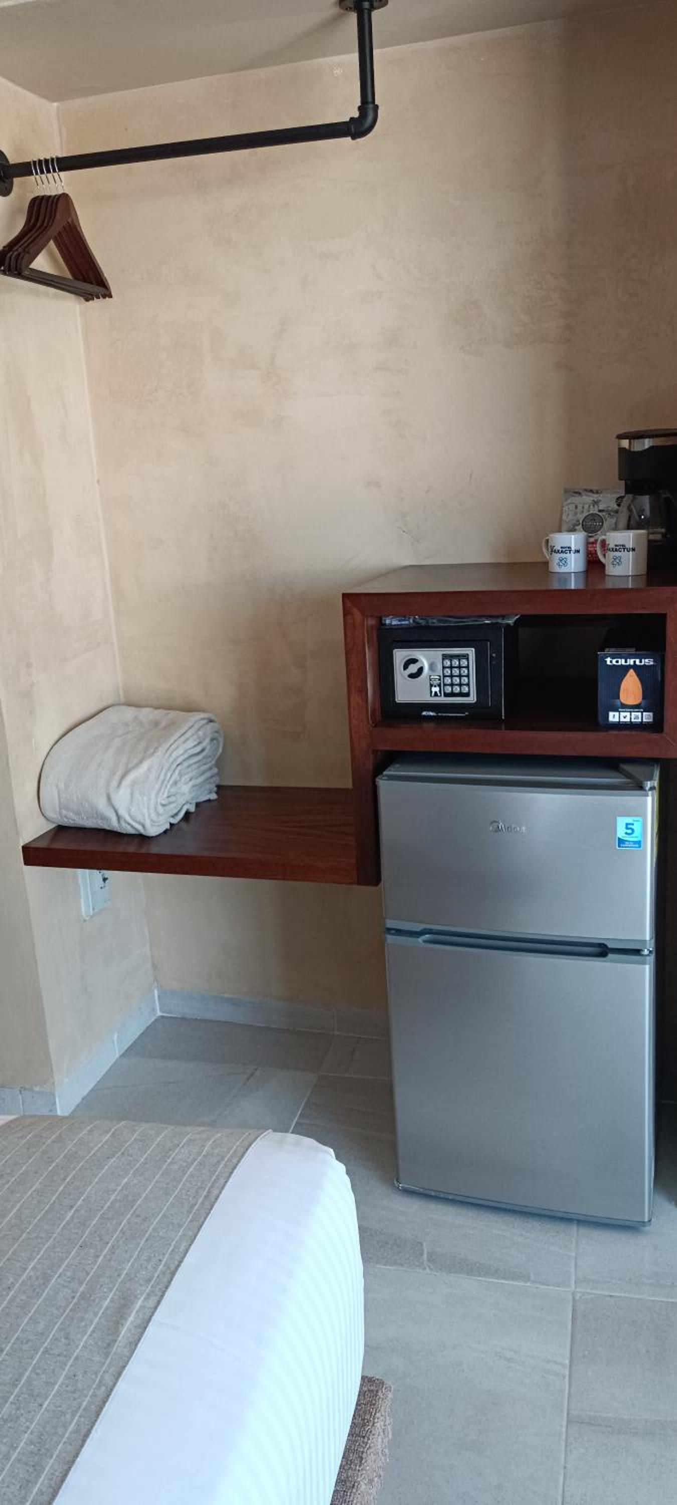 Clean and comfortable. I really like having a coffee maker in the room.