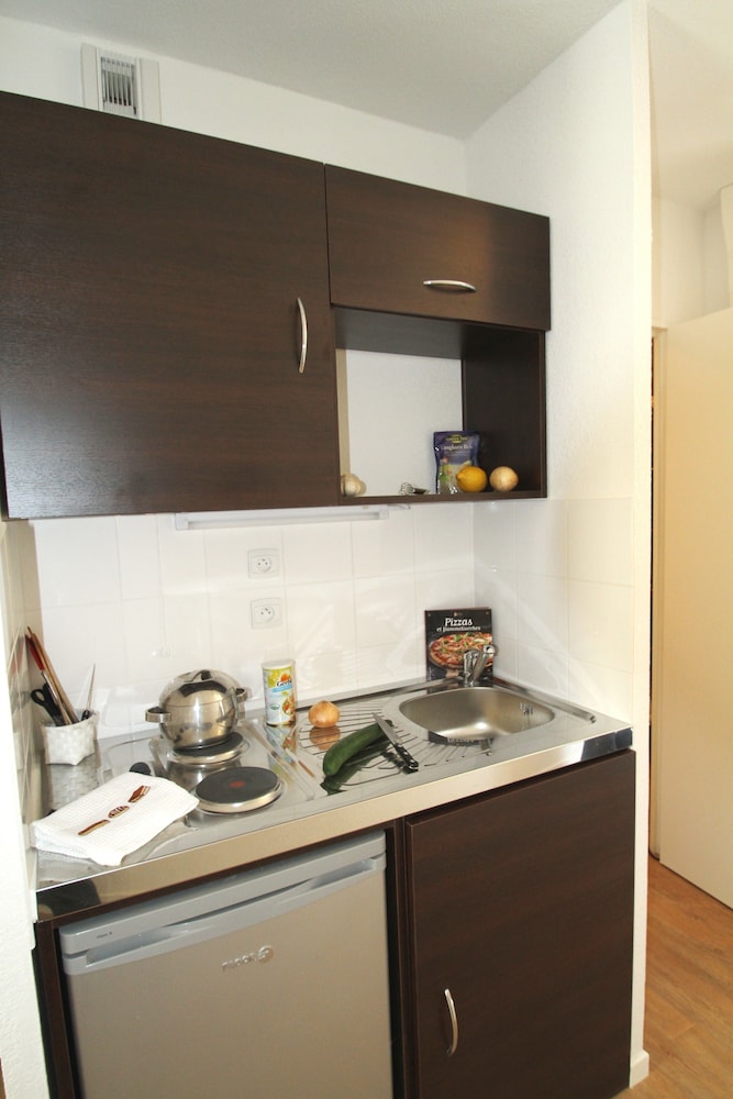 Bien équipé. Par contre la propreté était douteuse. Mur où était adossé le lit très sale et ne parlons pas de la salle de bain où il y avait des taches dont je ne préfère pas connaître l'origine sur la porte et les murs surtout derrière le sèche serviette.