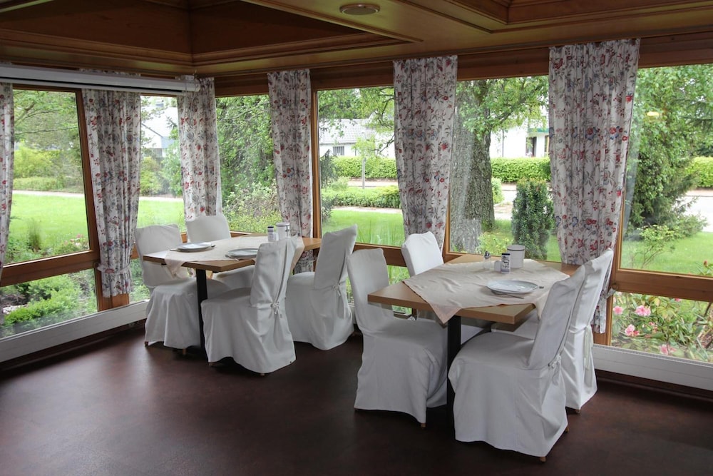Erster Eindruck: das Hotel sieht etwas verlassen aus; kein Personal, nahezu leerer Parkplatz, Zimmerschlüssel im Briefkasten • angenehmes Einzelzimmer mit großem bequemen Bett, Schreibtisch und Balkon, kleines Bad mit Regendusche, älteres aber gepflegtes Mobiliar • Negativ: sehr wenig Steckdosen, voller Aschenbecher auf dem Balkon, leer hingegen die Behälter für Kosmetiktücher und Hygienebags, WC-Sitz durchgebrochen (Verletzungsgefahr), Duschwand klemmt, beengte Dusche mit etwas schwachem Wasserdruck • Zugang zum Wintergarten und kleinem Fitnessraum nicht beschildert und nicht aufgefunden; Außentüre nicht mit Zimmerschlüssel zu öffnen • Positiv: ruhige Lage in Waldrand-Nähe, schöne Wanderwege in der Umgebung, günstiger Zimmerpreis • Menschlich: frühzeitige Mail bzg. Ankunftszeit und Frühstückswunsch - dann am Vorabend Mitteilung, dass das Frühstück aufgrund Personalmangels nicht möglich sei; beim Check-Out freundliche Entschuldigung + Café auf Kosten des Hauses