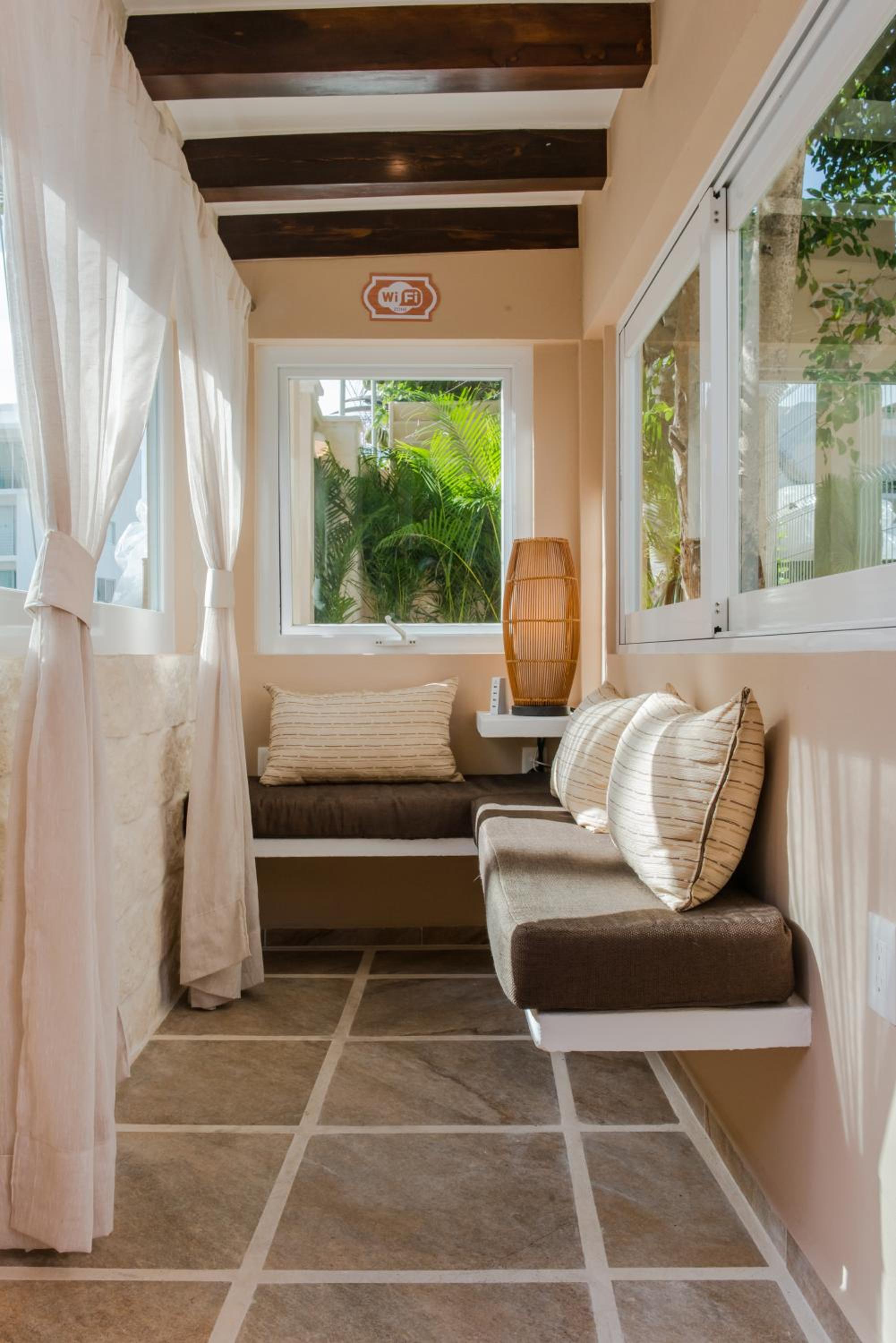 No tenía wifi, las cortinas no tapaban adecuadamente la ventana, un wc no funcionaba correctamente, las lámparas de buró, no funcionaban, sólo había un control para 3 aires acondicionados. El estacionamiento no es funcional.