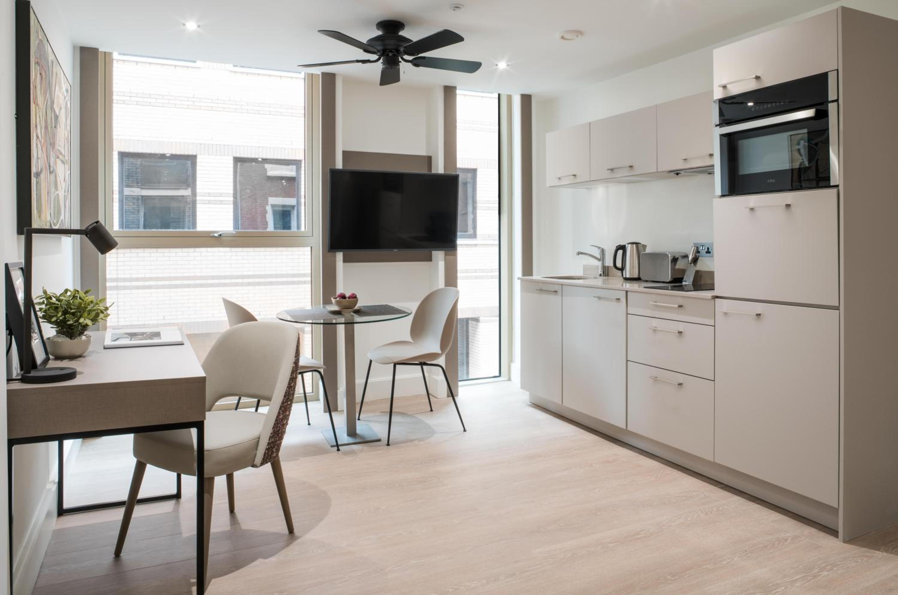 Experience the epitome of comfort at The Chronicle by Supercity Aparthotels in London. Each suite is elegantly designed and equipped with a flat-screen TV, a fully equipped kitchen, and a private bathroom with premium toiletries. Upgrade to our Executive or two-bedroom suites for added luxuries like Chromecast for your entertainment needs.