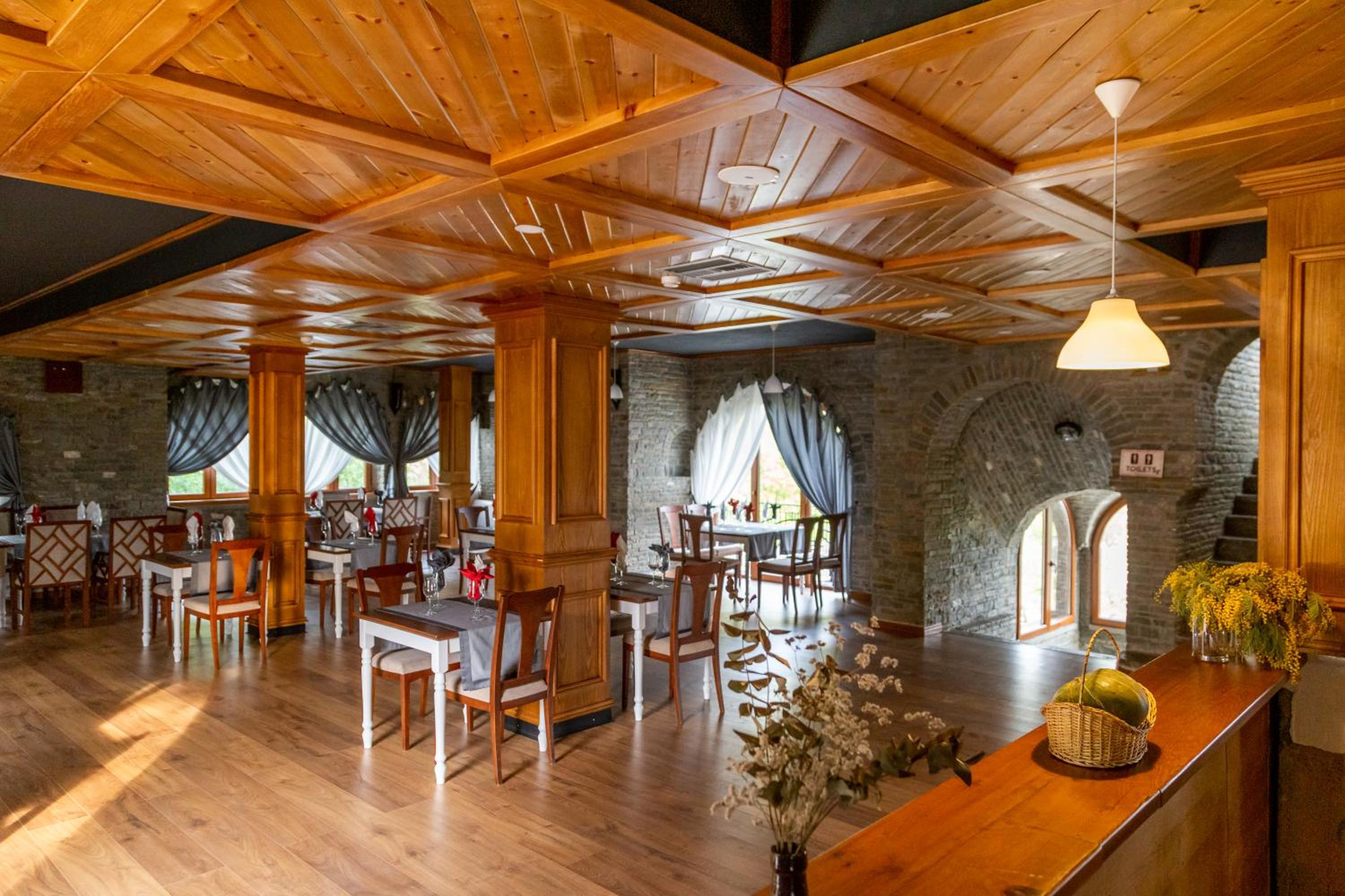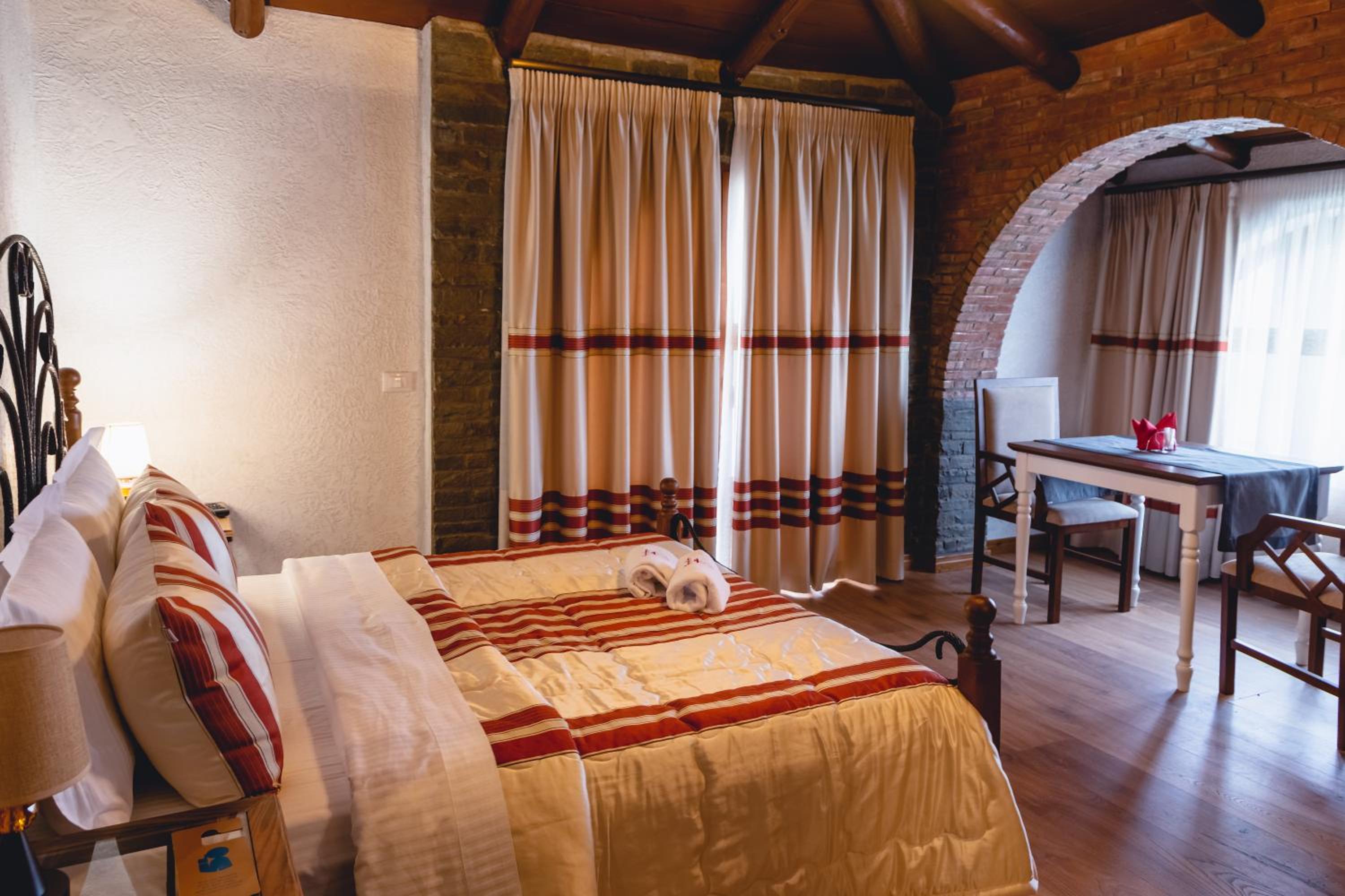 Great location for airport (35 minutes). Very rural with an insight to countryside of Albania. Staff very helpful and friendly. Lovely restaurant and tasty dinner and breakfast. Great bedroom with huge balcony that we did yoga on.