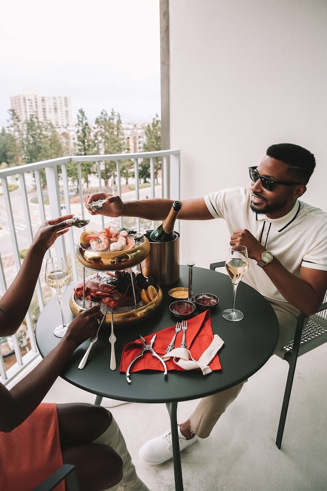 Very close to shopping (walking distance to Westfield Century City), seems like there is a Waymo always waiting outside the entrance, excellent view of the city and skyline, very large and clean suite, gave us extra sheets, pillows, and slippers upon request, very helpful in arranging for car service, and excellent concierge service at the lounge. The only minor negative experience (not the hotels fault) is the hoking of car horns due to the occasional bad traffic etiquette of cars entering the mall across the street; but, that was on the busier shopping weekend (Black Friday).