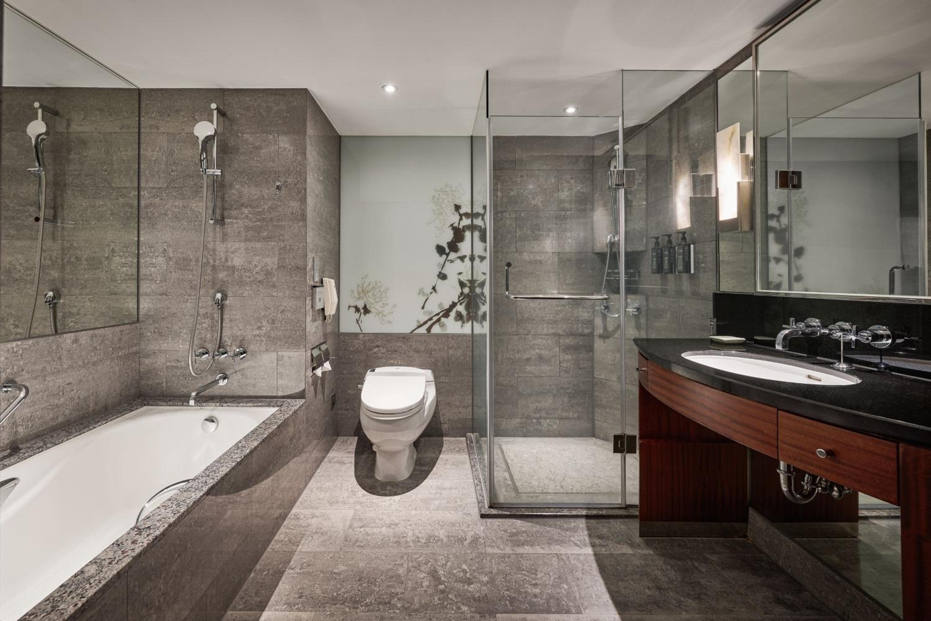 Unwind at the day spa, take a refreshing dip in the outdoor pool, or pamper yourself with premium toiletries in the large bathrooms featuring bathtubs and bathrobes.