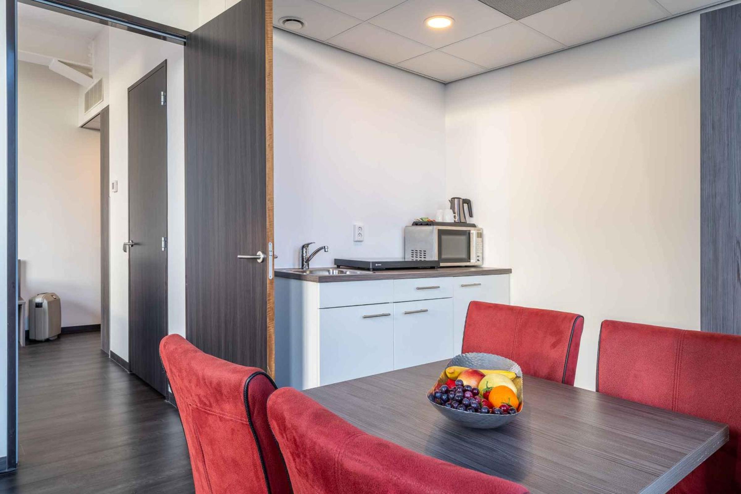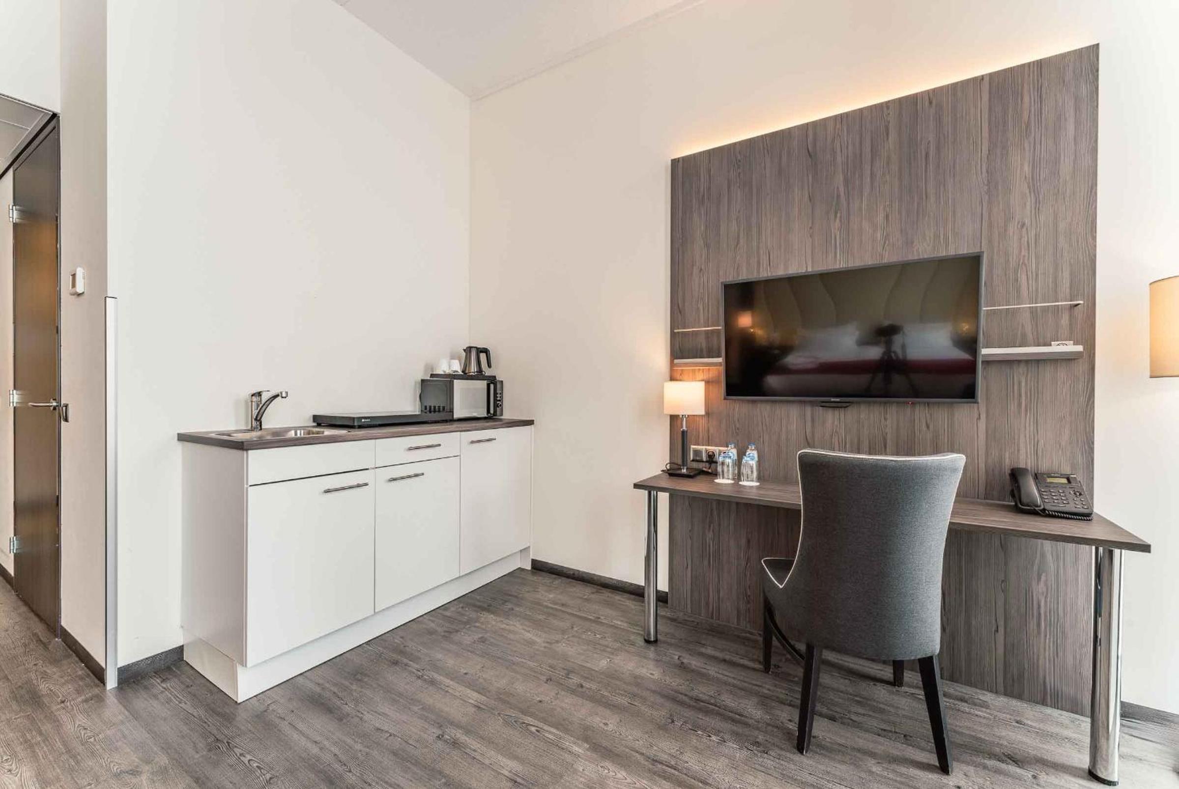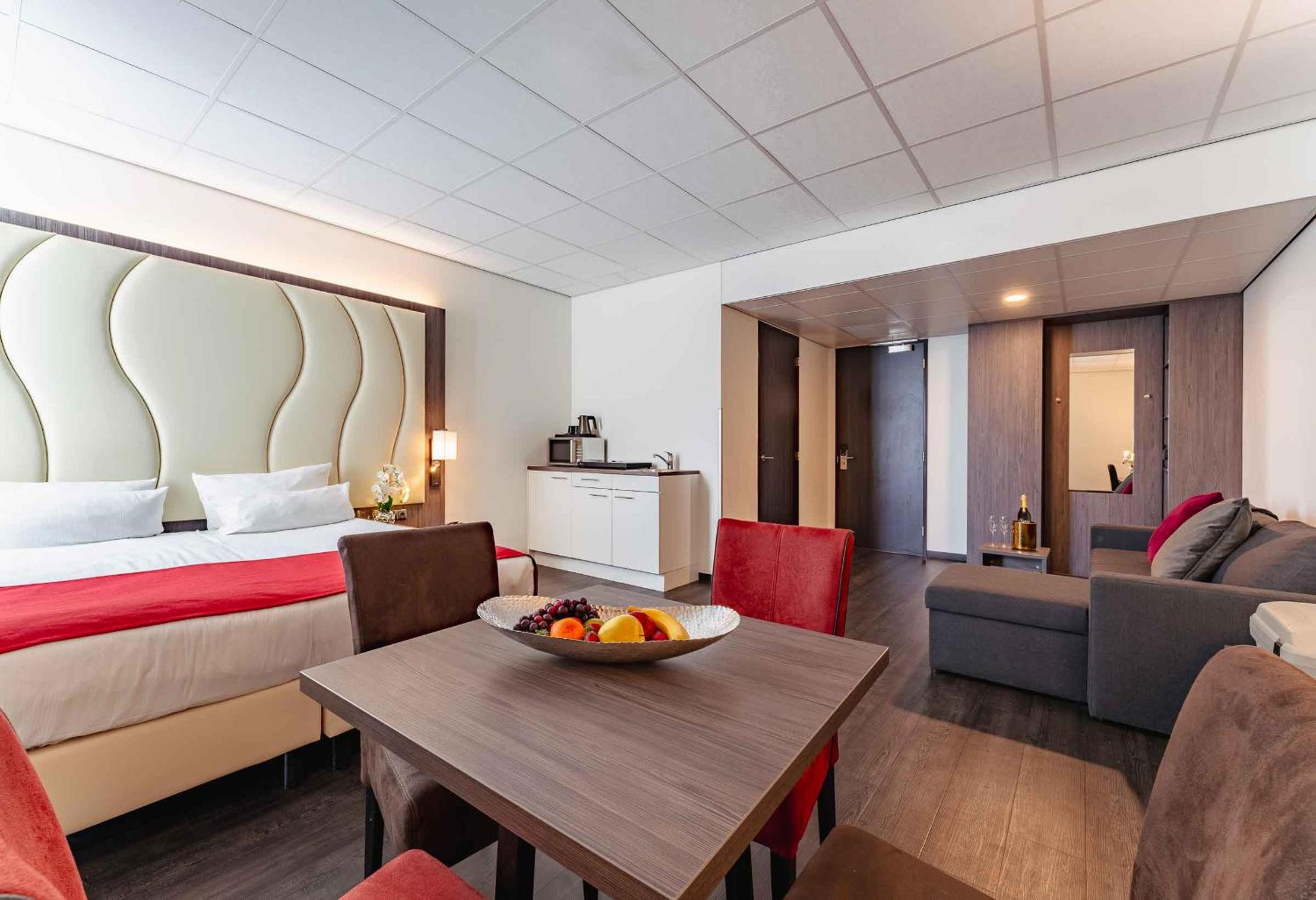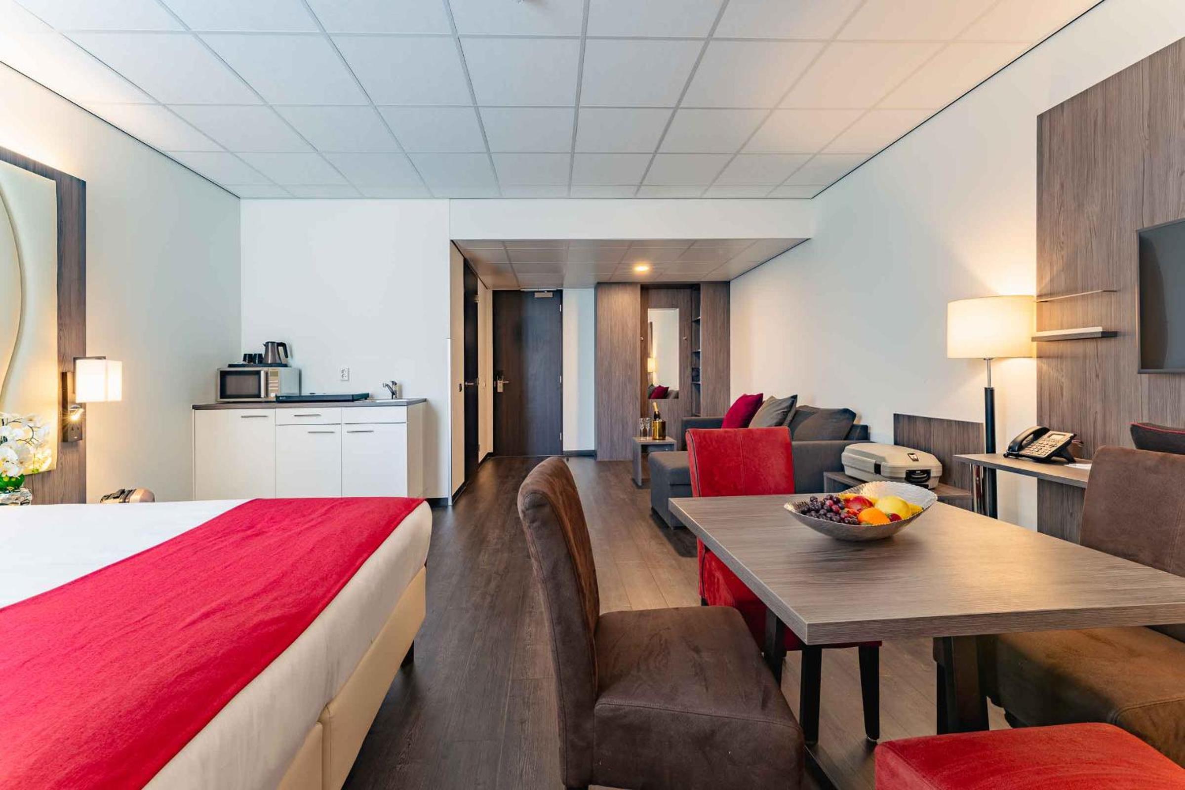 We kregen een upgrade van on onze kamer , de kamer had als uitbreiding een soort eigen huiskamertje met een kitchenette . Wat een relate manier van verblijf , buiten een goed bed ook nog een soort huiskamer waarin we rustig tv konden kijken en een beetje konden bijkomen van onze reis