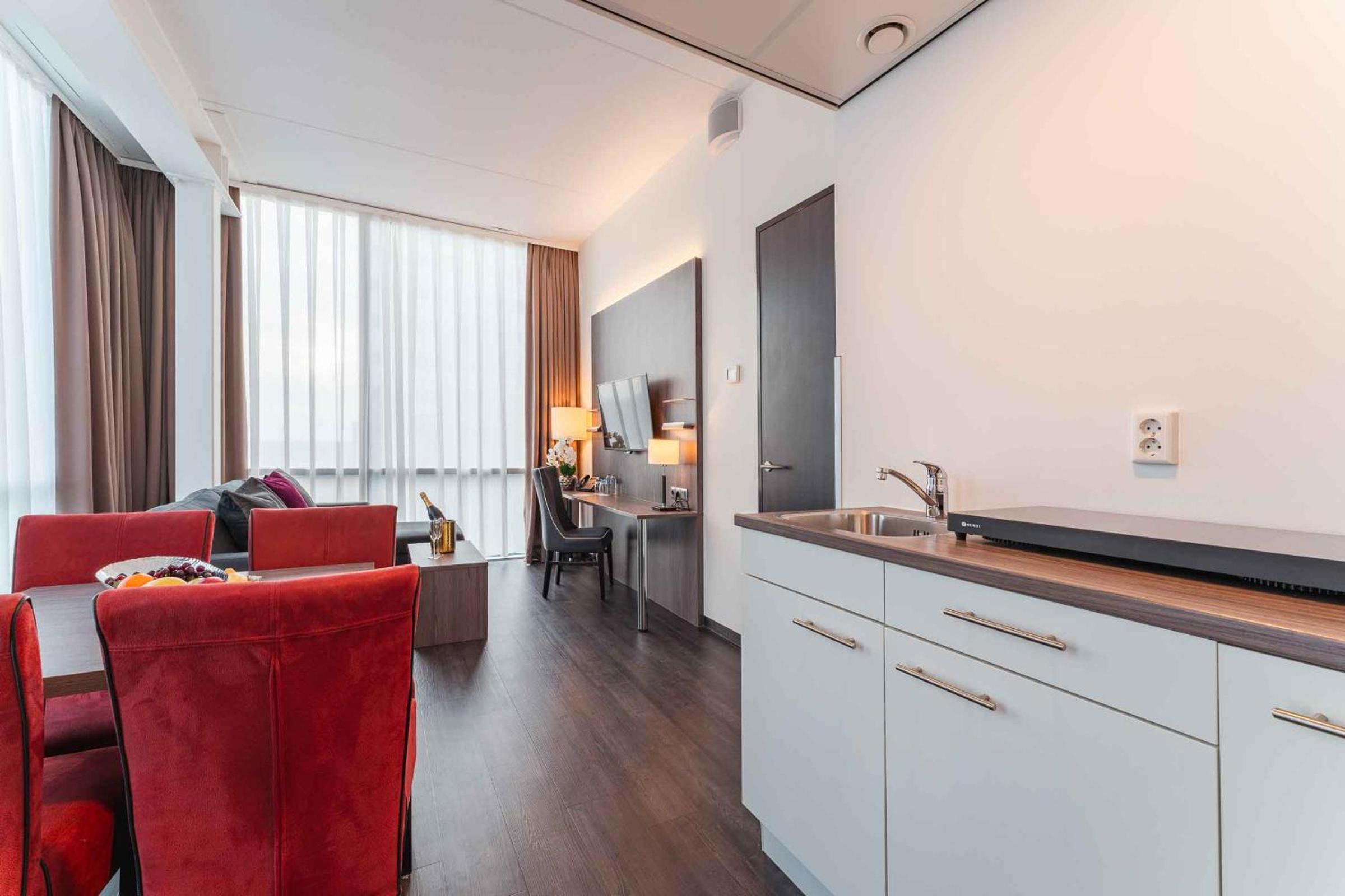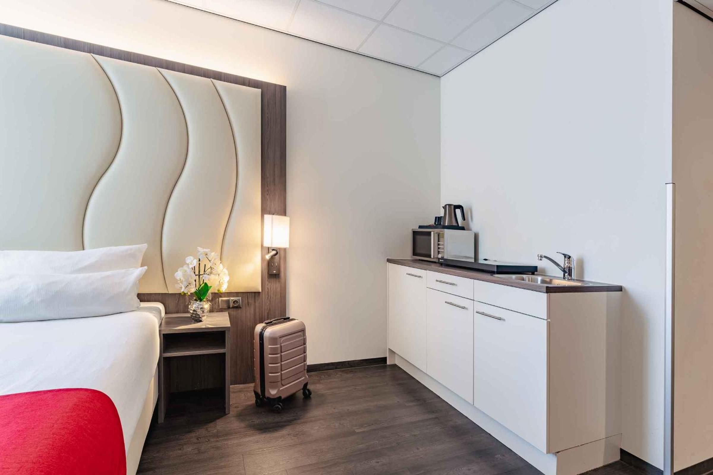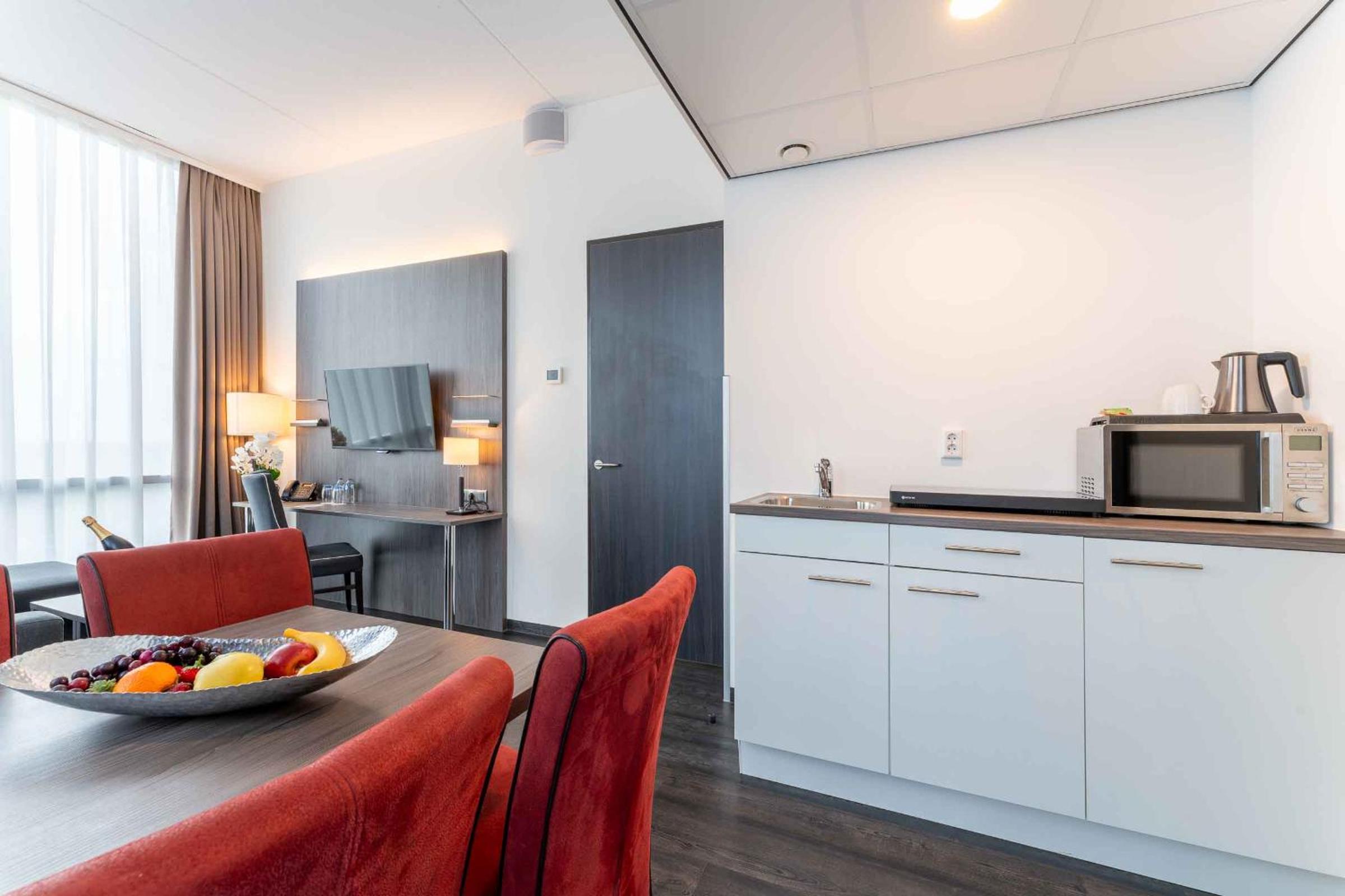 We kregen een upgrade van on onze kamer , de kamer had als uitbreiding een soort eigen huiskamertje met een kitchenette . Wat een relate manier van verblijf , buiten een goed bed ook nog een soort huiskamer waarin we rustig tv konden kijken en een beetje konden bijkomen van onze reis