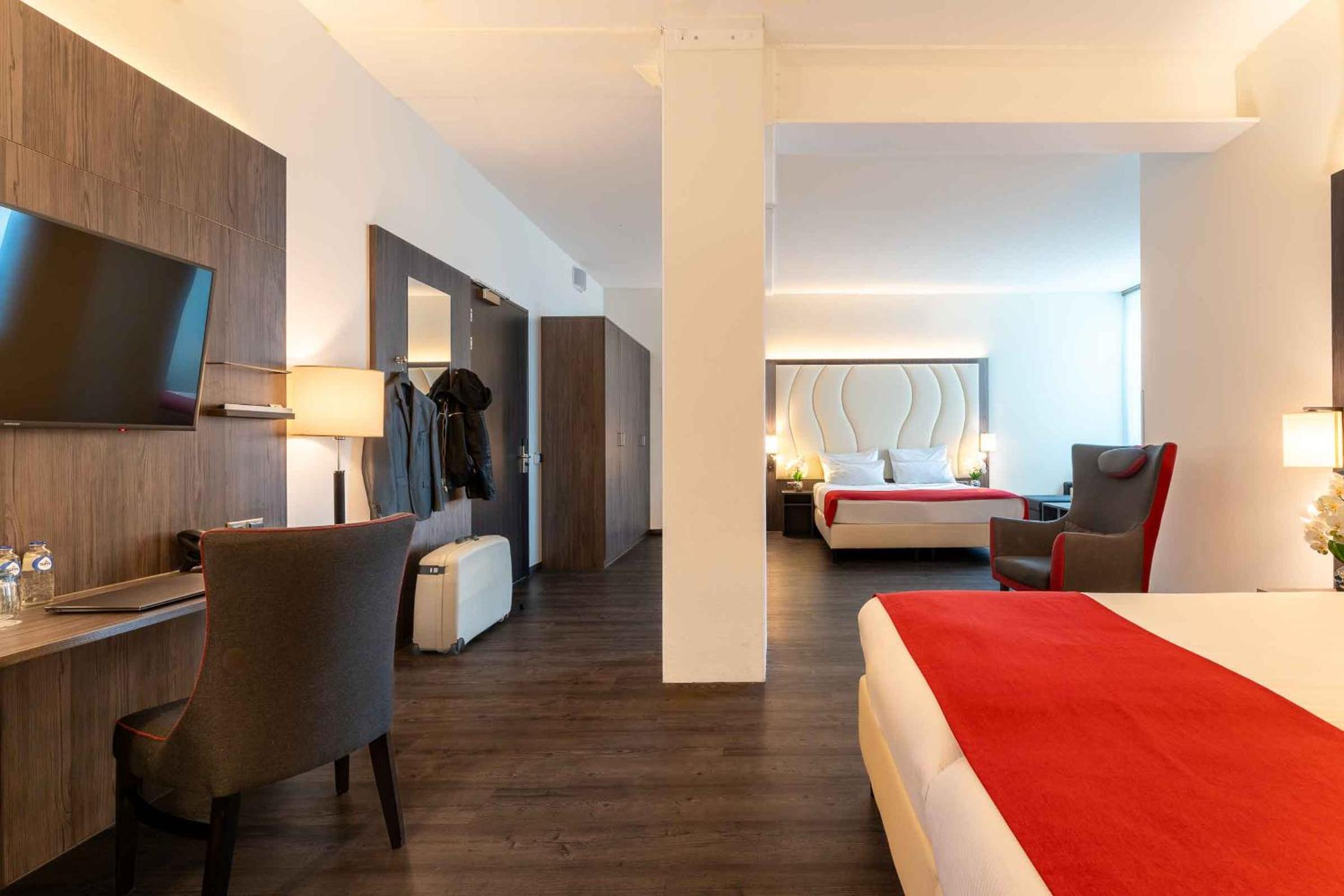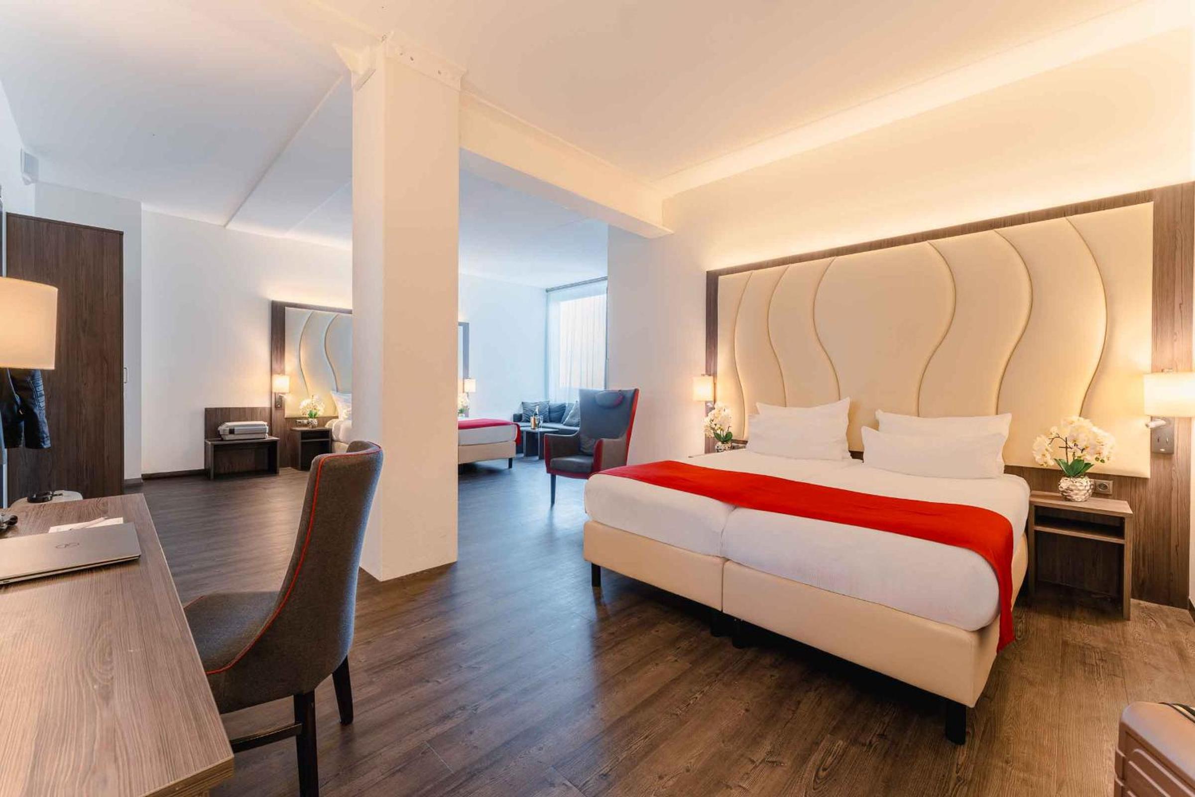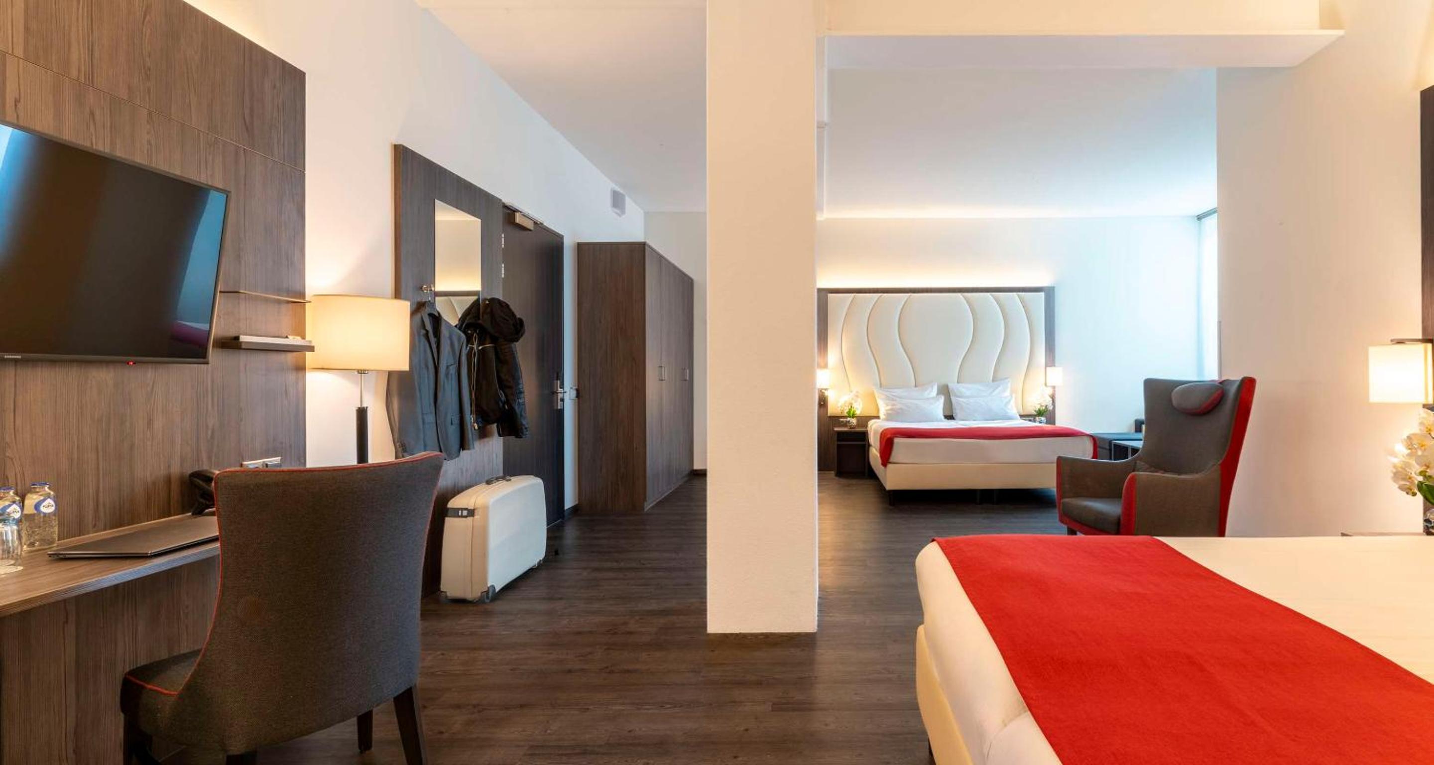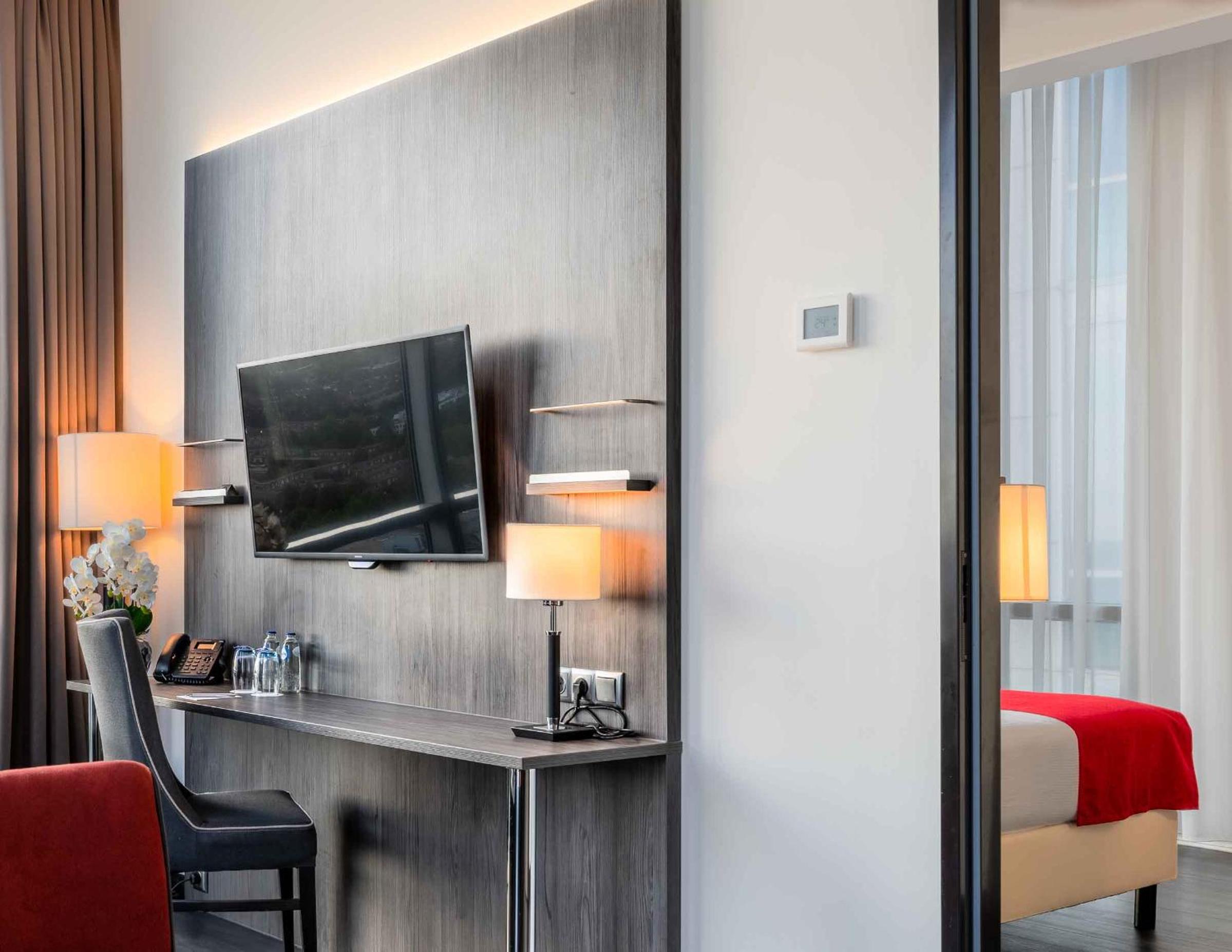 We kregen een upgrade van on onze kamer , de kamer had als uitbreiding een soort eigen huiskamertje met een kitchenette . Wat een relate manier van verblijf , buiten een goed bed ook nog een soort huiskamer waarin we rustig tv konden kijken en een beetje konden bijkomen van onze reis