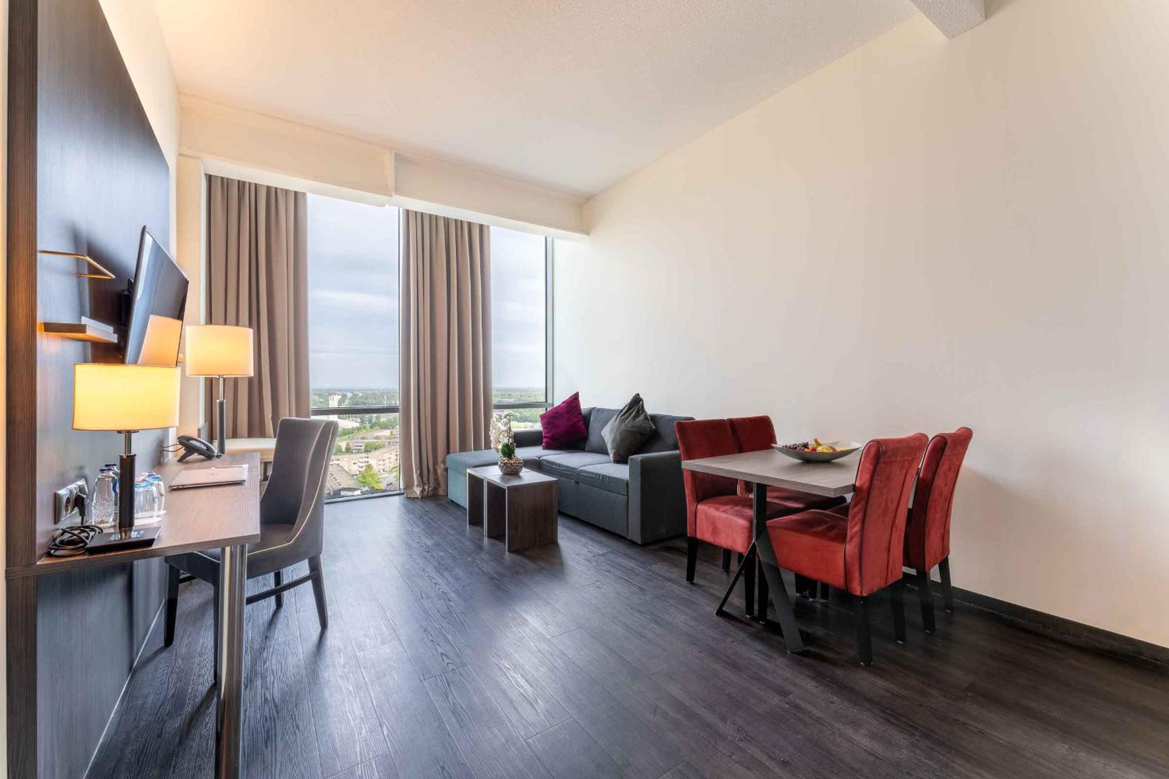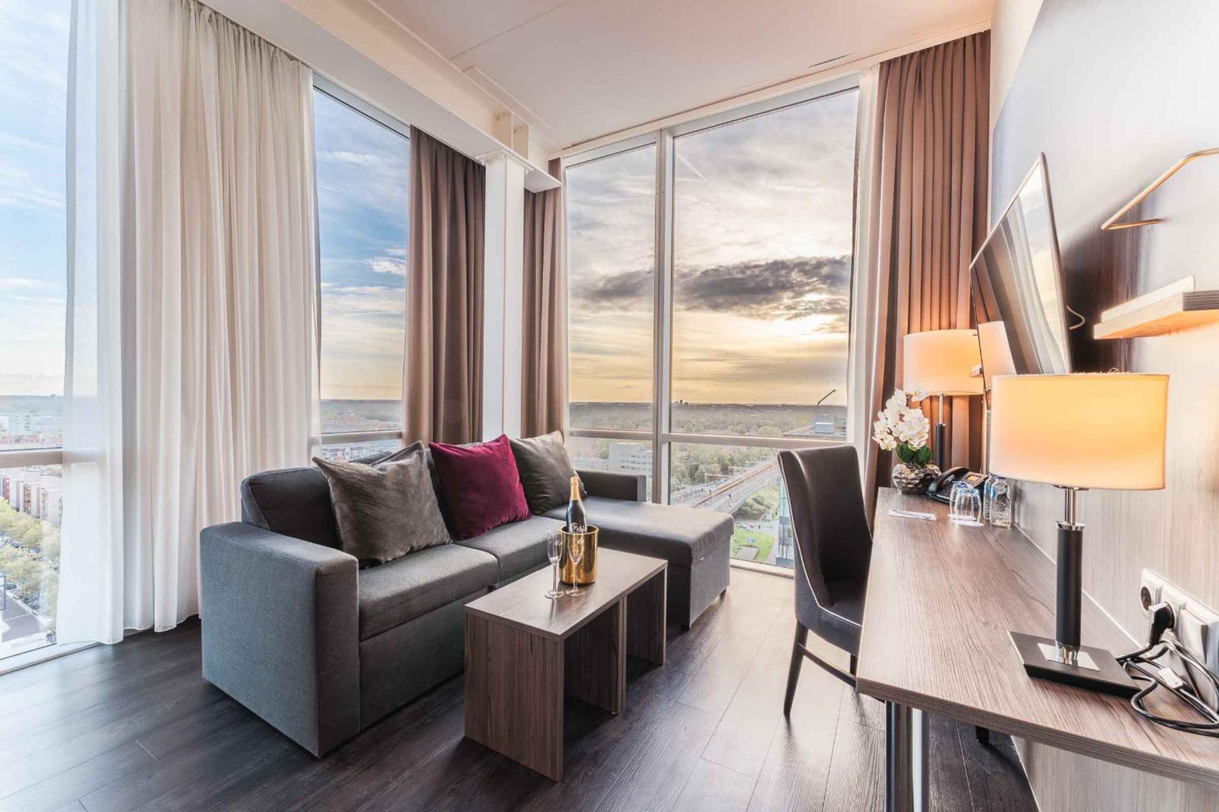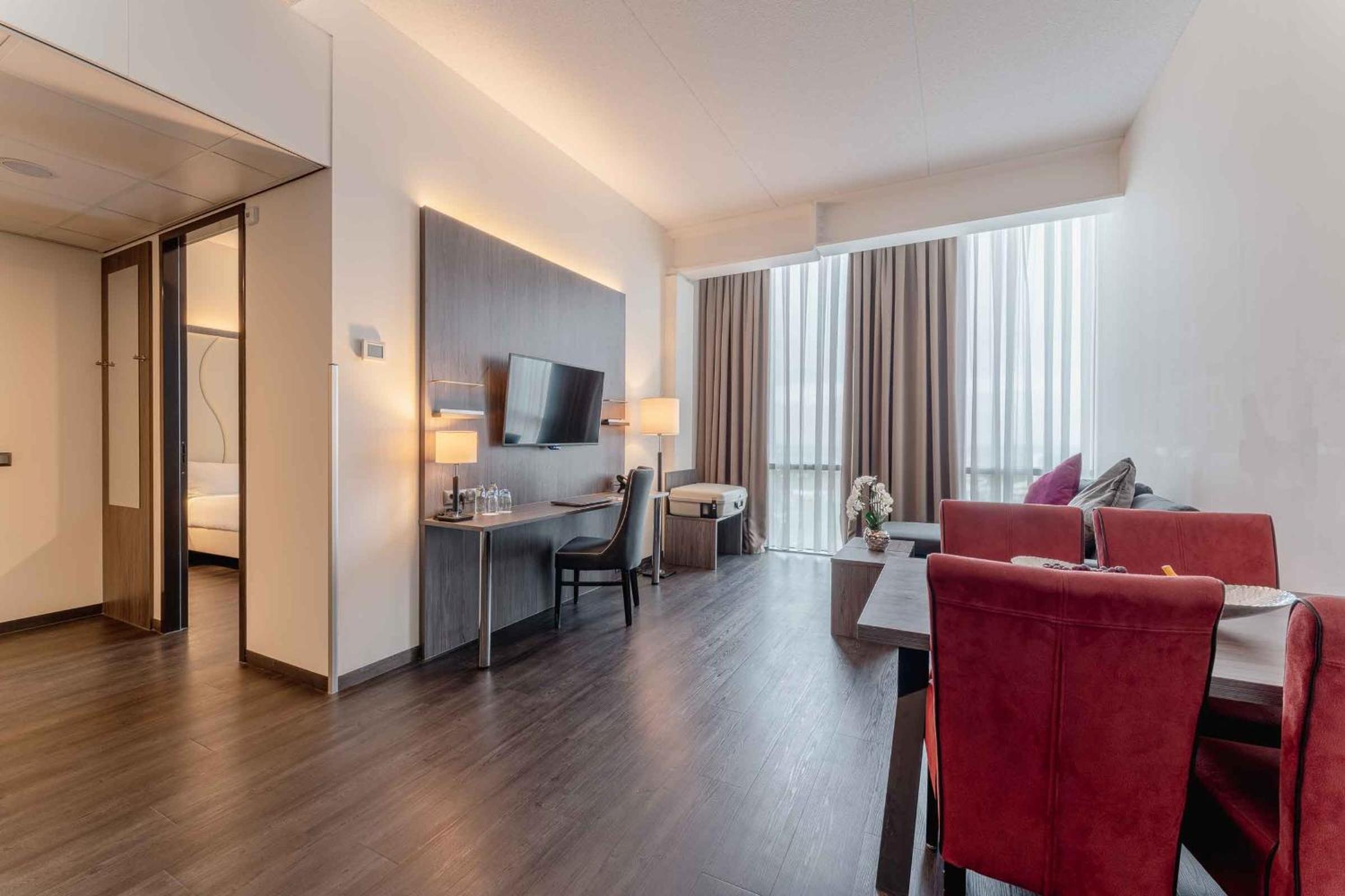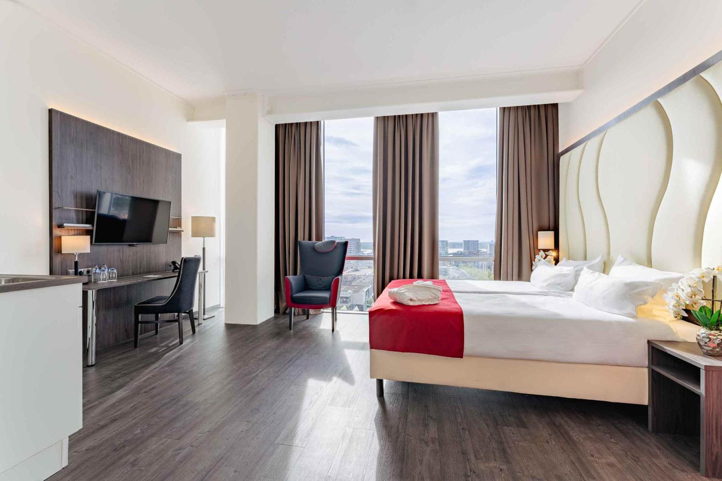 The 4-star hotel provides air-conditioned rooms with modern amenities including a flat-screen TV, coffee/tea facilities, and a work desk. The on-site breakfast restaurant serves a delicious continental breakfast, and guests can unwind at the hotel's bar or the nearby Loetje Almere restaurant.