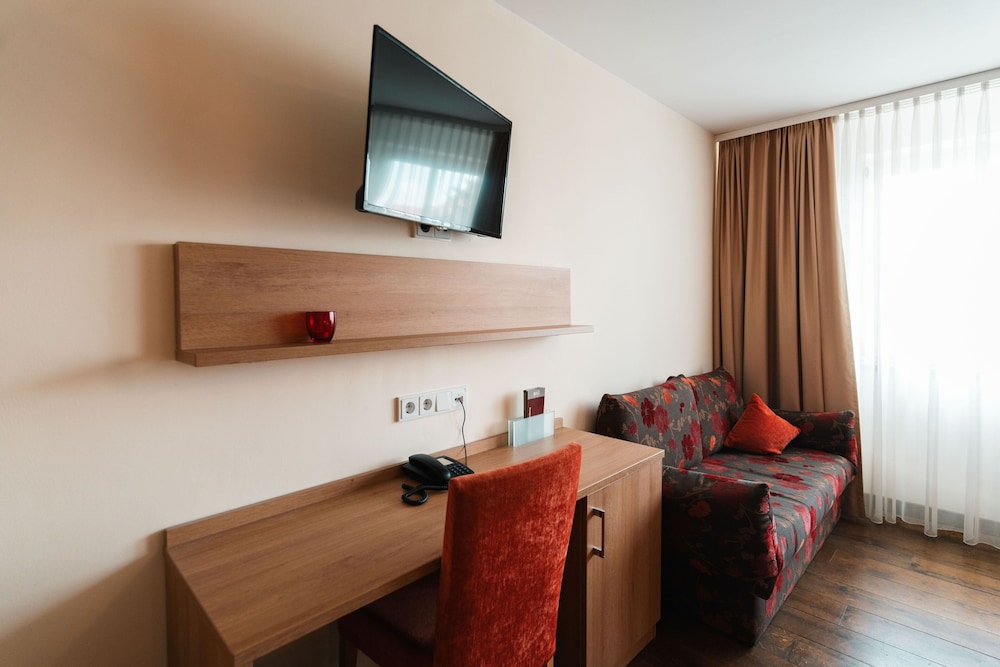 A beautiful, traditional and local hotel. Everything about it was enticing. Lots of parking, a very warm welcome with a free glass of locally produced wine. Lovely, comfortable atmosphere with superb Vegetarian food. A real gem of a place near Wurtzberg.