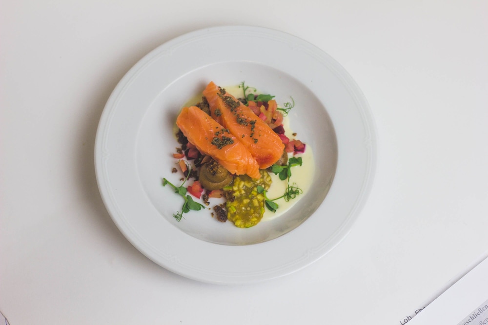 Savor authentic German cuisine at Schwarzer Adler restaurant and sip on your favorite drinks at the bar/lounge.