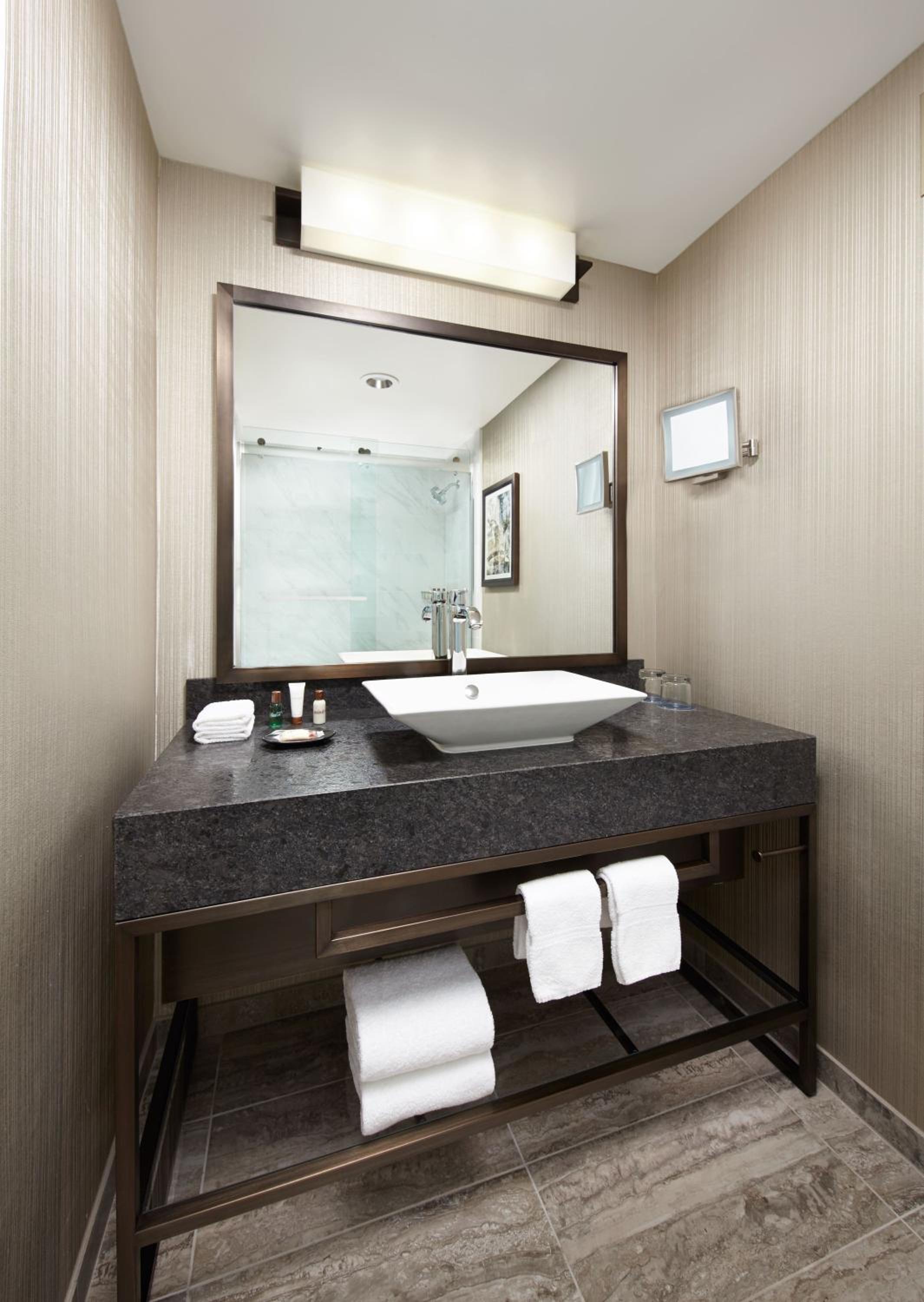 Guest rooms at Sheraton Gateway Los Angeles Hotel feature modern décor and essential amenities like a 50-inch LCD TV, work desk, and coffee machine. Indulge in a culinary experience at Costero California Bar and Bistro for lunch and dinner, or savor a breakfast buffet at Brasserie.