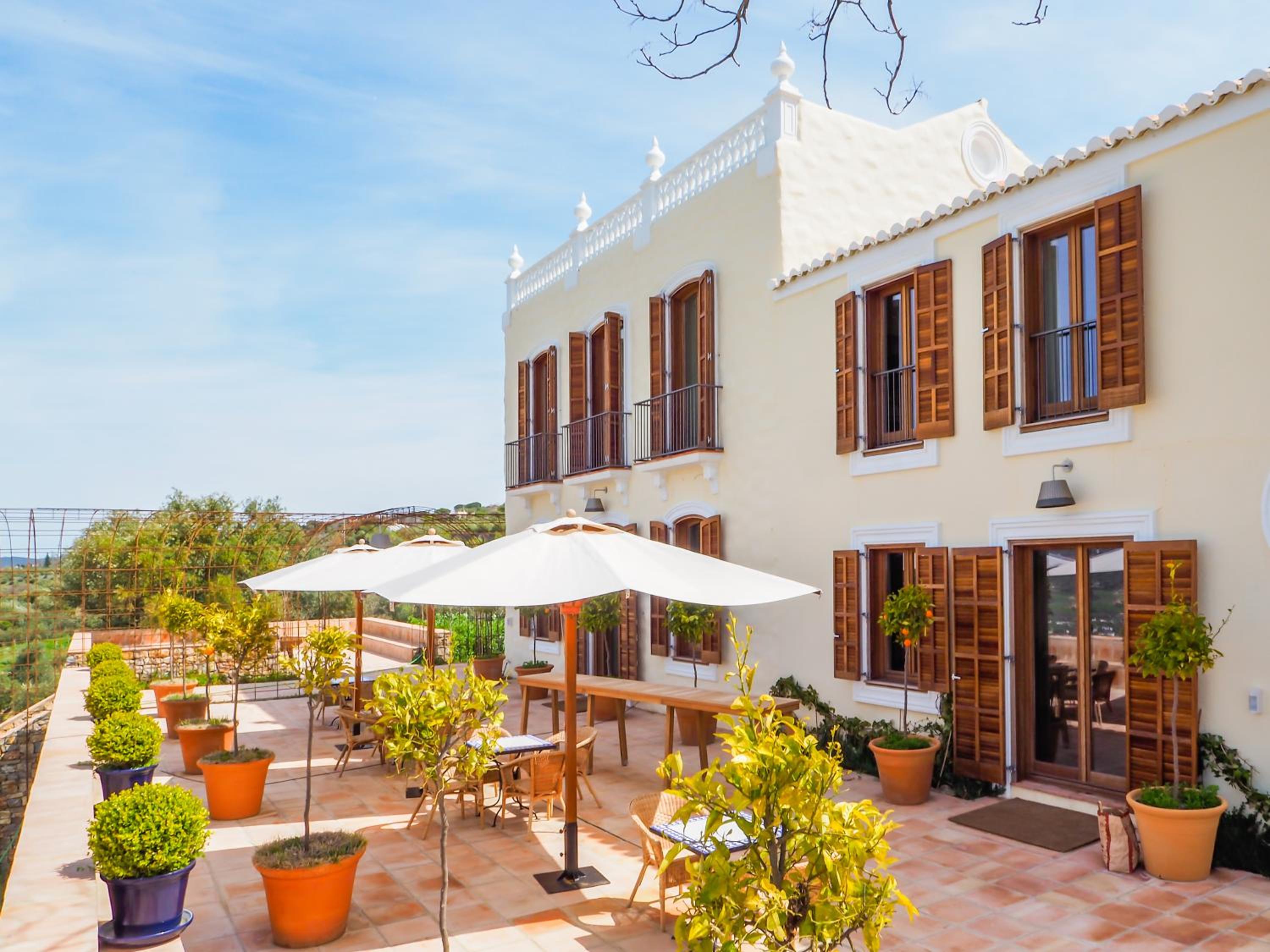 Serene Outdoor Setting: Enjoy a seasonal outdoor swimming pool, lush gardens, and a shared terrace at Cortijo LA Organic.