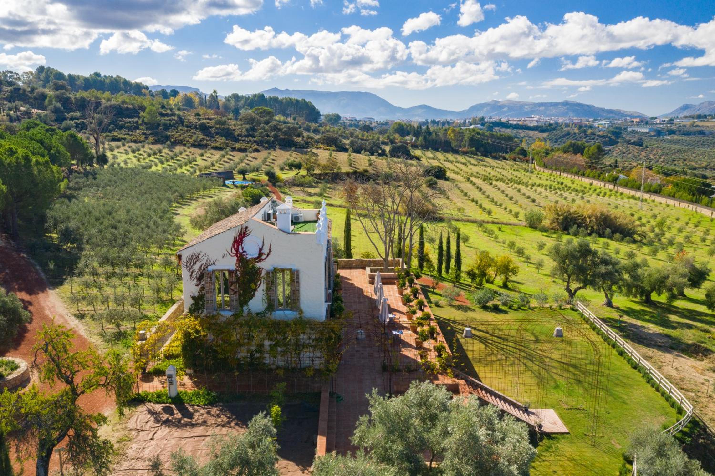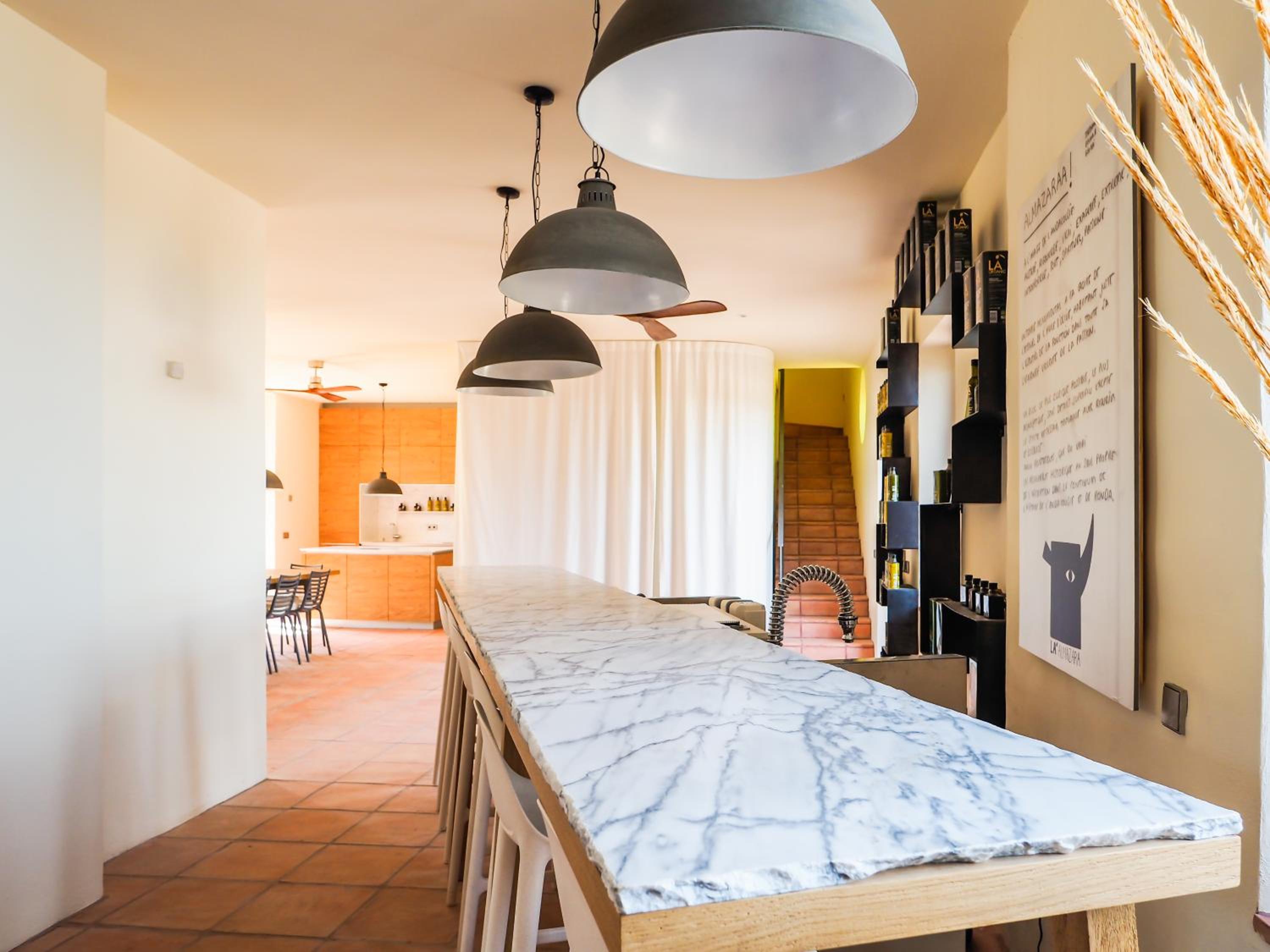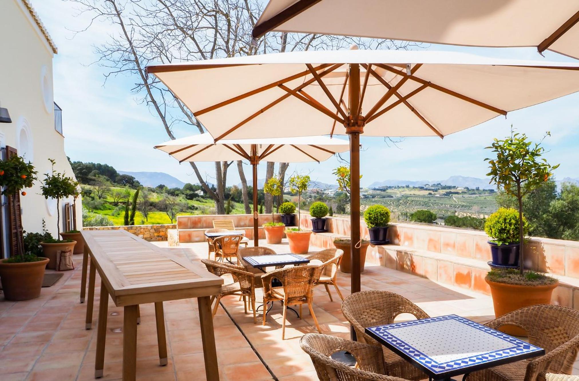 The hotel, designed by the renowned French artist Philippe Starck, offers stunning interiors and picturesque surroundings, with breathtaking views over the valley and olive groves. Its location just outside of Ronda is ideal for exploring the city while still enjoying peace and quiet within a short distance. The beautiful farm and impressive olive oil museum add to the charm, though the lack of on-site staff requires guests to manage independently. The presence of wasps around the terrace, without alternatives or protective screens, was inconvenient. Additionally, the 20-euro breakfast was underwhelming, offering only basic items. Despite these issues, the hotel features excellent showers, comfortable facilities, and the olive oil tour is highly recommended, showcasing exceptional quality.