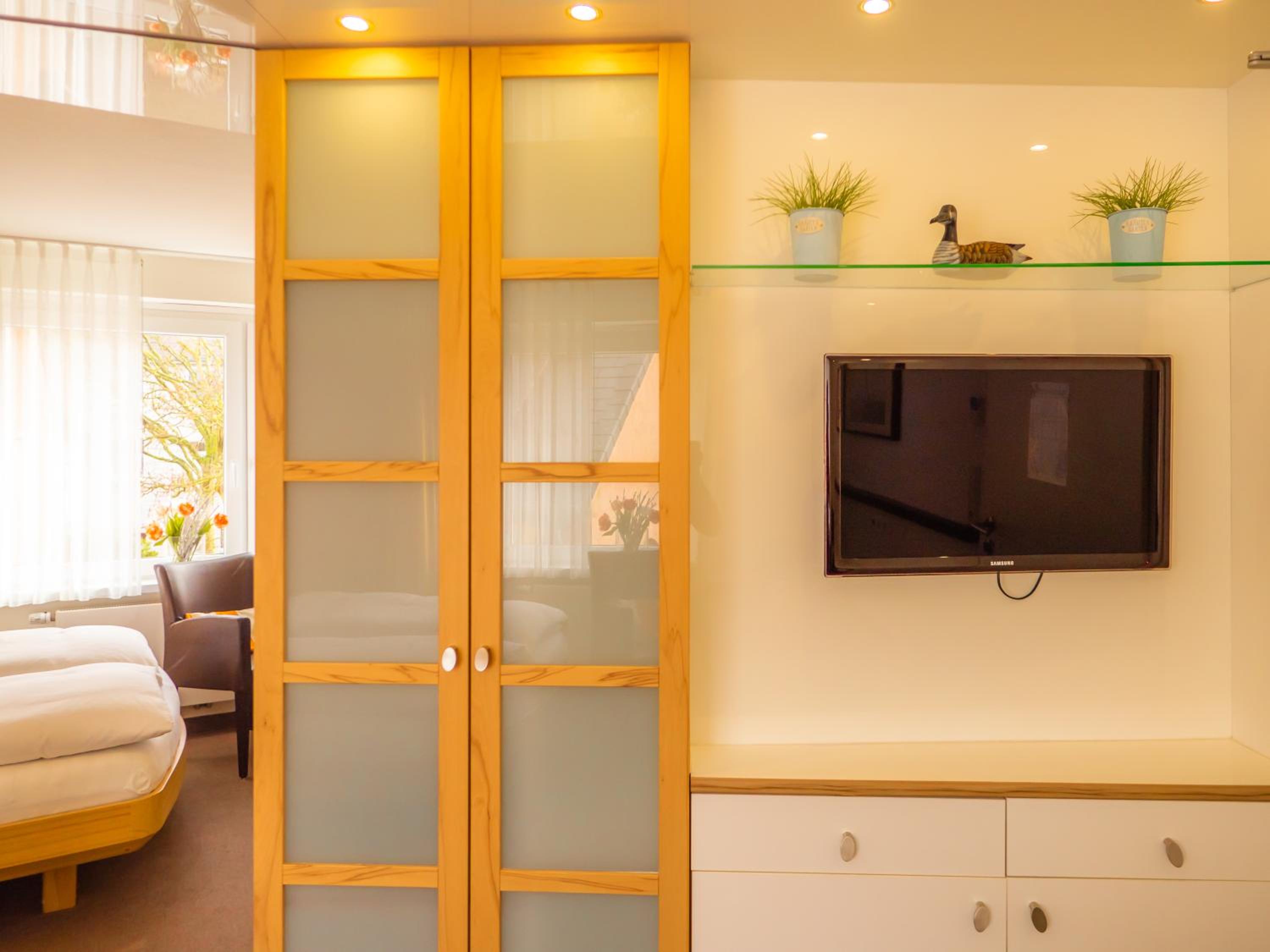 Das Zimmer ist klein, aber vermutlich für Helgoland typisch und somit war es für uns in Ordnung. Vielleicht einfach der Glastisch raus, der ist eigentlich nicht nötig und bietet dann die Option den Koffer dort hinzustellen oder den Stuhl weiter in die Ecke zu schieben