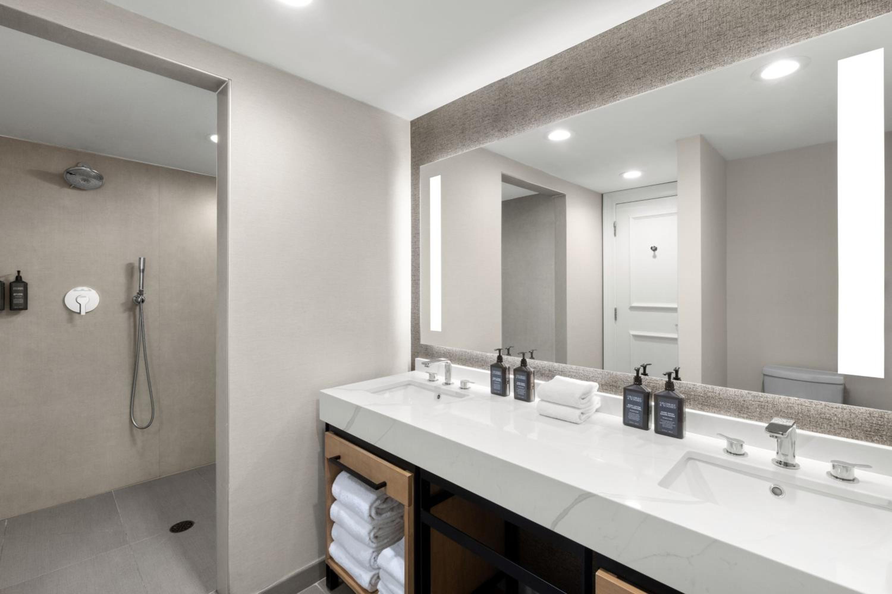 The bathroom was very small, could not fit two people comfortably. The elevators were EXTREMELY slow, to the point I opted to walk up eleven flights of steps instead of waiting any more. The elevators were a major issue during our stay.