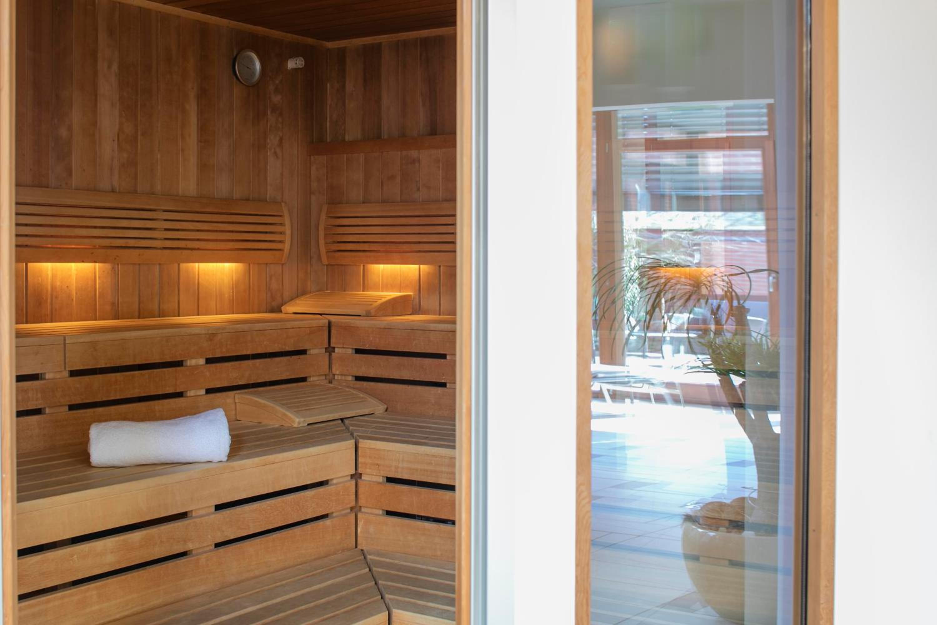 Unwind and rejuvenate at the Mediterranean-style spa, included in your room rate. Pamper yourself with a sauna session, bask in the solarium, or lounge on the terrace. Your well-being is our priority.