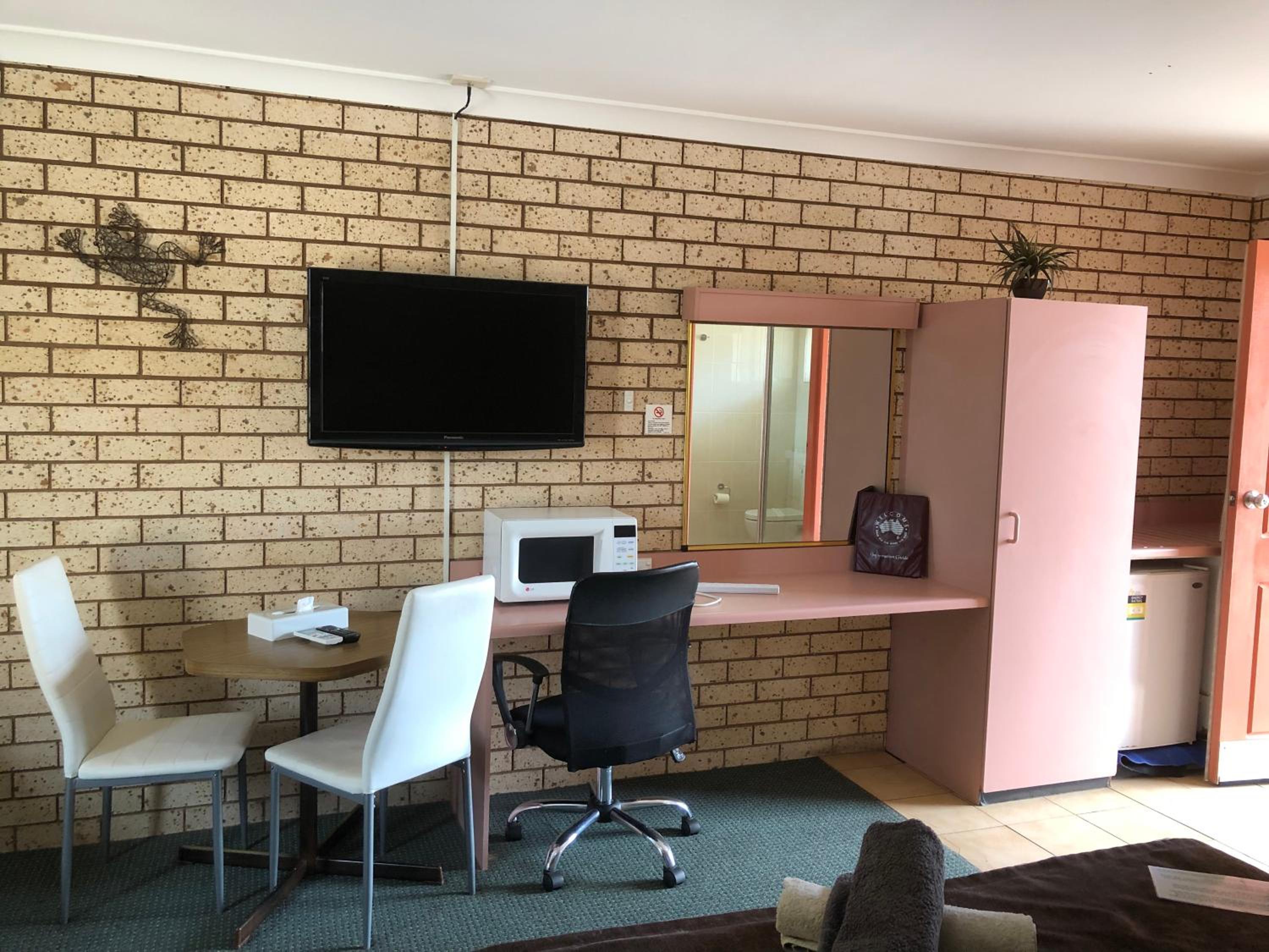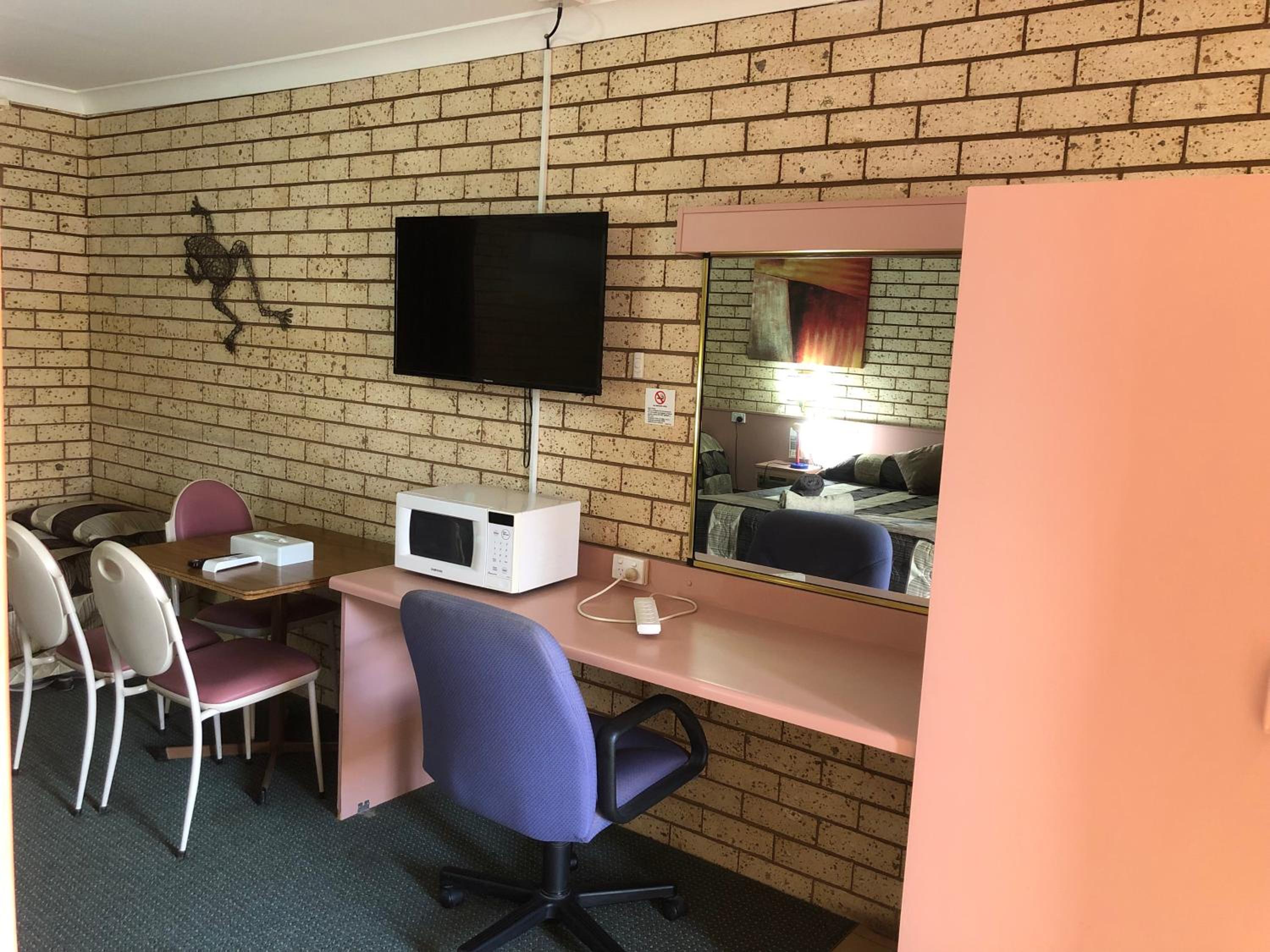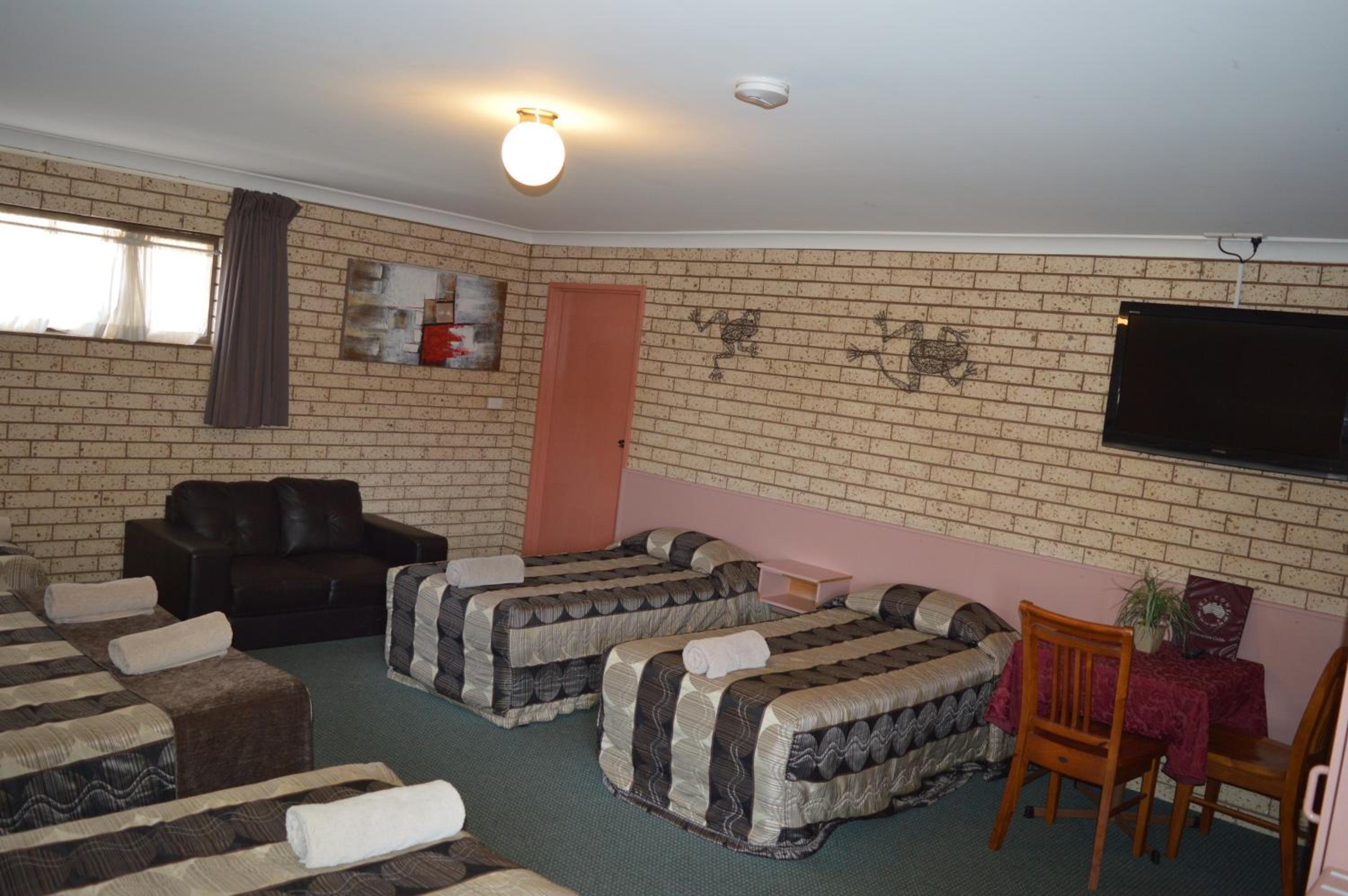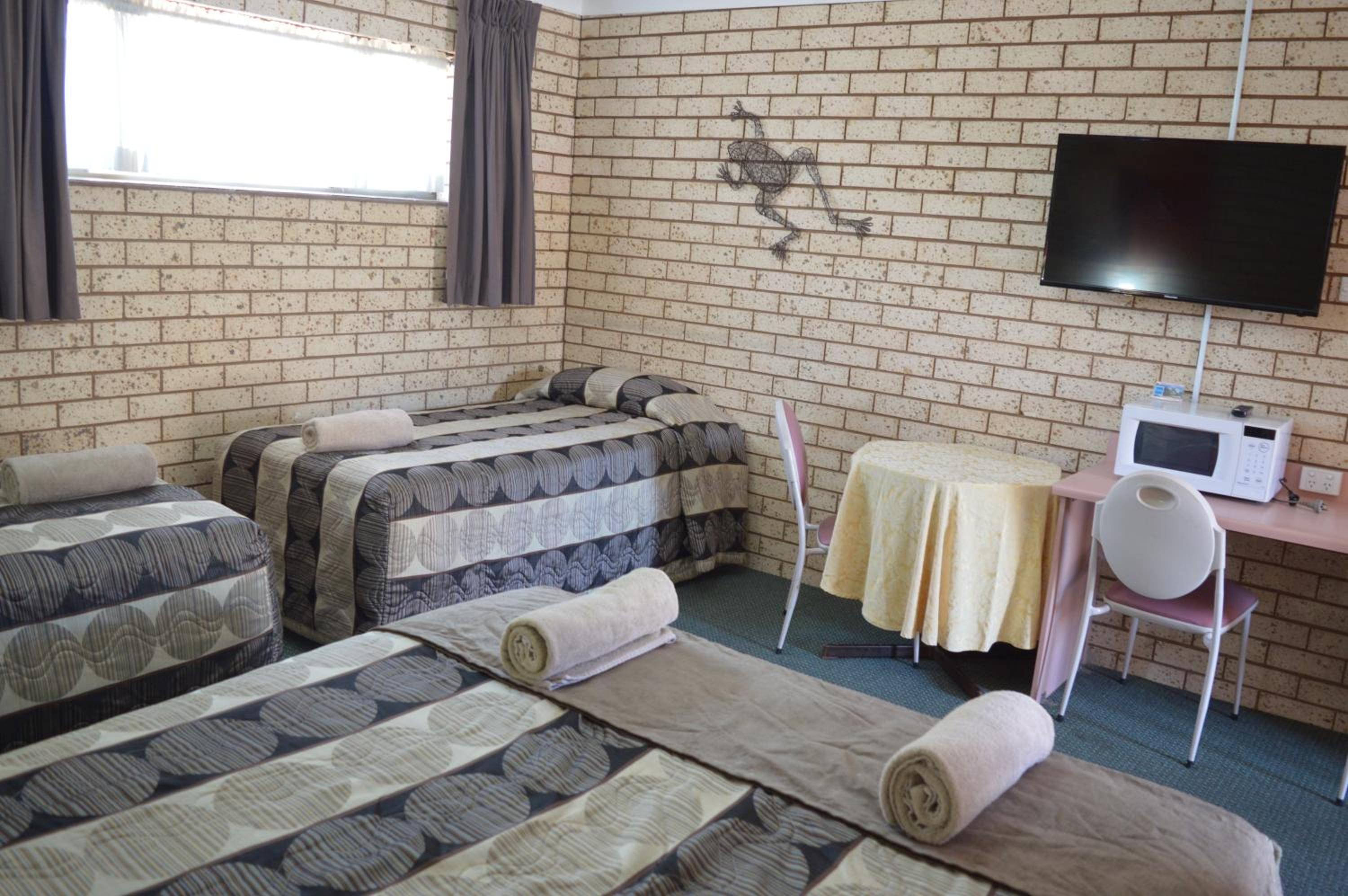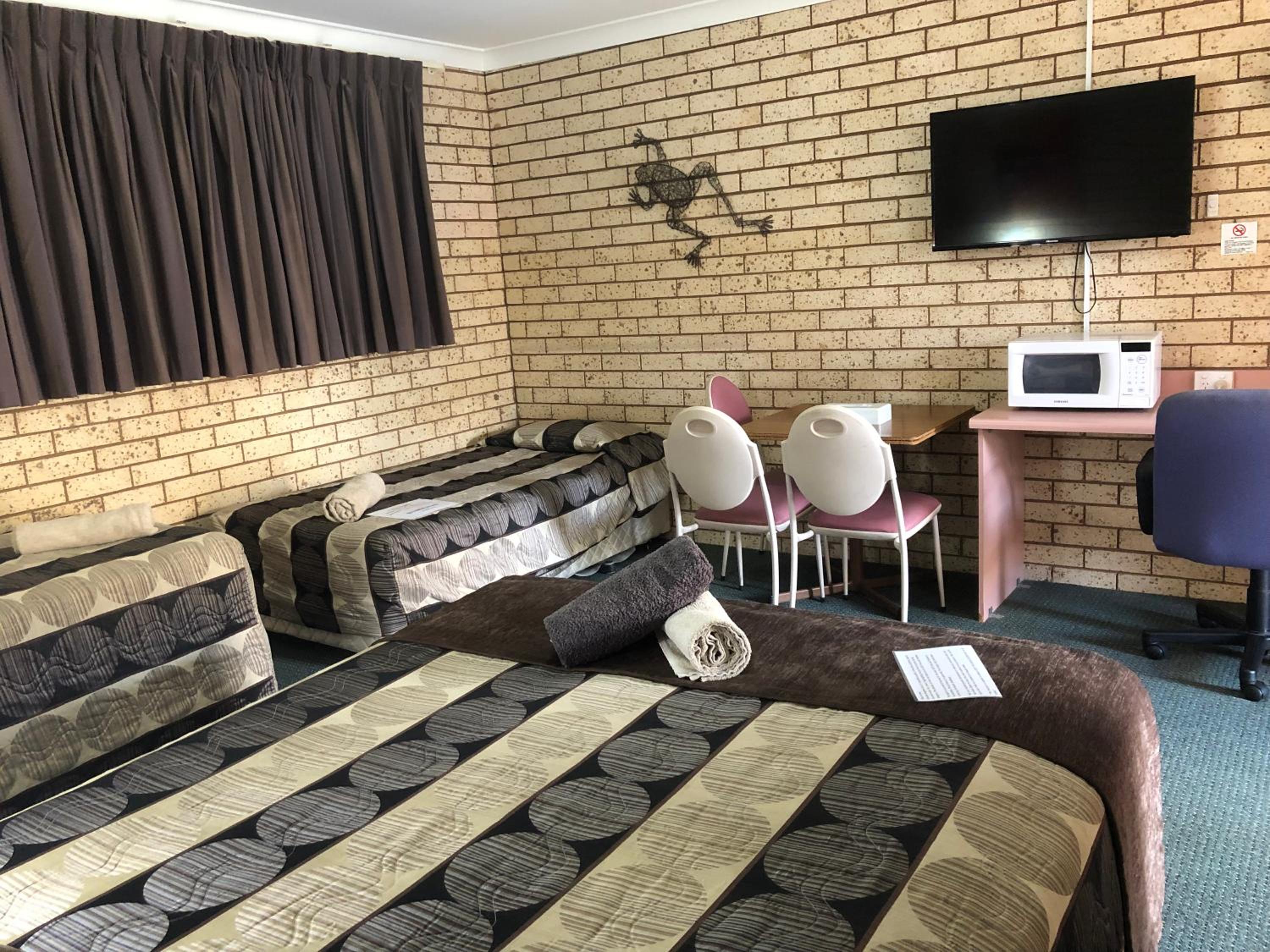 Friendly hosts Mick and Tracey were so lovely . Gave us recommendation for dinner at the pub behind the motel. Room very spacious for the four of us, comfortable bed and amazing hot shower. Pool was nice and clean and so refreshing after a long day in the car . Definitely recommend staying here