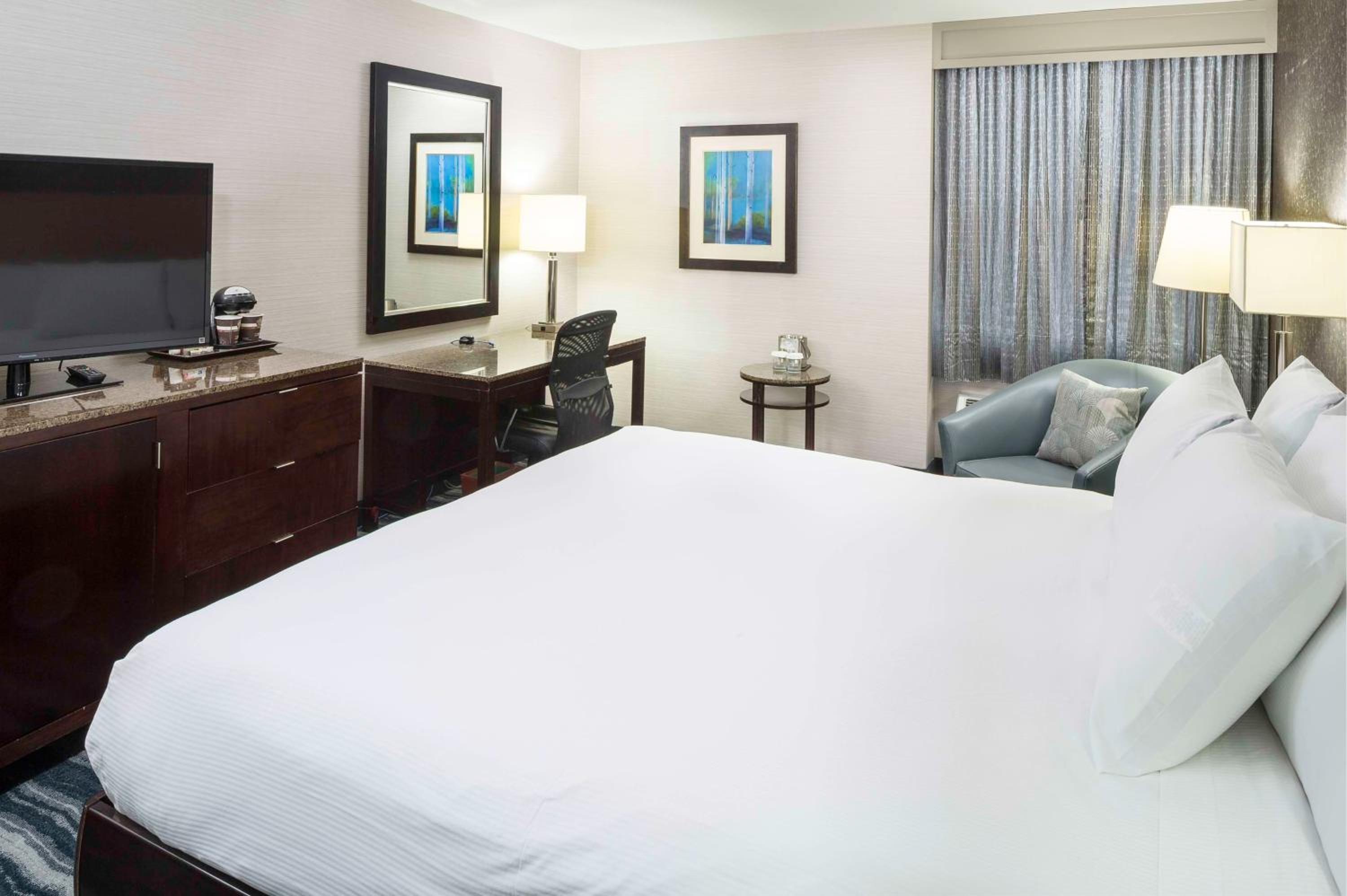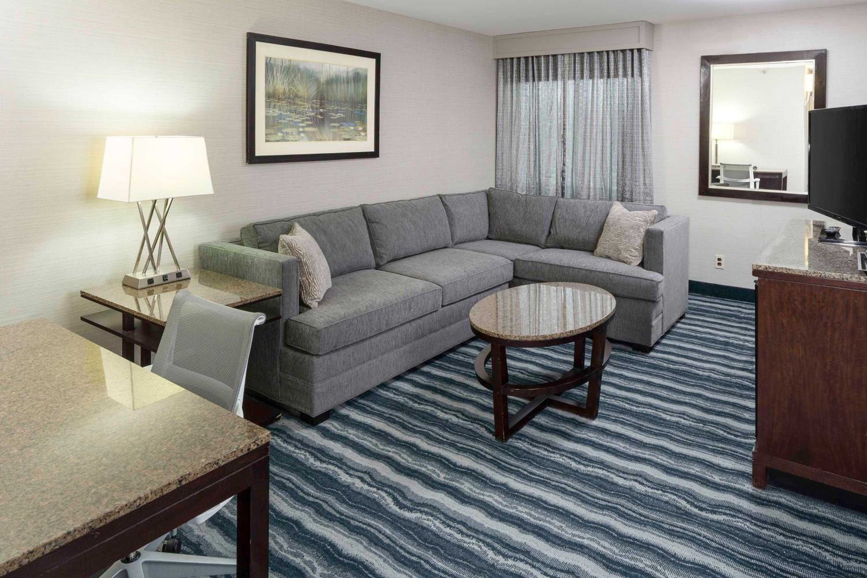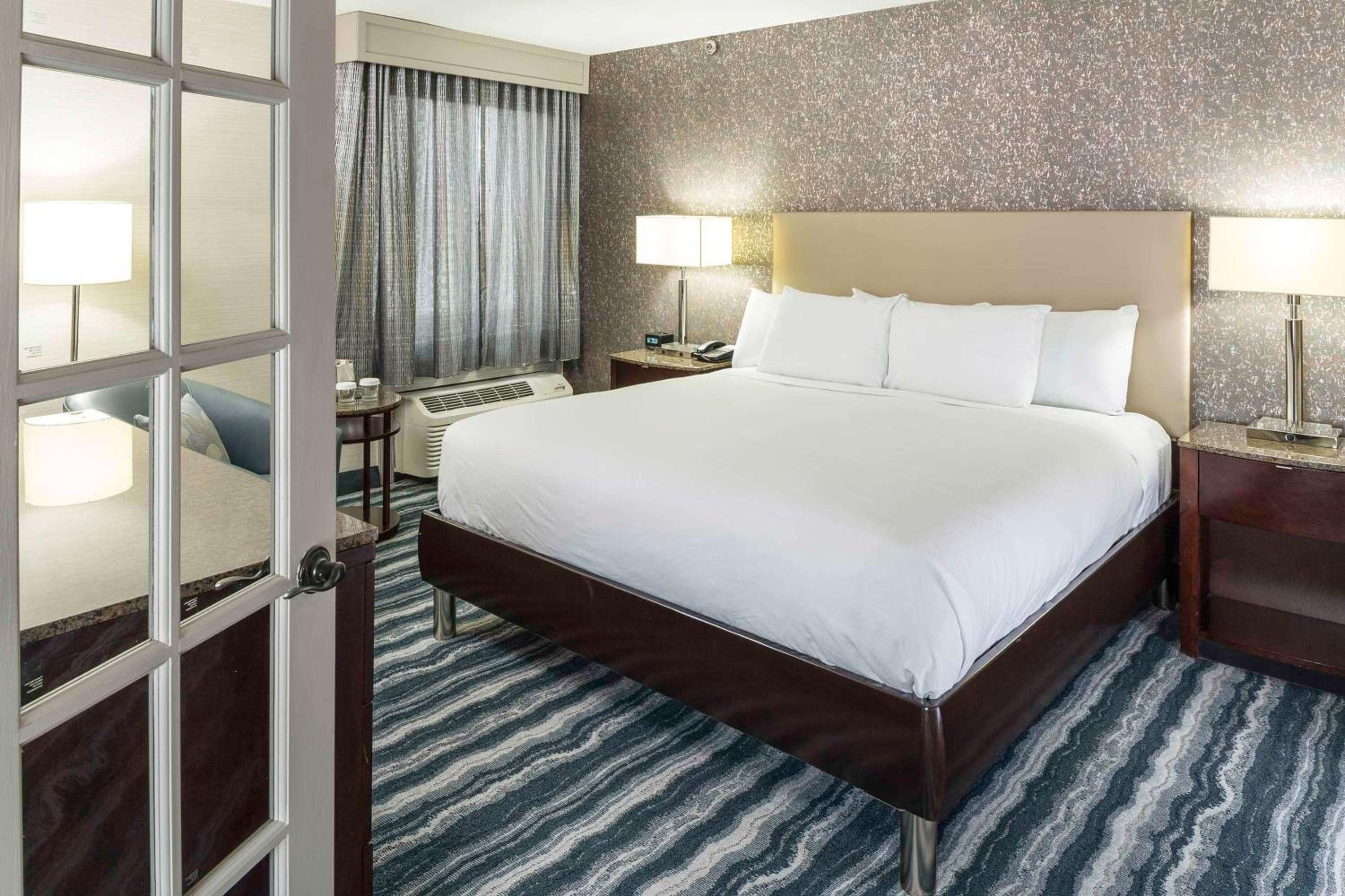 Experience comfort and style at DoubleTree by Hilton Hotel Wilmington with modern rooms featuring Sweet Dreams® beds, flat-screen TVs, and work desks. Relax in the private bathrooms with Aroma Actives bath amenities and stay connected with clock-radios with MP3 connectivity.