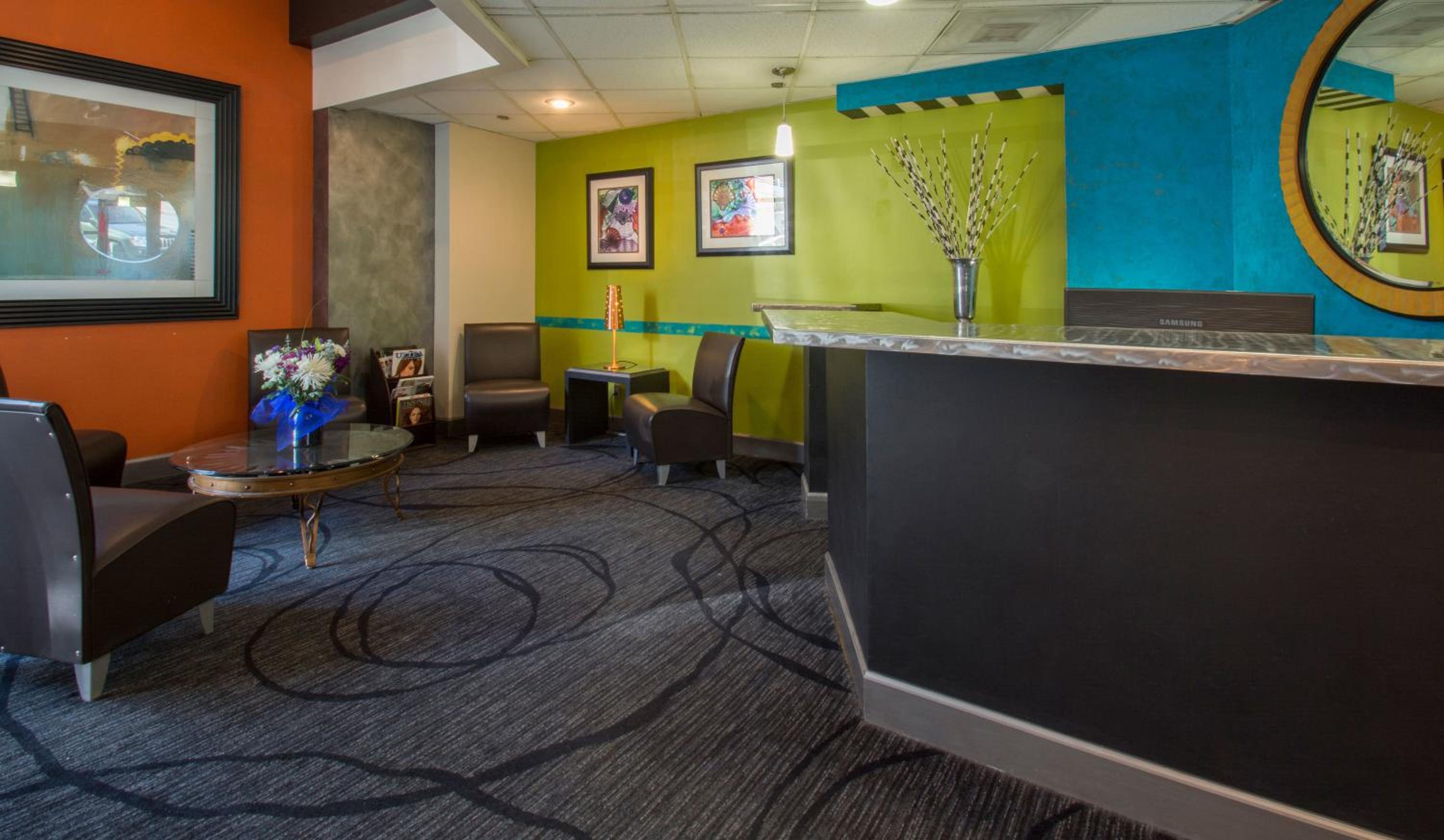 The hotel is modern and clean. Upon arrival you can see the colorful art and the see how bright and inviting. I love the fireplace. It gives you a sense of warmth and cozy while away. I would definitely stay again.