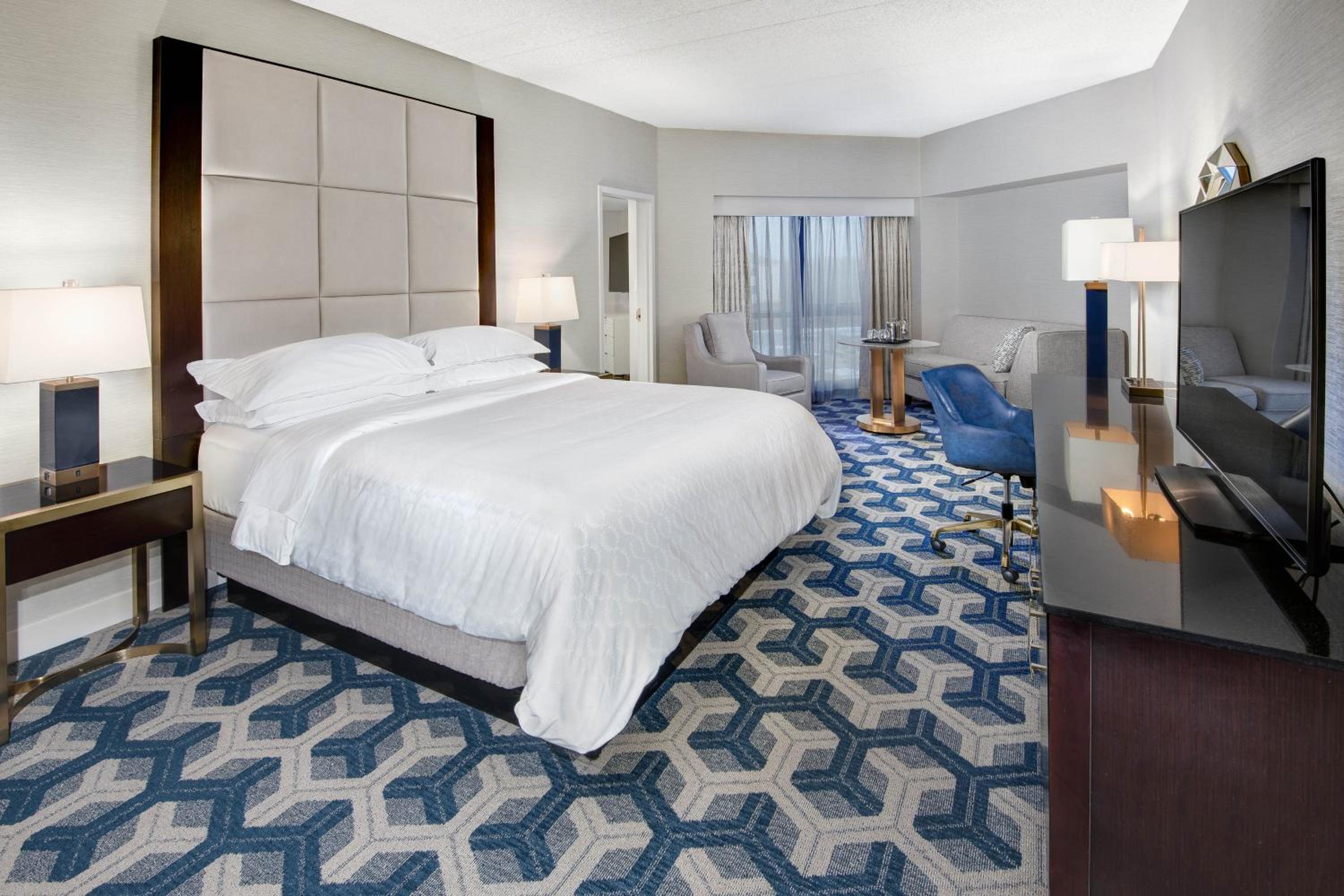 Experience comfort and style at Sheraton Eatontown Hotel with air-conditioned rooms featuring flat-screen TVs and modern amenities like free Wi-Fi.