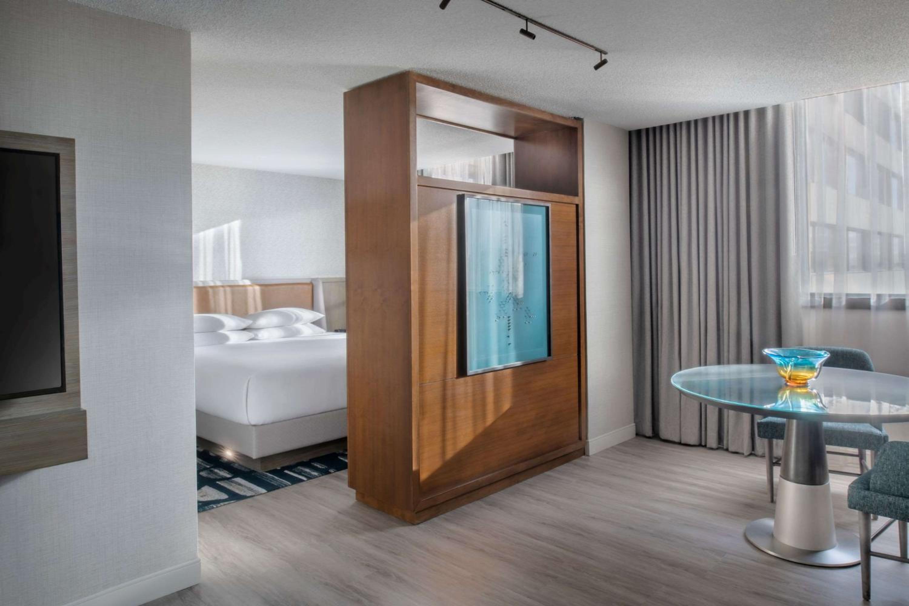 Enjoy a 65-inch flat-screen TV, work area, and iPod docking station in every room. Indulge in classic American dishes at O’H American Grill and unwind with cocktails at Red Bar & Lounge.