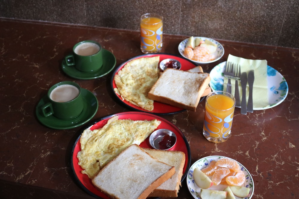 Morgenmaden tager minimum 1/2 time fra bestilling og består af en omelet og en skive fedtet brød.