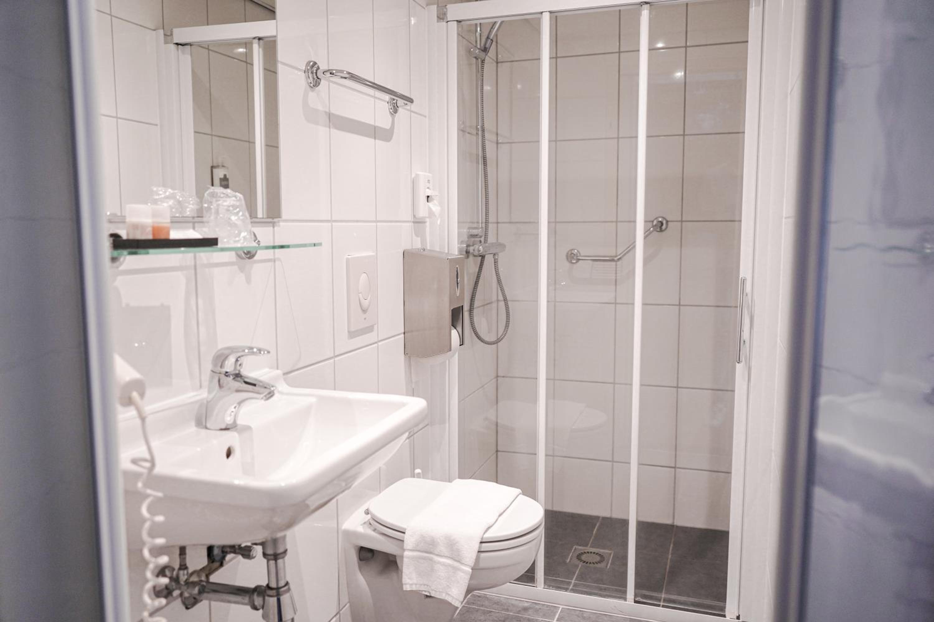De badkamer had beter gekund, maar was wel van alle benodigdheden voorzien.