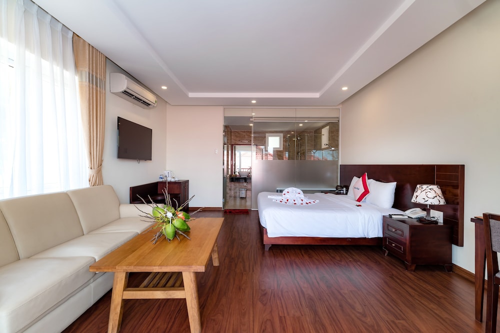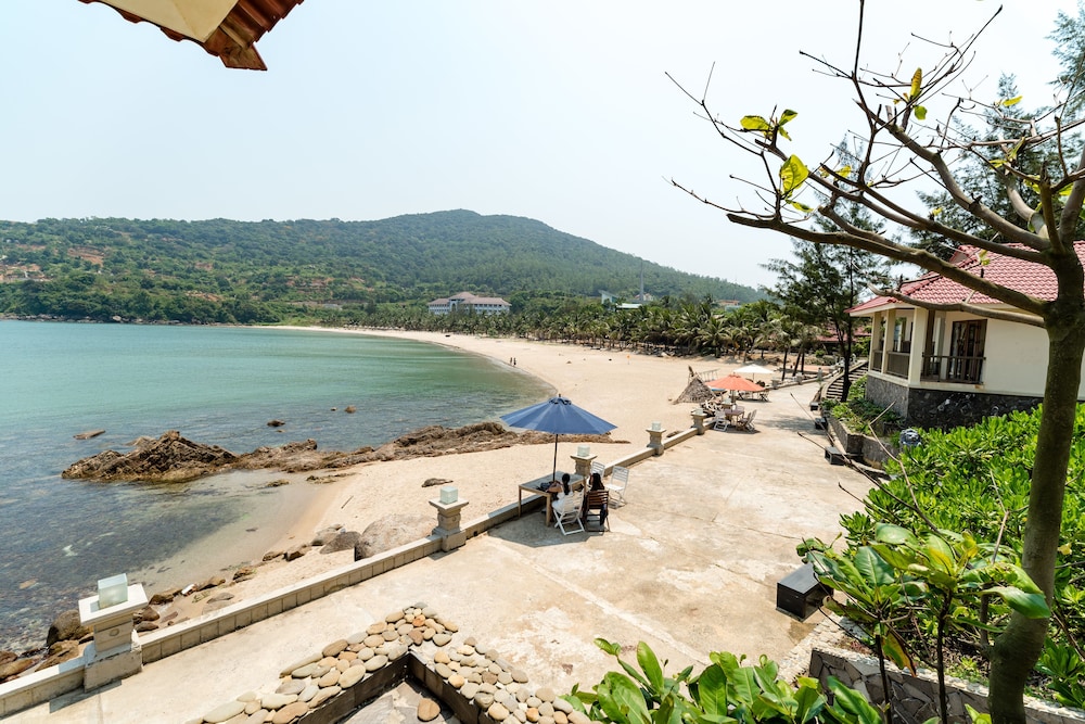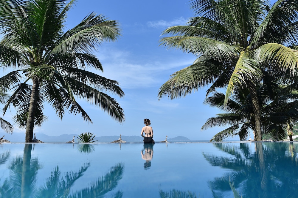 So this resort is like 10 kilometers away from the city. It’s surrounded by a military base so the location is not ideal and you need the front desk to call a taxi for you because grab does not work. The resort feels like a very nice resort that was halfway built. The pool is great and the water is beautiful in the area along with the private beach but that’s about it. Very little English is spoke by the staff and getting breakfast is weird because you have to order it when you check in. Overall not our favorite place to stay in Da Nang