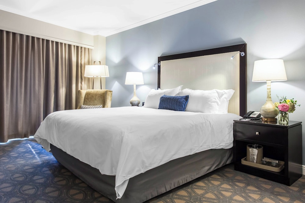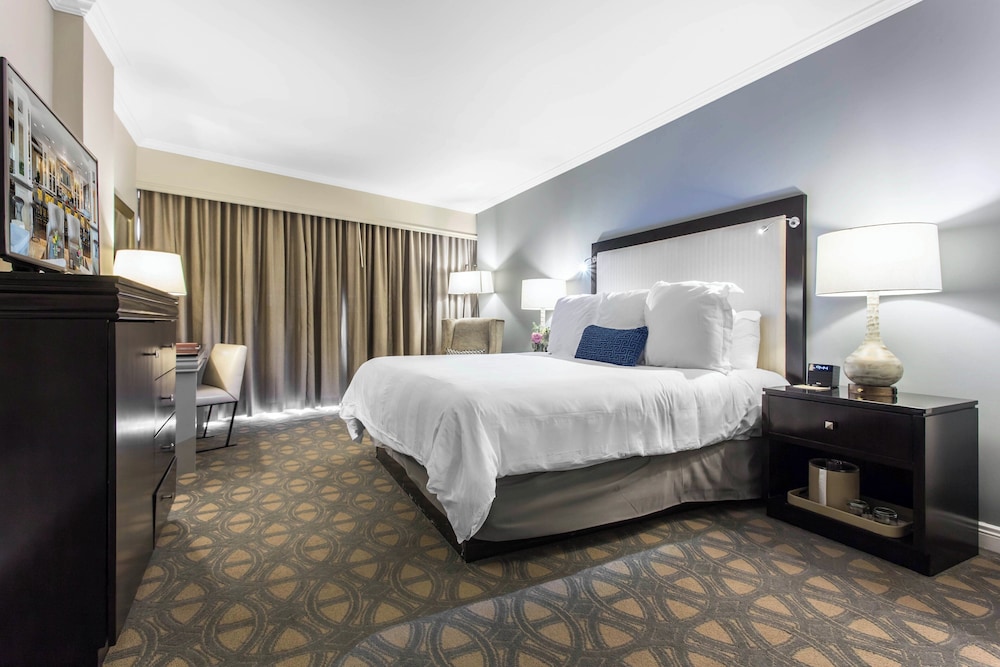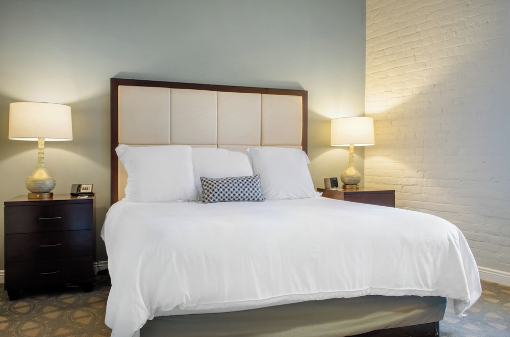 Relax in one of our elegantly designed 202 guestrooms featuring plush pillowtop beds with down comforters and premium bedding, ensuring a restful retreat after a day of exploration. Enjoy modern amenities including complimentary Wi-Fi and cable programming for your entertainment.