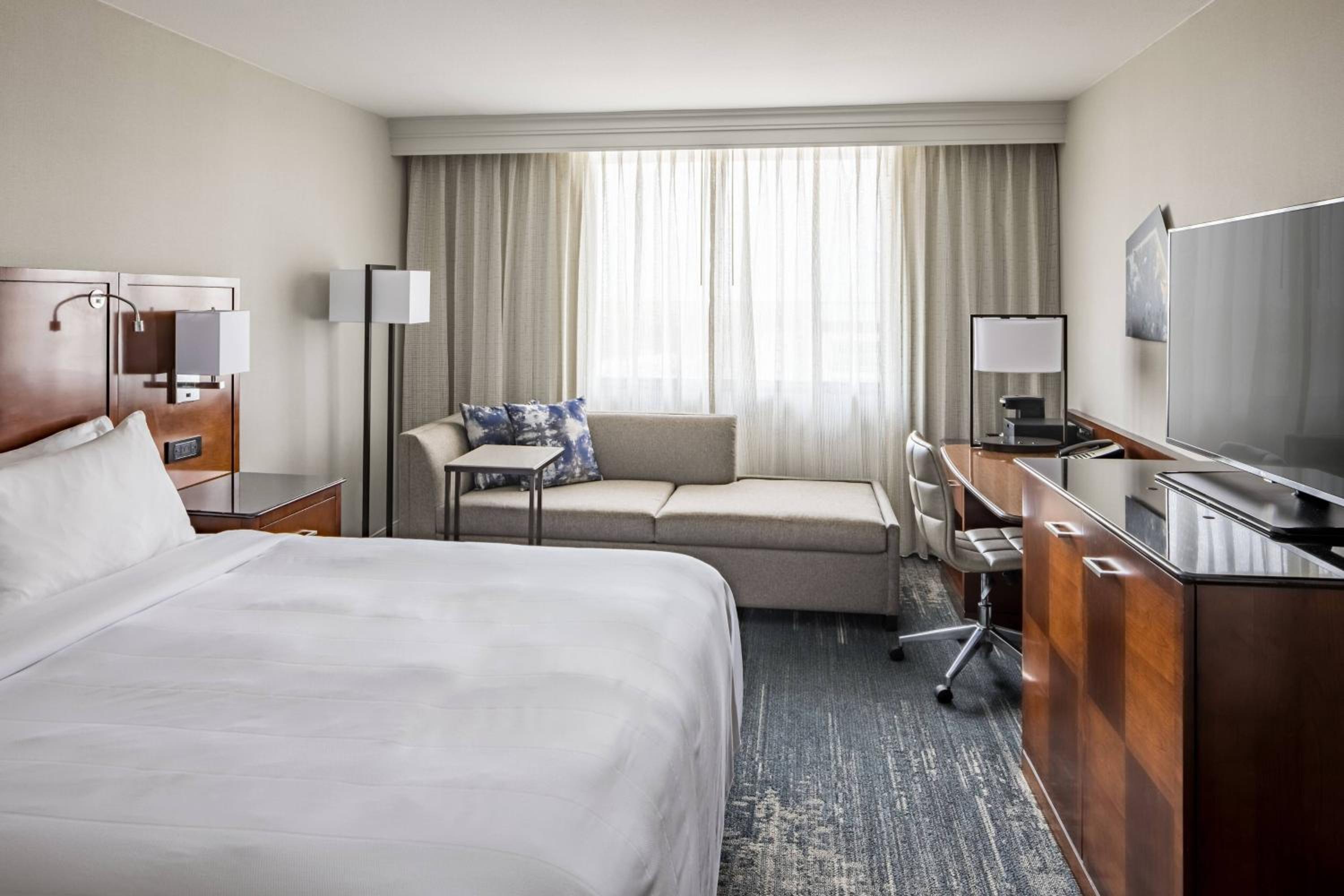 Located in downtown Richmond, the Marriott offers well-appointed guest rooms with stunning town views and free high-speed internet. Each room features a 27’’ TV with popular cable channels and ironing facilities for your convenience.