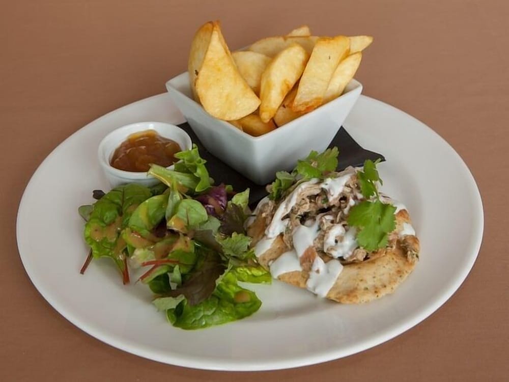 We chose to stay in the bar/restaurant and have an evening meal, lots of choice and we had mains and dessert which were generous portions and tasty. The whole stay was lovely and would return.