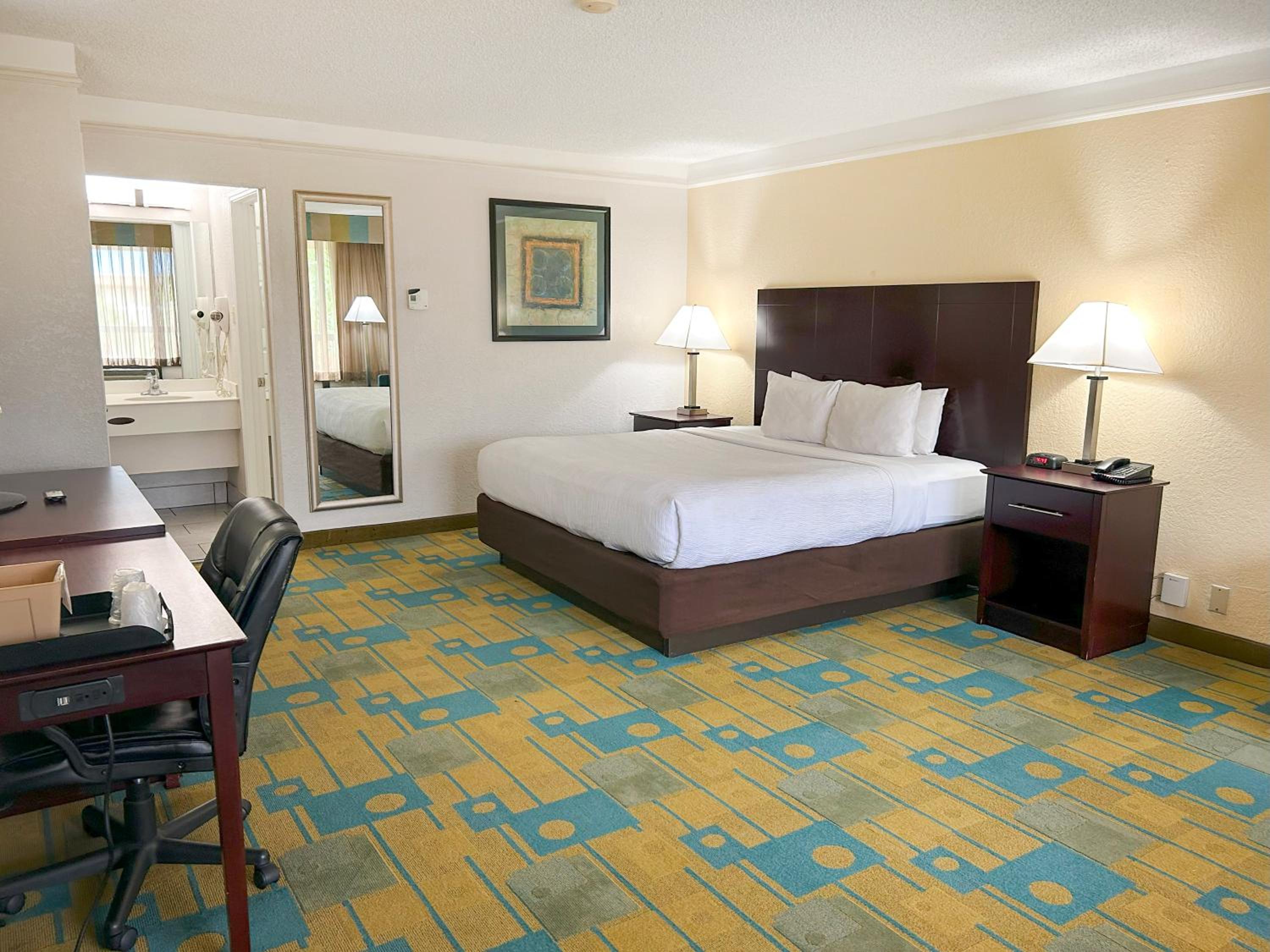 La proximité avec Universal Studios, parking gratuit, proche des restaurants, Walmart. Bon petit déjeuner sur place. Personnel accueillant.