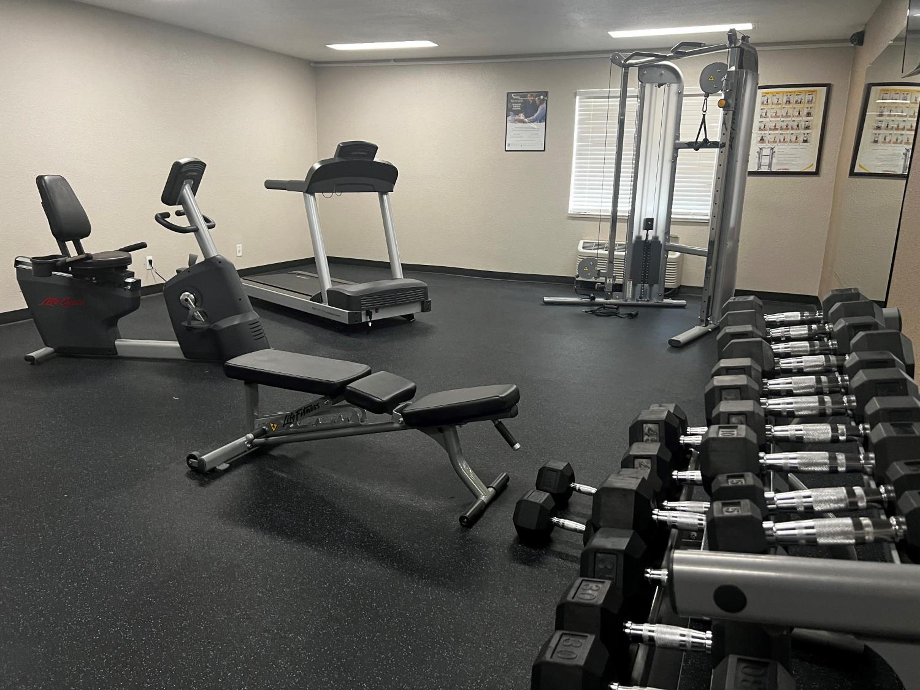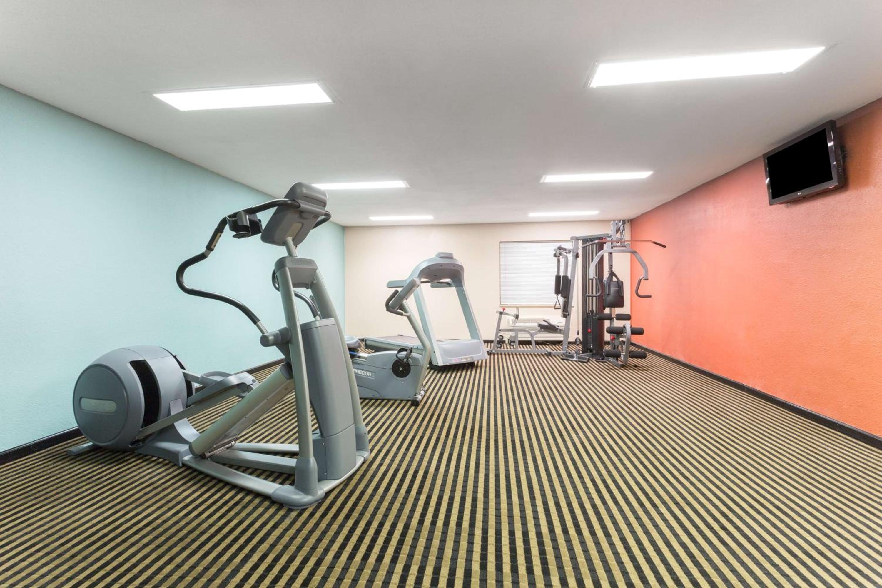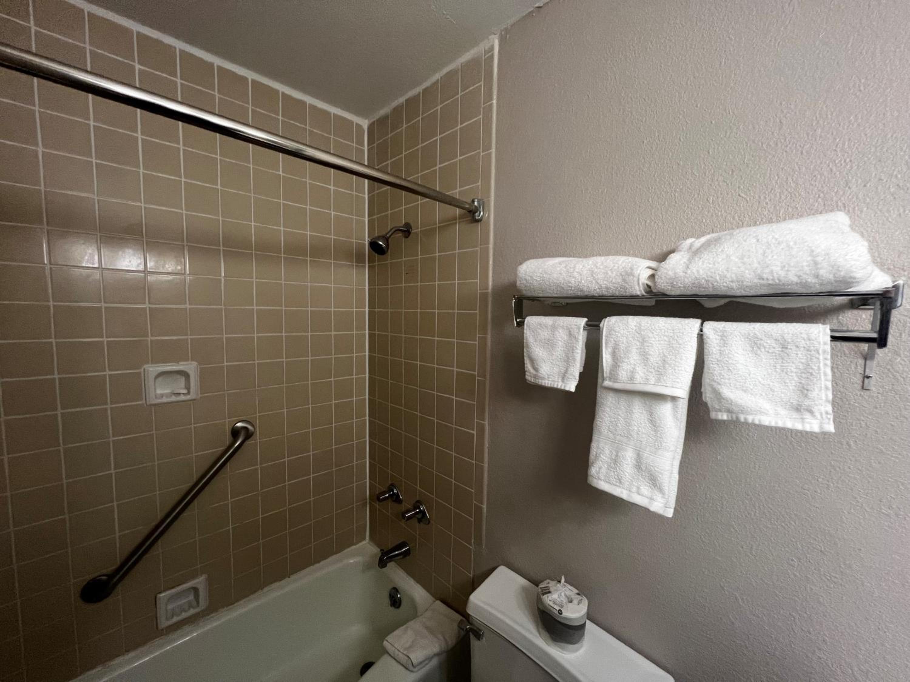 It was upstairs, room numbers were not visible from downstairs - had to walk upstairs to find the room. The un-pleasant check in lady just told us it was upstairs. No hand soap in the room, the fridge was very unlevel and almost fell out of the cabinet. It also had leftover food as well as melted ice cream in the freezer section. The commode was the size of a child's commode - very, very low and no safety hand rails. Was not informed where the ice machine was or if there even was one. The staff lady at check in was not pleasant.