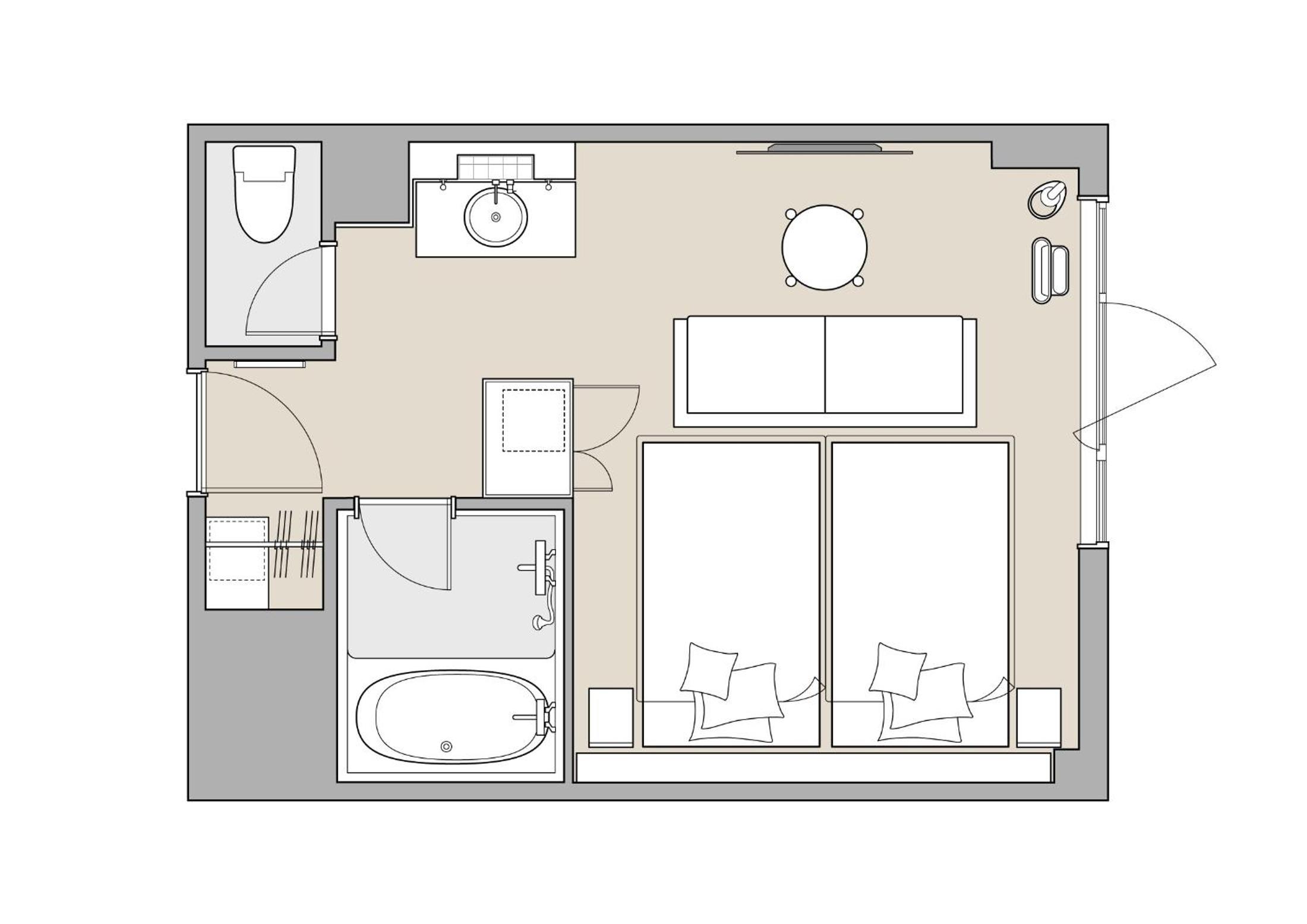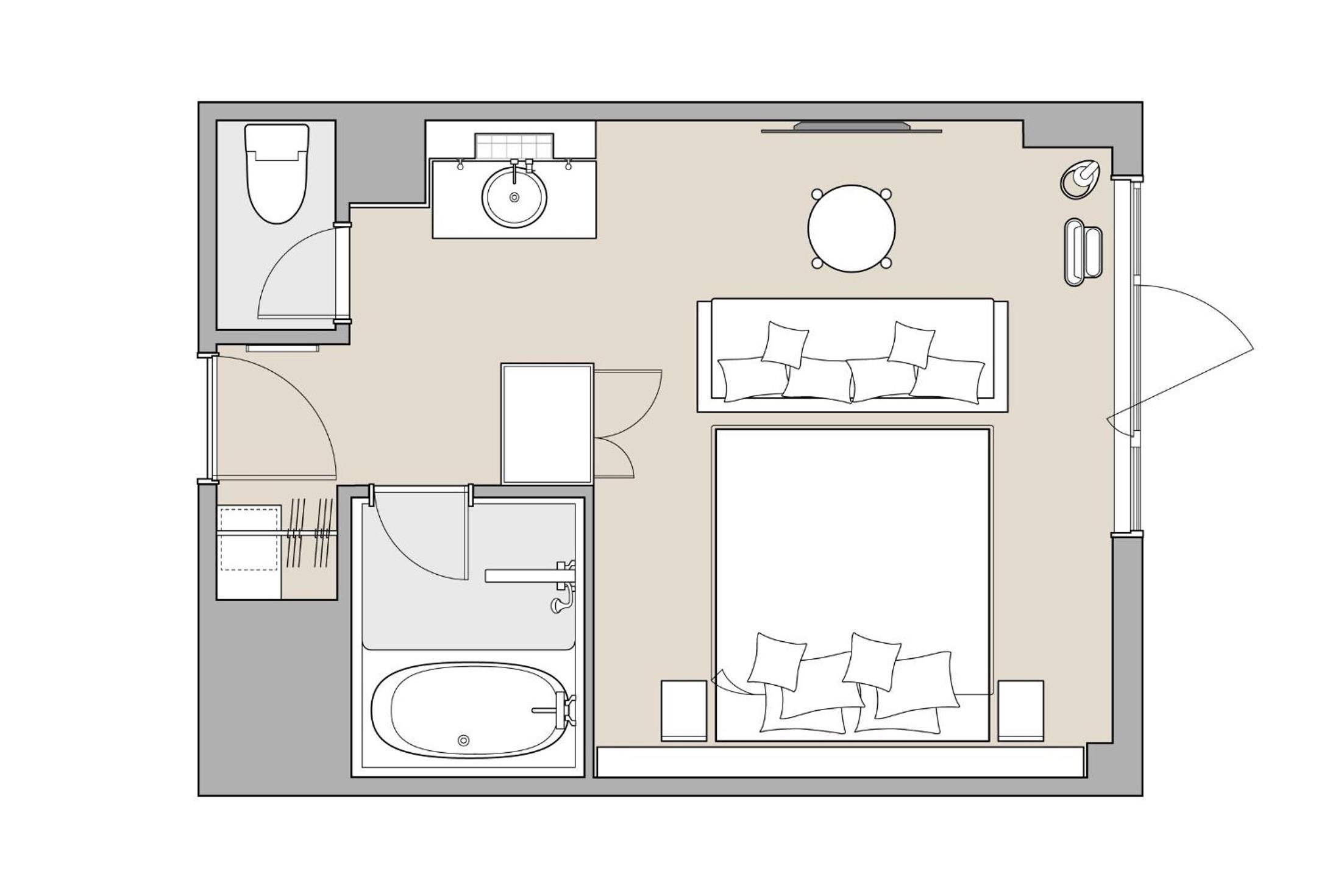 房間內部很大,2個大行李箱攤開不是問題,超愛一樓就是大超市,整間裝潢是漂亮的,服務人員態度親切,房間內有加熱式熱水壺很讚