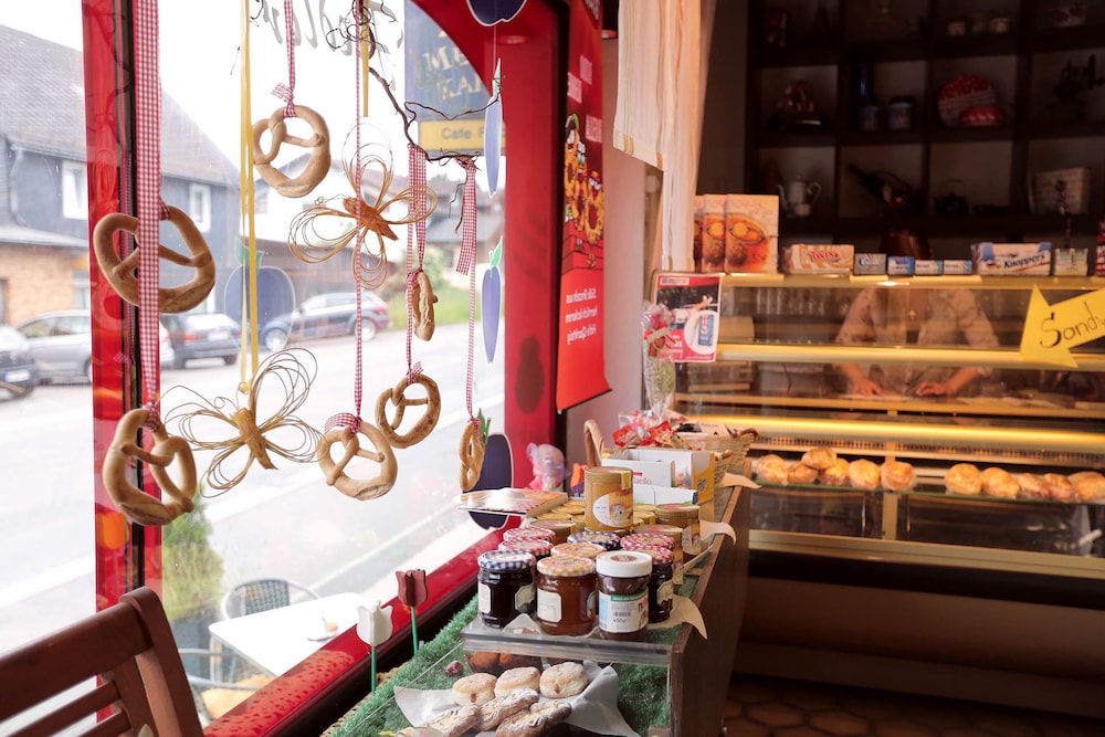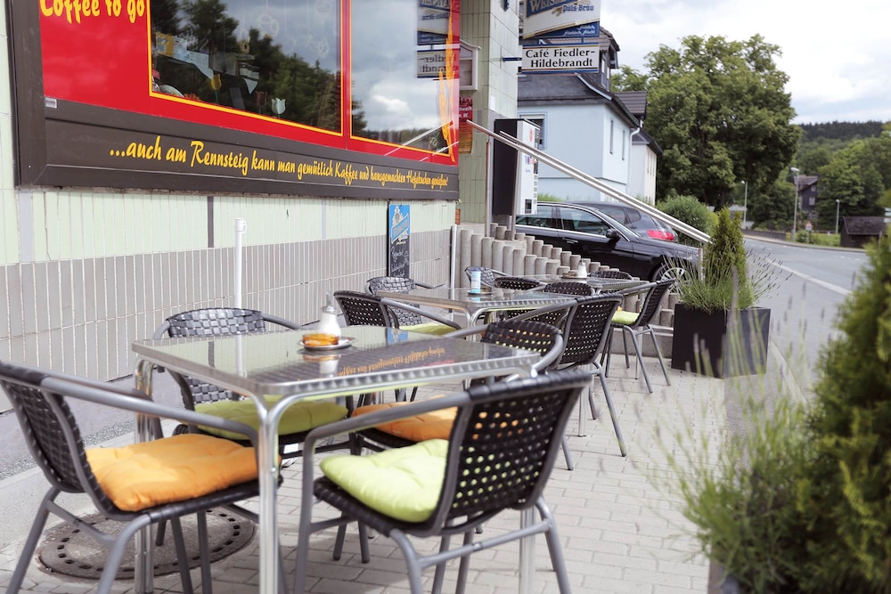 Het hotel oogt misschien wat gedateerd, maar vriendelijk, aardig personeel. Goede service. Uitstekend diner van een kleine kaart. Schone, ruime kamers met aparte zitgelegenheid op iedere verdieping met koffie en thee en lees- en spelmateriaal. Lekker terras in de zon 's middags. Verse bakker op 300mtr en nog eens een paar honderd mtr verder een supermarkt. Top locatie als stop voor der Rennsteig wandelroute van Hörschel naar Blankenstein.
