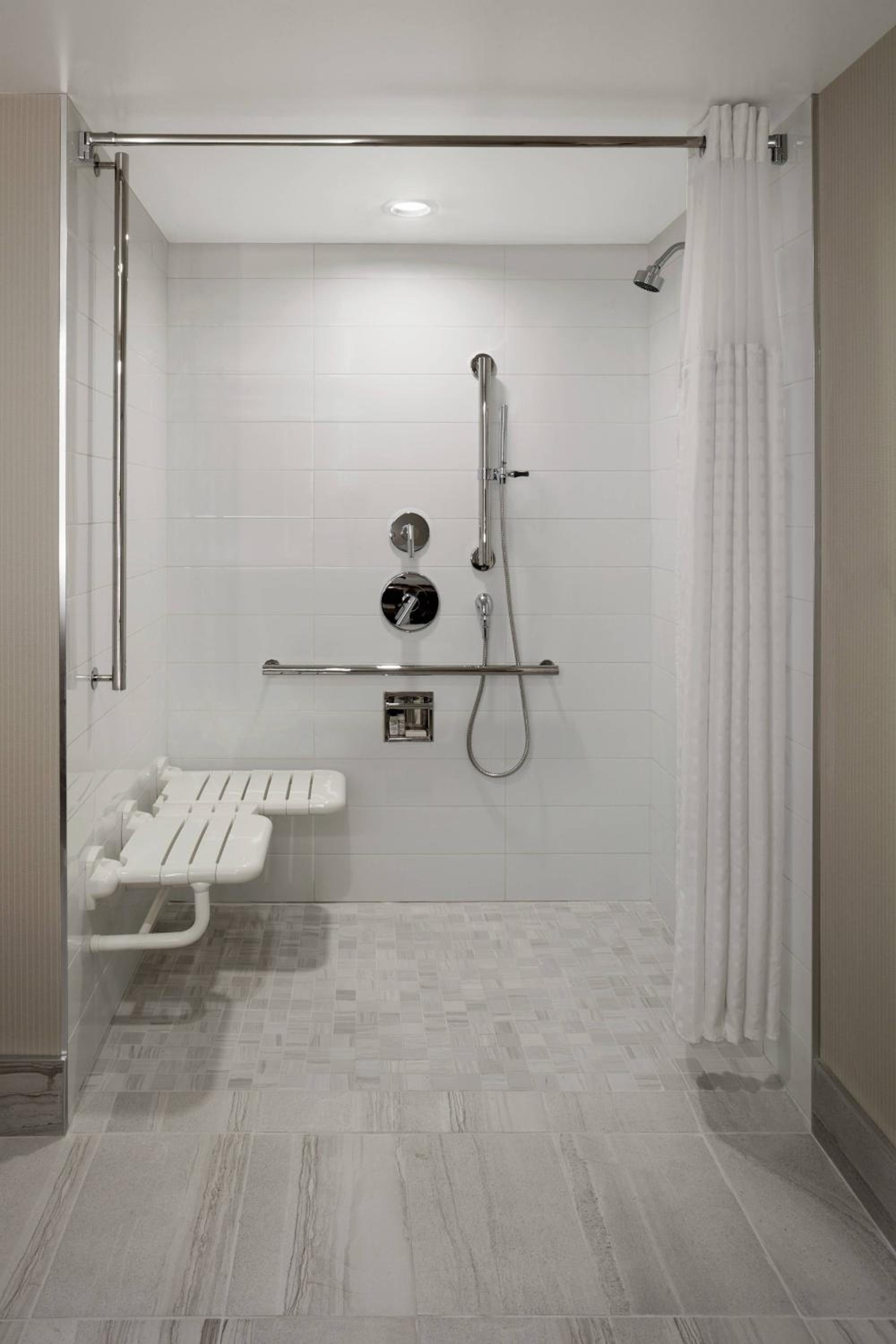 50” flat-screen smart TV is available in each room at the Delta Hotels by Marriott. A work desk and coffee maker are also provided. A hairdryer is provided in the private bathroom.