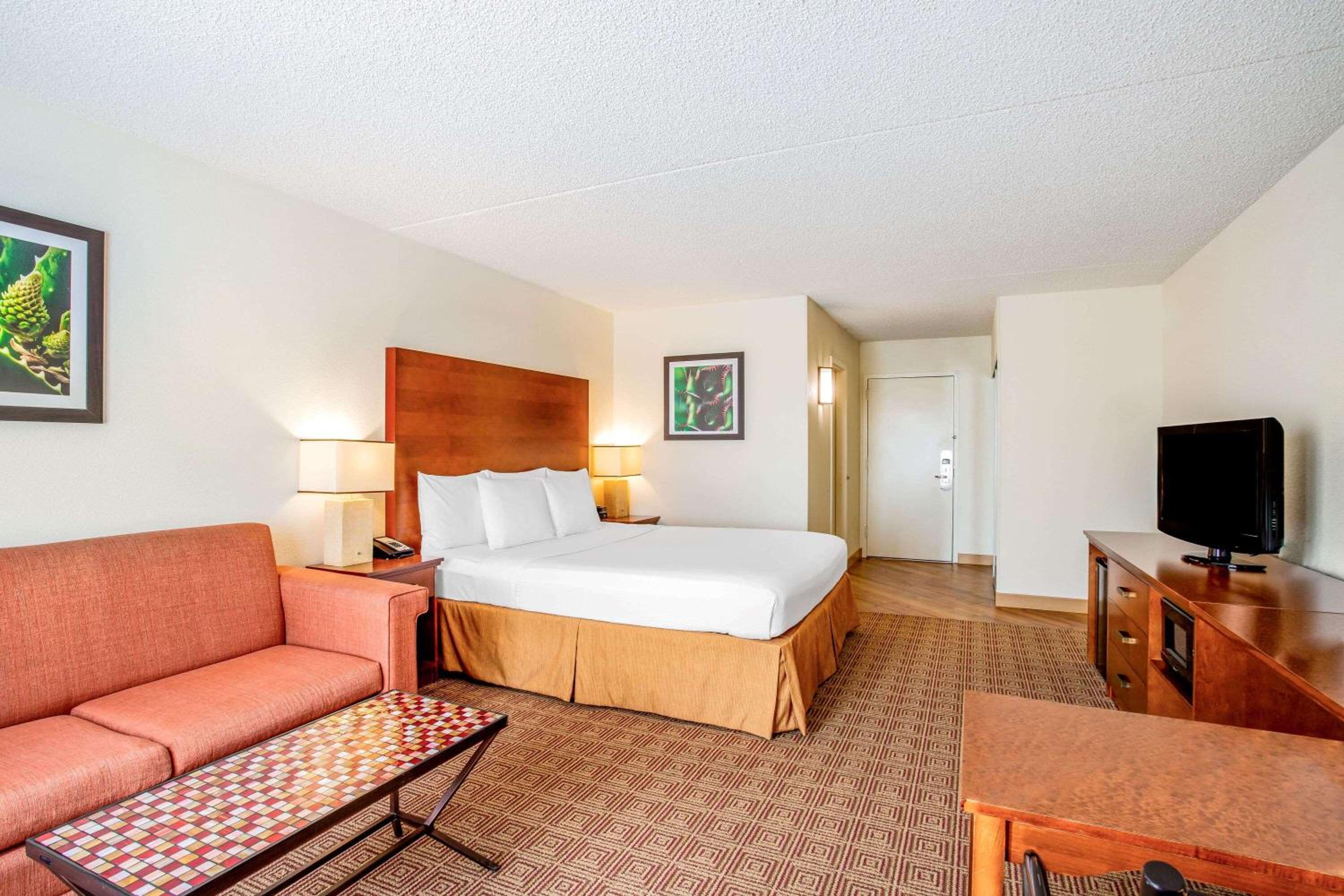 Very convenient right off the highway. In a really great location, even though it was busy street it wasn’t noisy at all. lots of places to eat in the surrounding area and shop. The room was big. The staff was really nice no issues whatsoever.