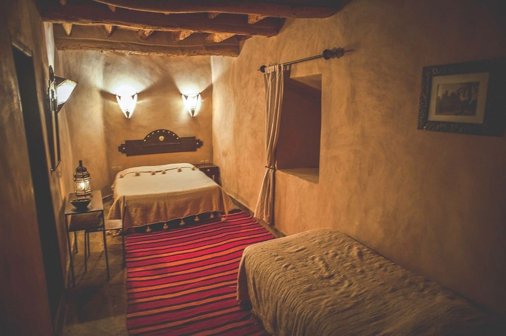 This one-of-a-kind kasbah is not to be missed if your travels take you by Ourzazate. The kasbah has been restored to its original glory by the owner using the original, traditional materials of daube and wat, and is an amazing chance to experience life inside an architectural marvel. We spent a magical winter night in the room with an adjoining living room, and the staff kindly lit us a fire after dinner. This is a historical building, with narrow staircases to reach your room, and while I wouldn't write home about water pressure, water was plenty hot and the heating/ AC installed in our rooms worked great. Food was delicious and freshly prepared- many levels above the tragic tourist fare that plagues many foreign-oriented establishments in Morocco. My only regret is that we couldn't stay any longer- I would recommend this kasbah wholeheartedly, in both winter and summer, when you'll be more likely to take advantage of the gorgeous poo