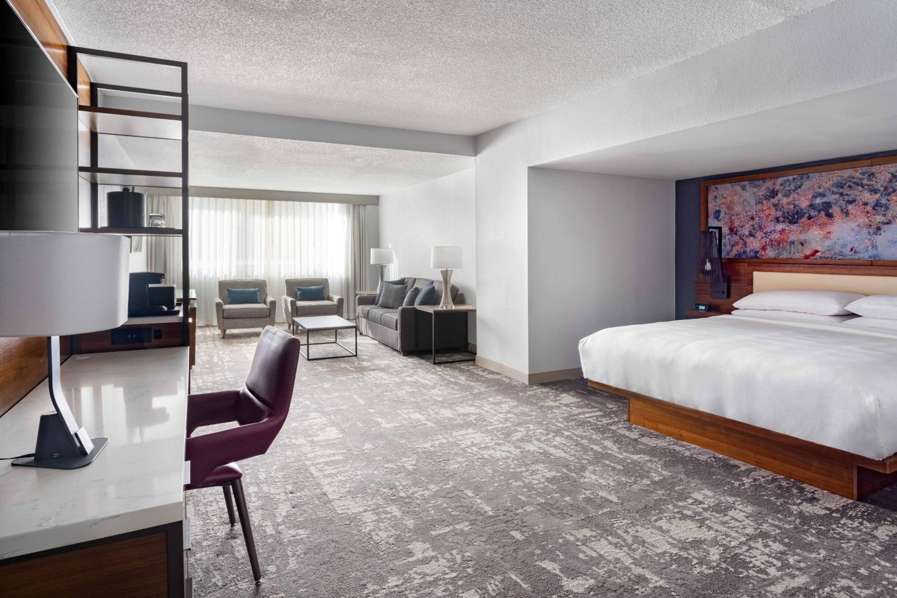 Experience comfort and style at Greensboro Marriott Downtown with plush bedding and modern amenities in every room. Relax in the spacious seating areas and rejuvenate in the well-stocked, elegant bathrooms.