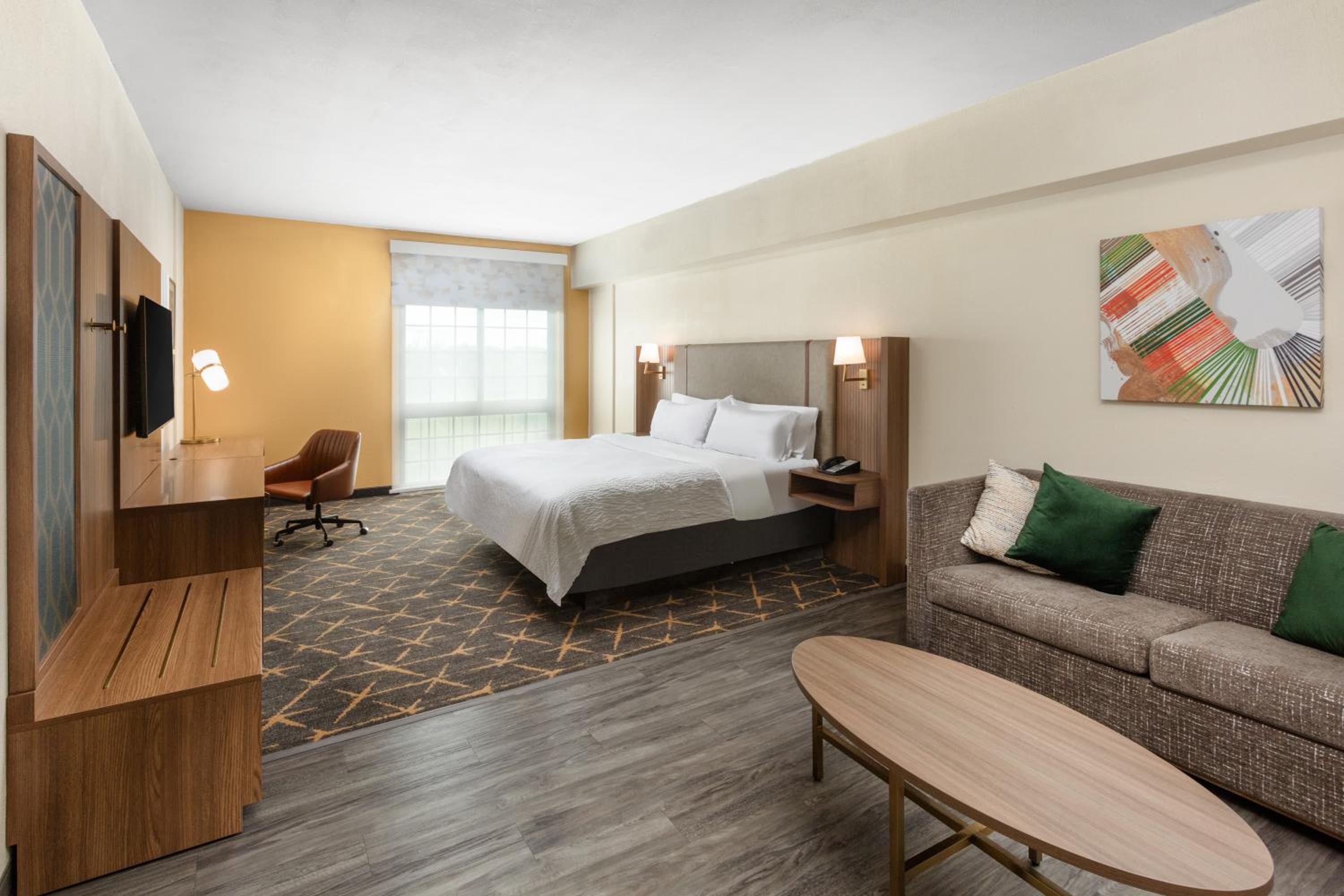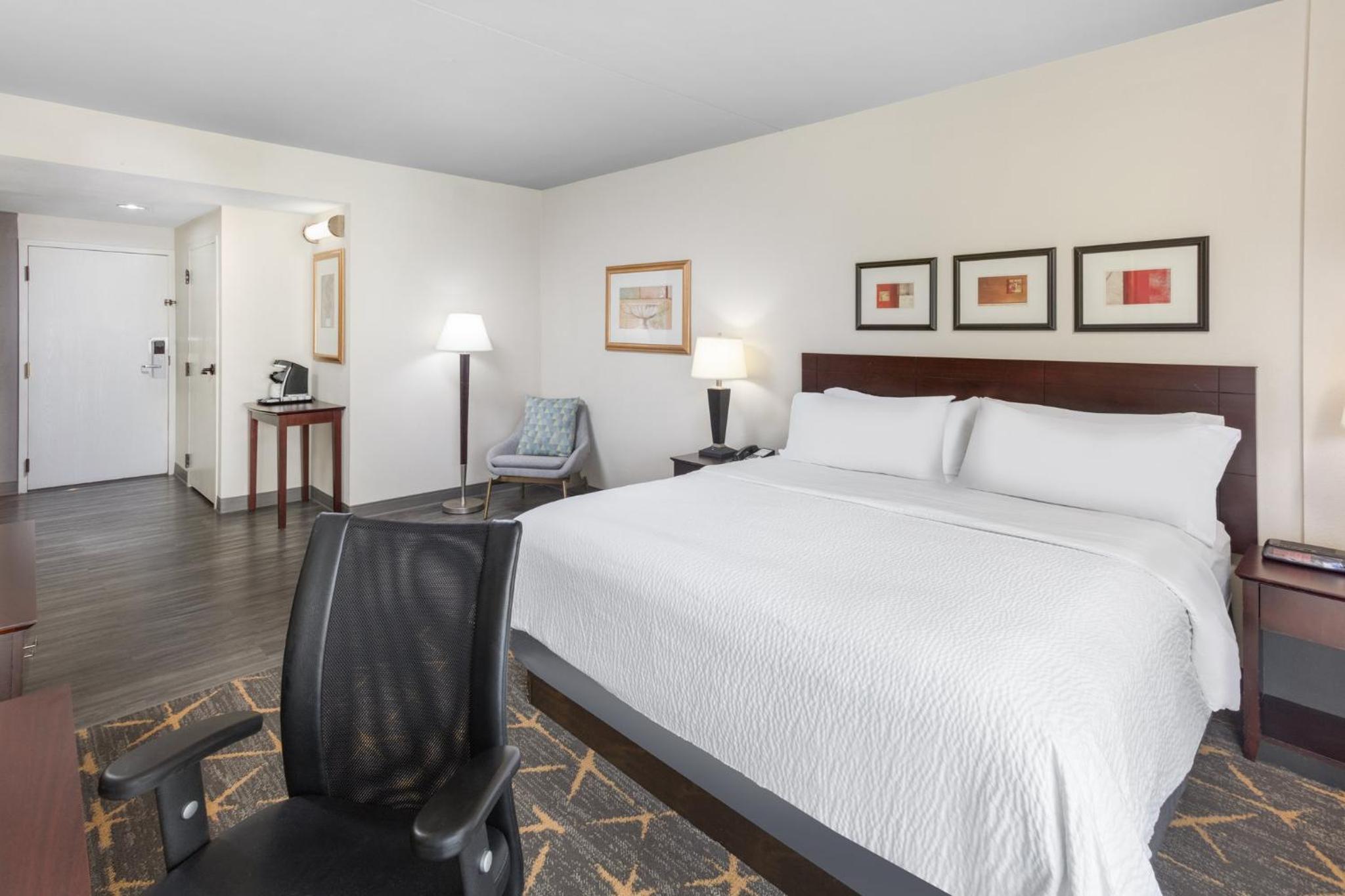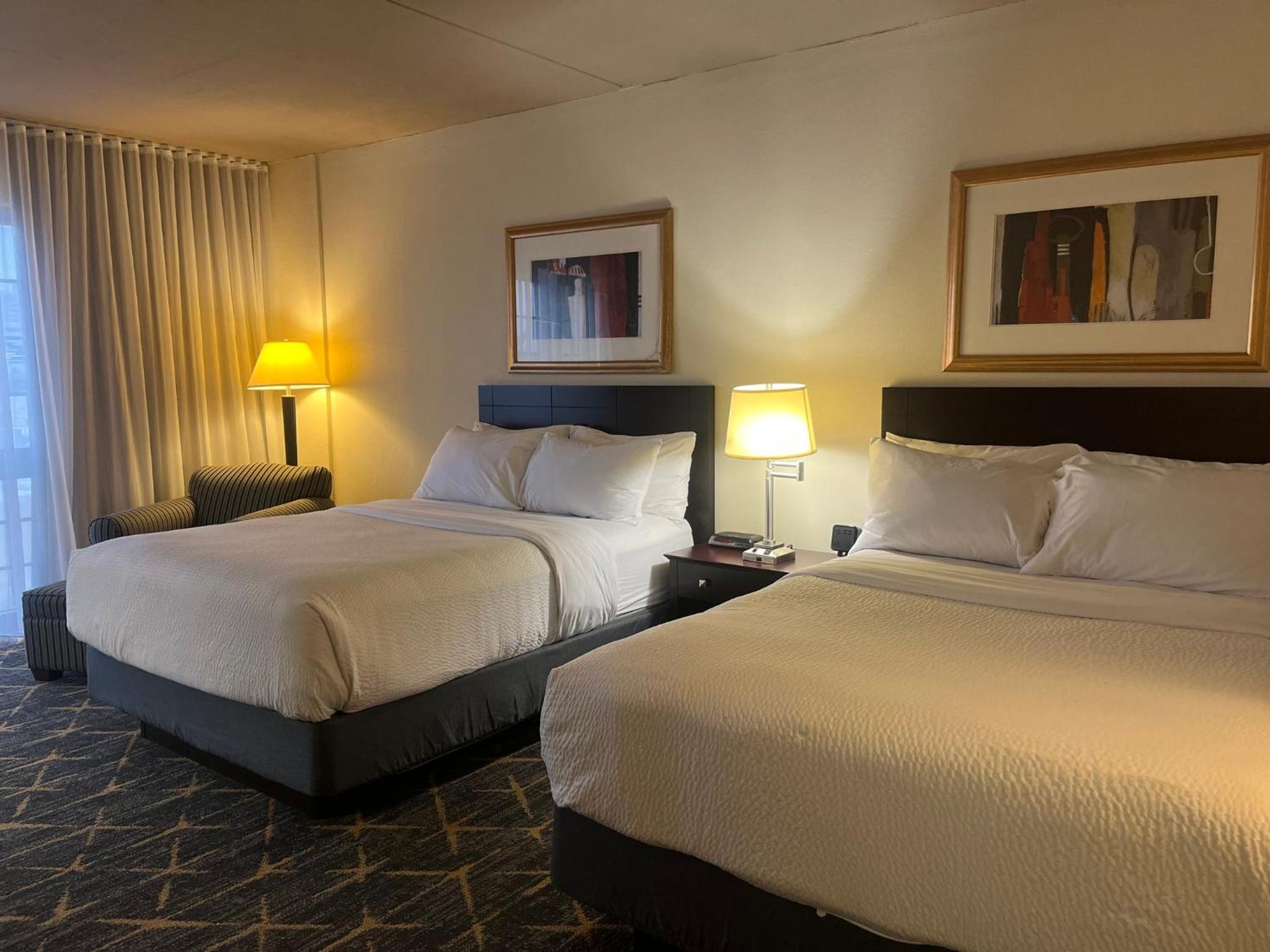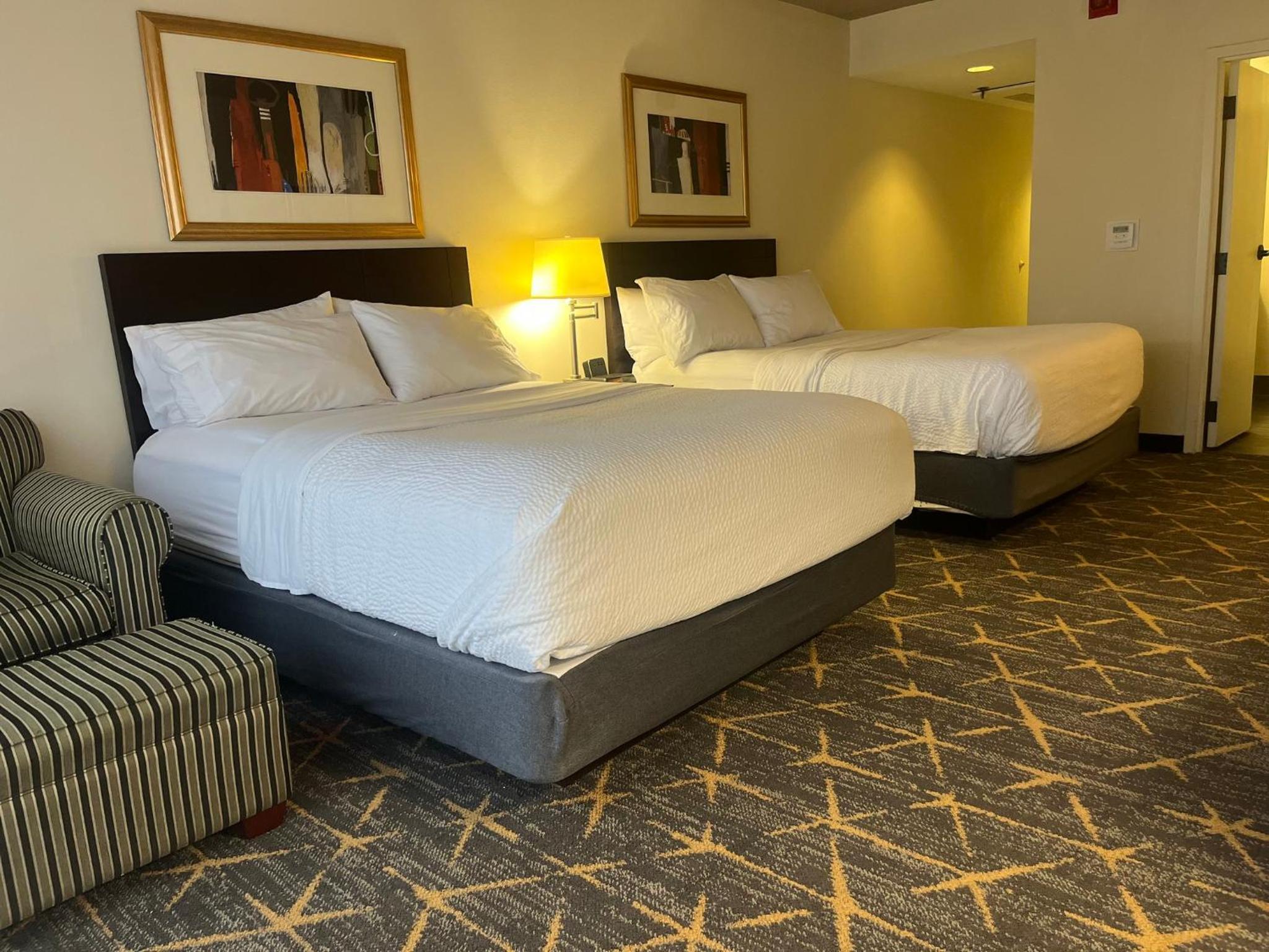 Experience comfort and convenience at the Springfield Holiday Inn. Enjoy spacious rooms with flat-screen TVs, work desks, and cozy seating areas. The hotel also offers a modern gym, indoor pool, and free airport transportation for a stress-free stay.