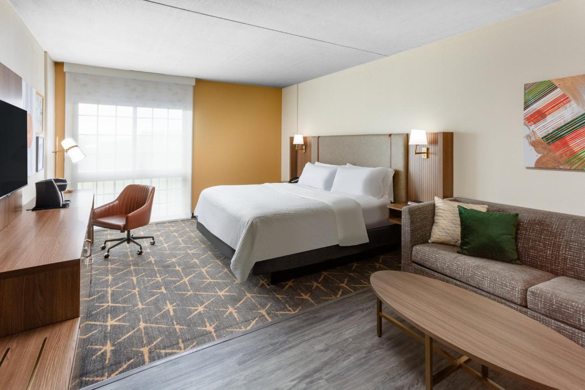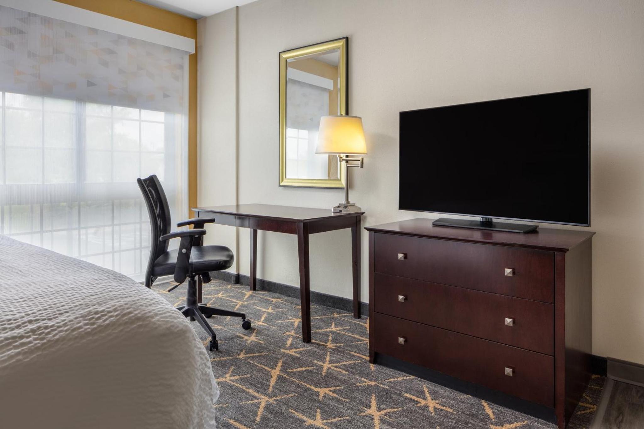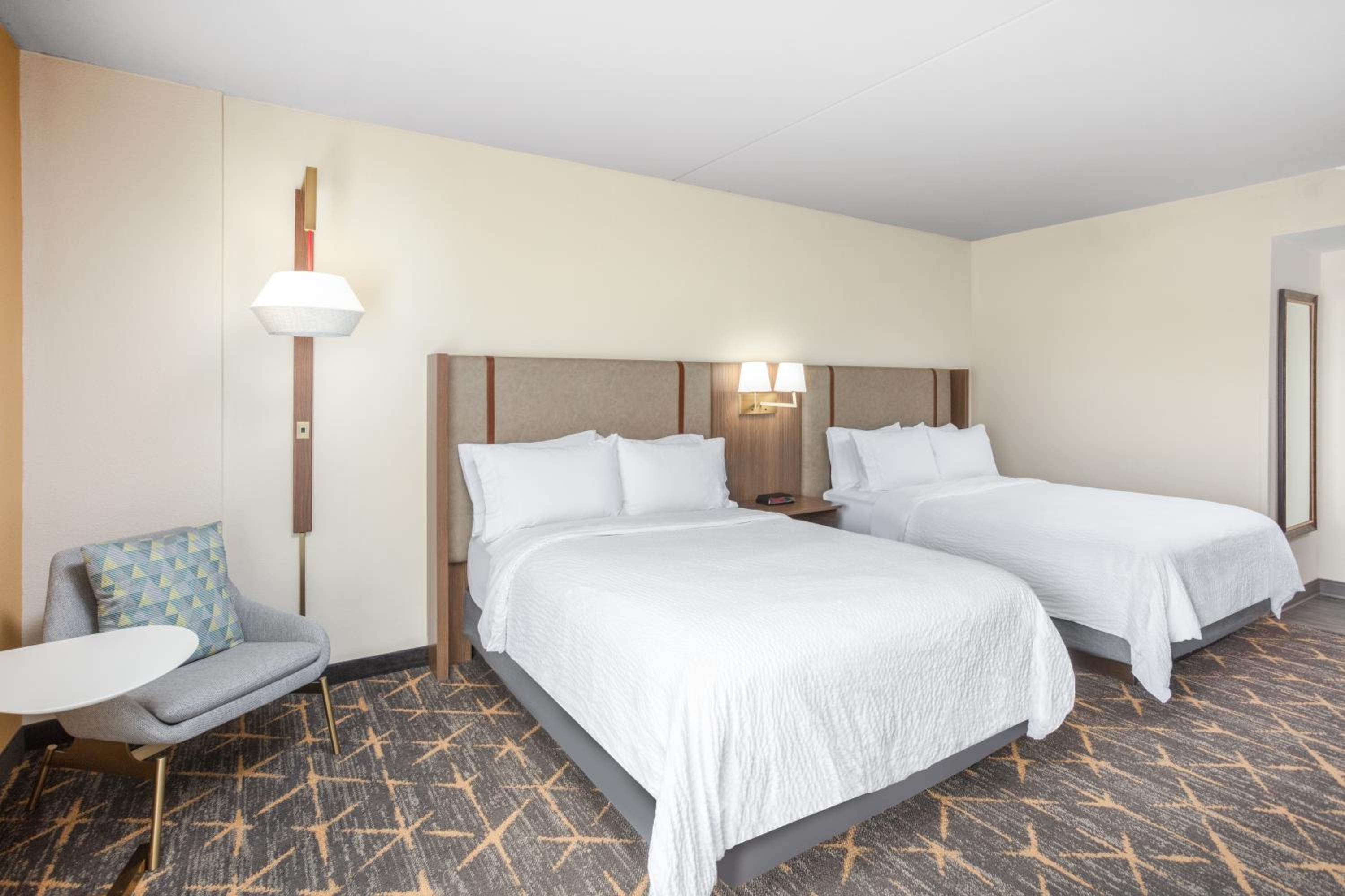 Experience comfort and convenience at the Springfield Holiday Inn. Enjoy spacious rooms with flat-screen TVs, work desks, and cozy seating areas. The hotel also offers a modern gym, indoor pool, and free airport transportation for a stress-free stay.