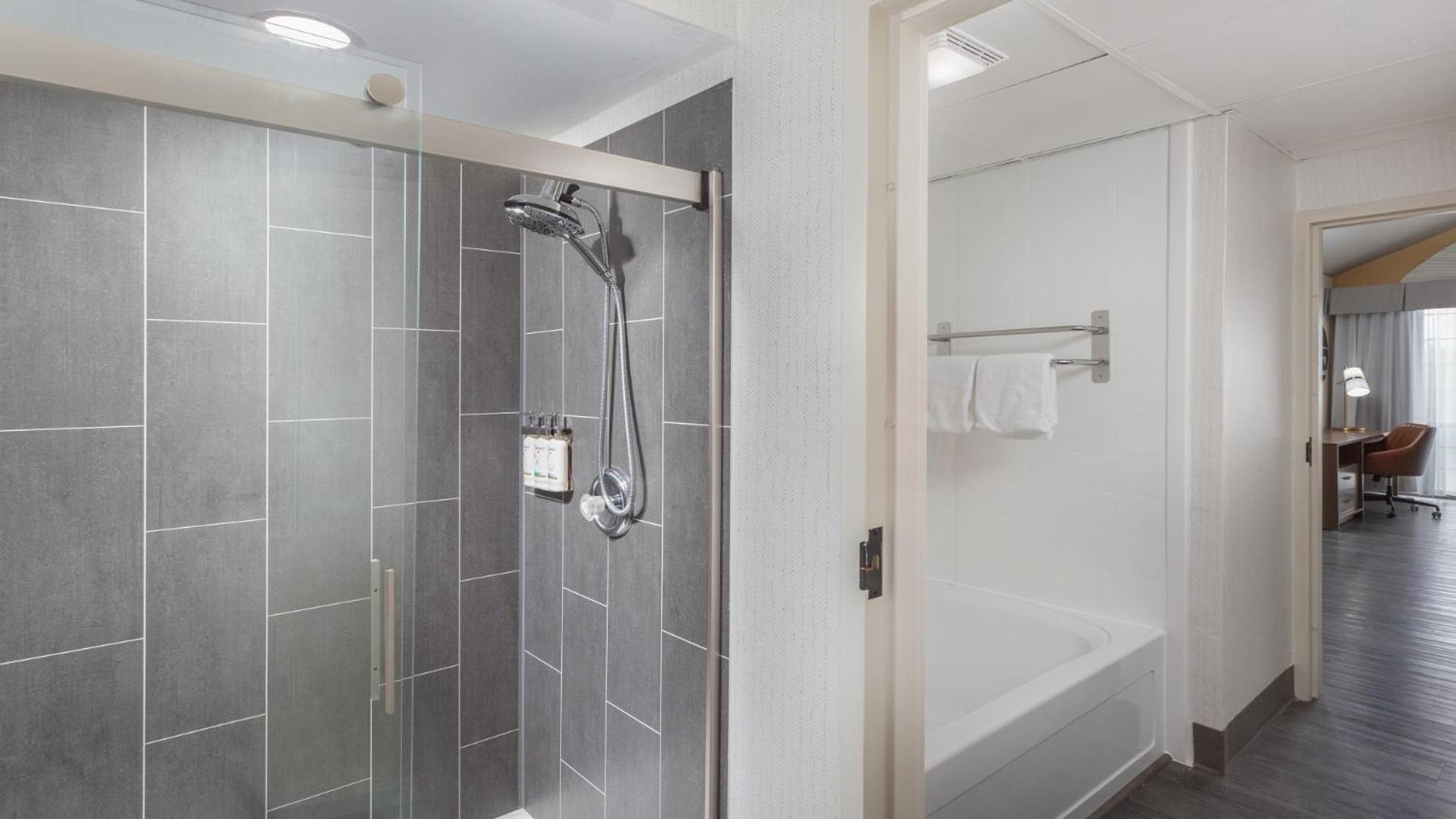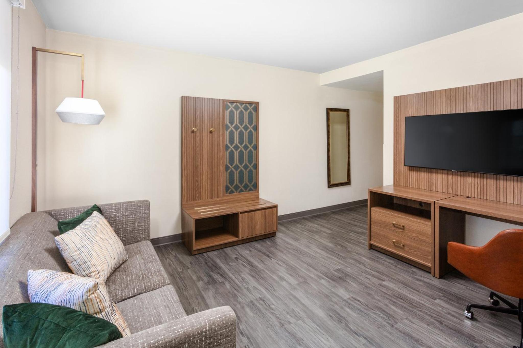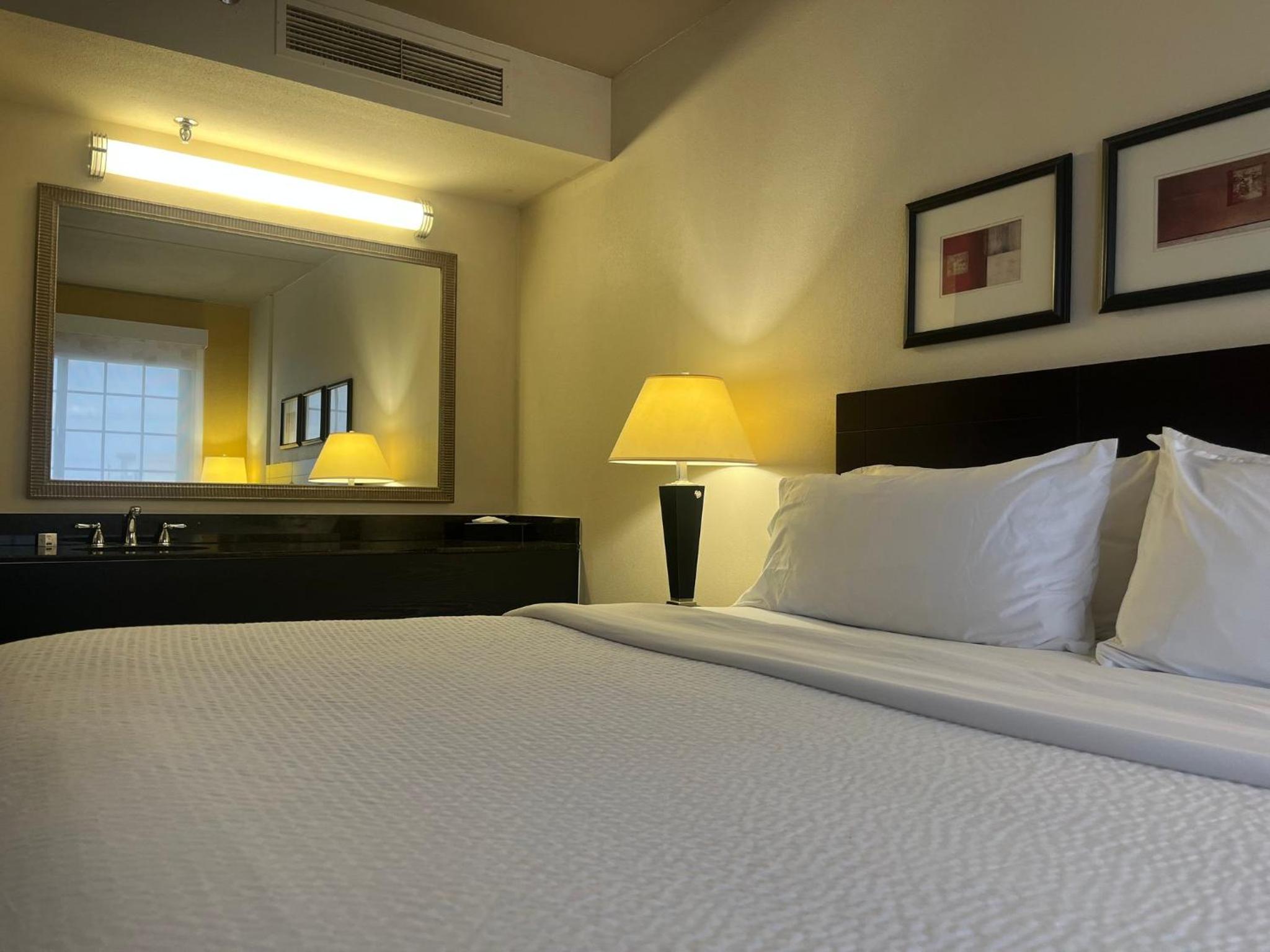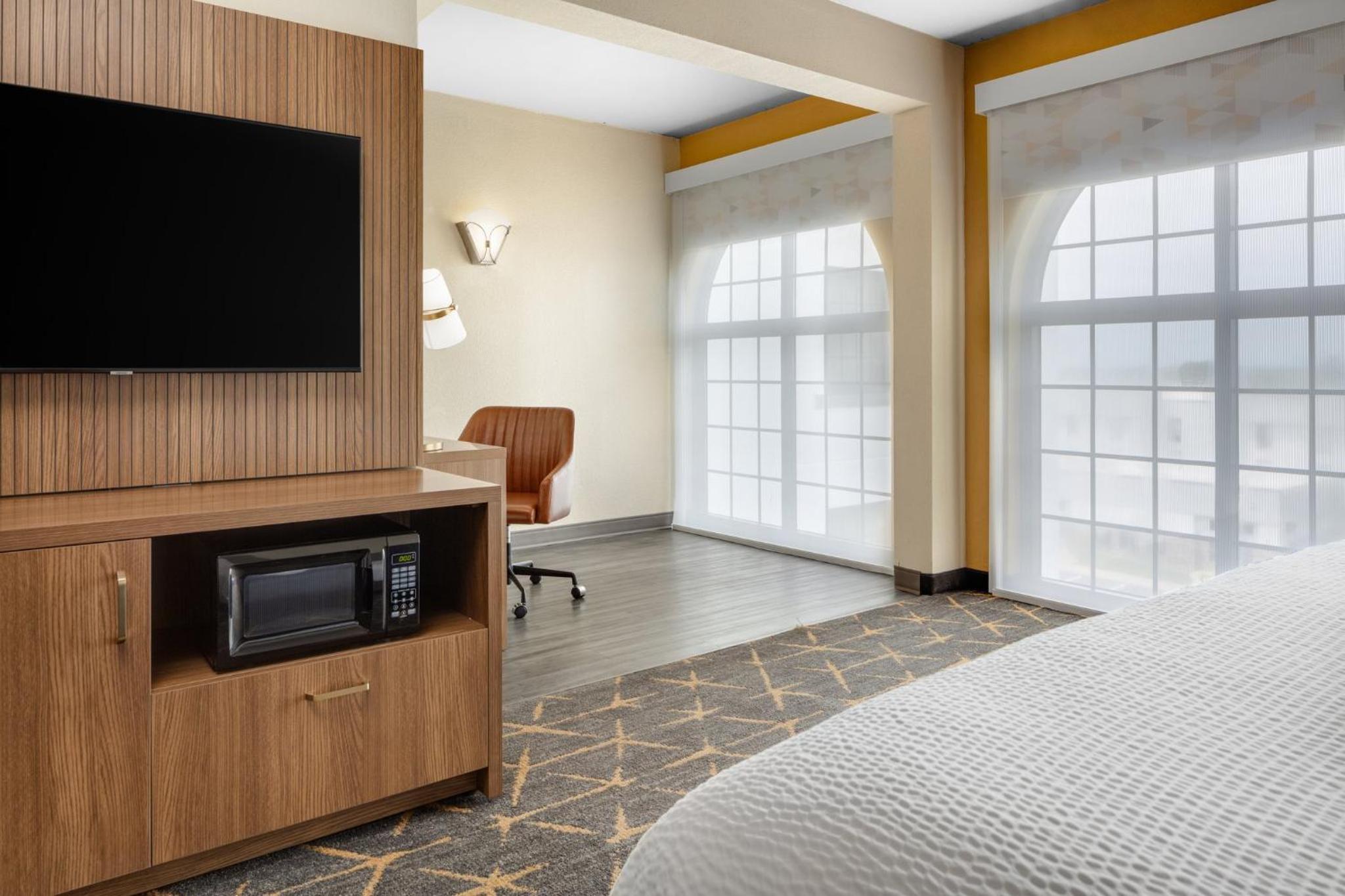 Experience comfort and convenience at the Springfield Holiday Inn. Enjoy spacious rooms with flat-screen TVs, work desks, and cozy seating areas. The hotel also offers a modern gym, indoor pool, and free airport transportation for a stress-free stay.