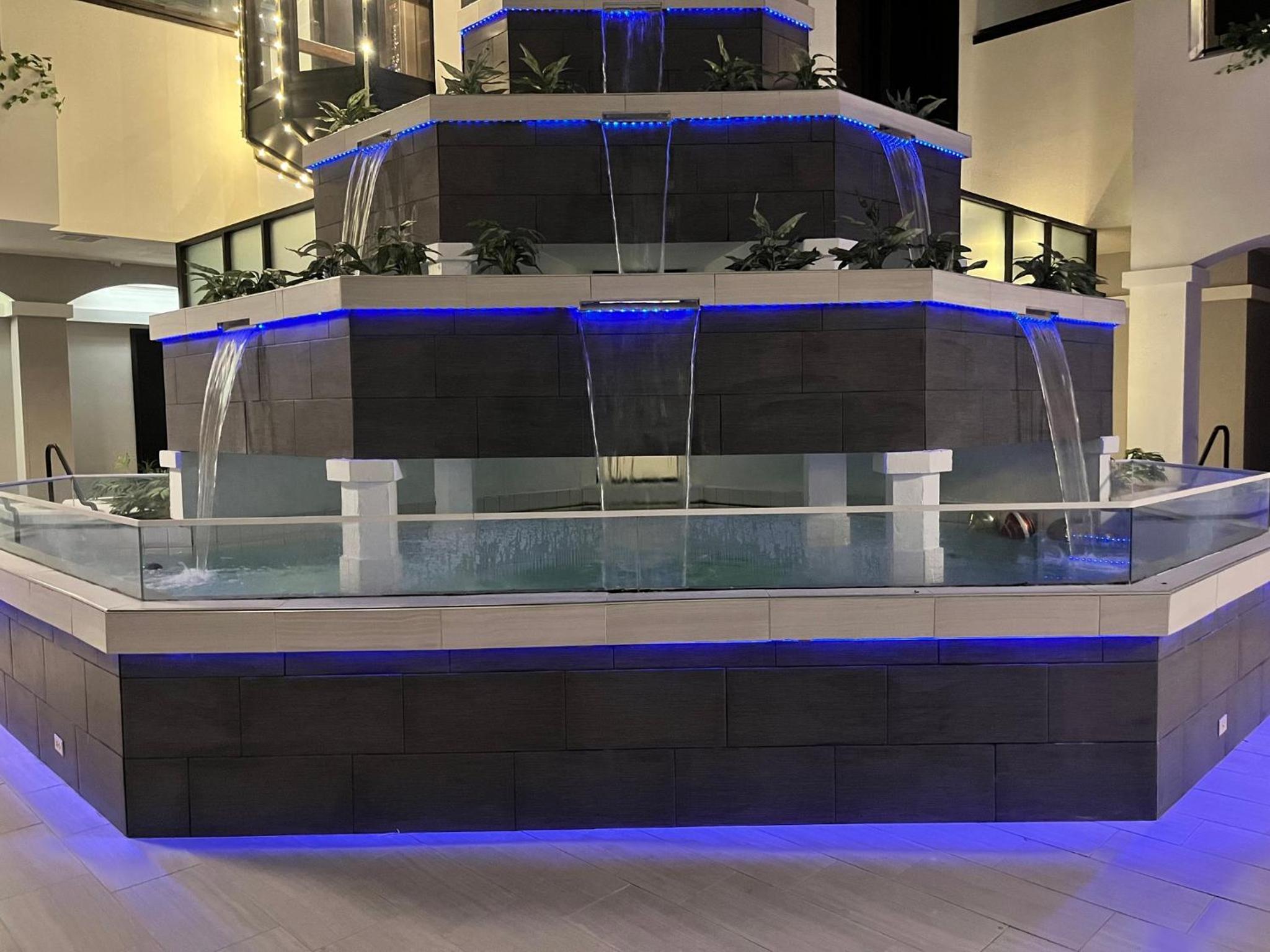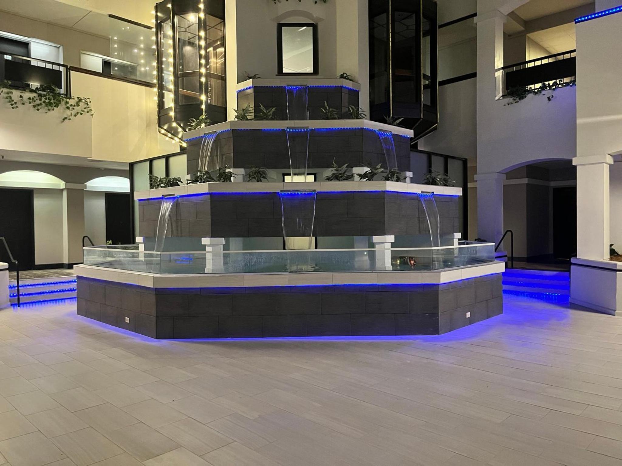 If they are not going to use the what may have been a water feature, that could use something so not so ugly in its place. Maybe artificial plants/trees..... it really is an eyesore.