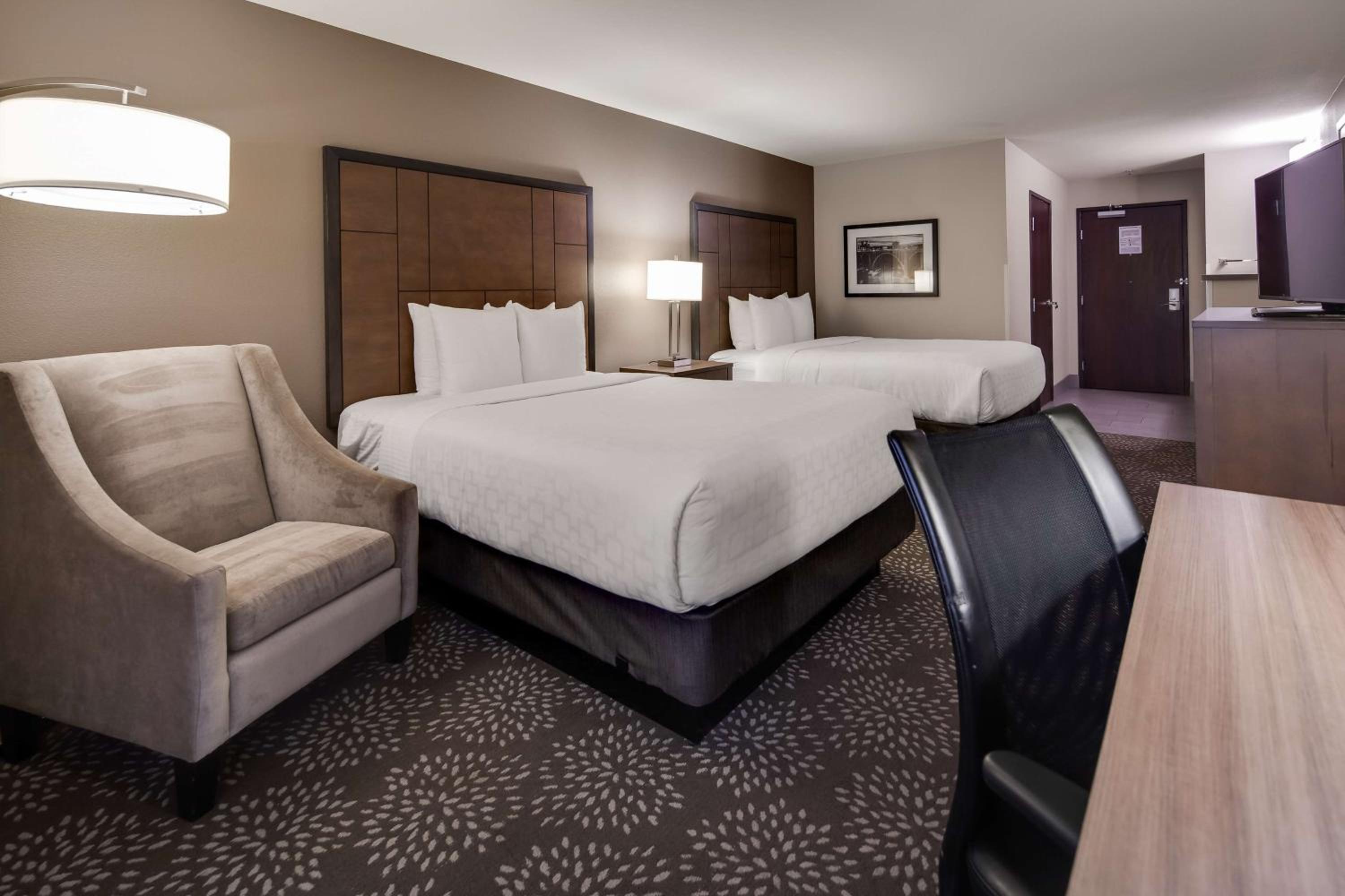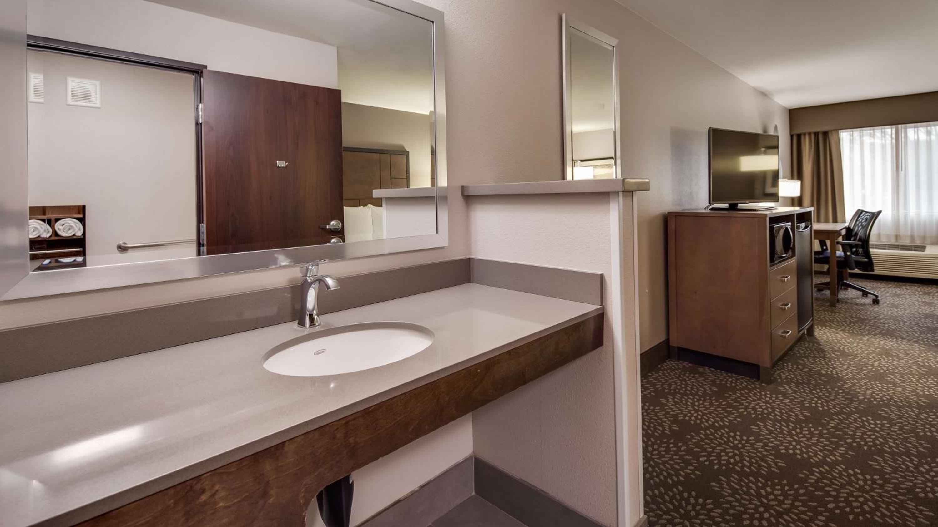 Each room at Best Western Plus Spokane North is designed for comfort and convenience, featuring a desk, flat-screen TV, private bathroom, and air conditioning. With bed linen and towels provided, guests are ensured a cozy stay.