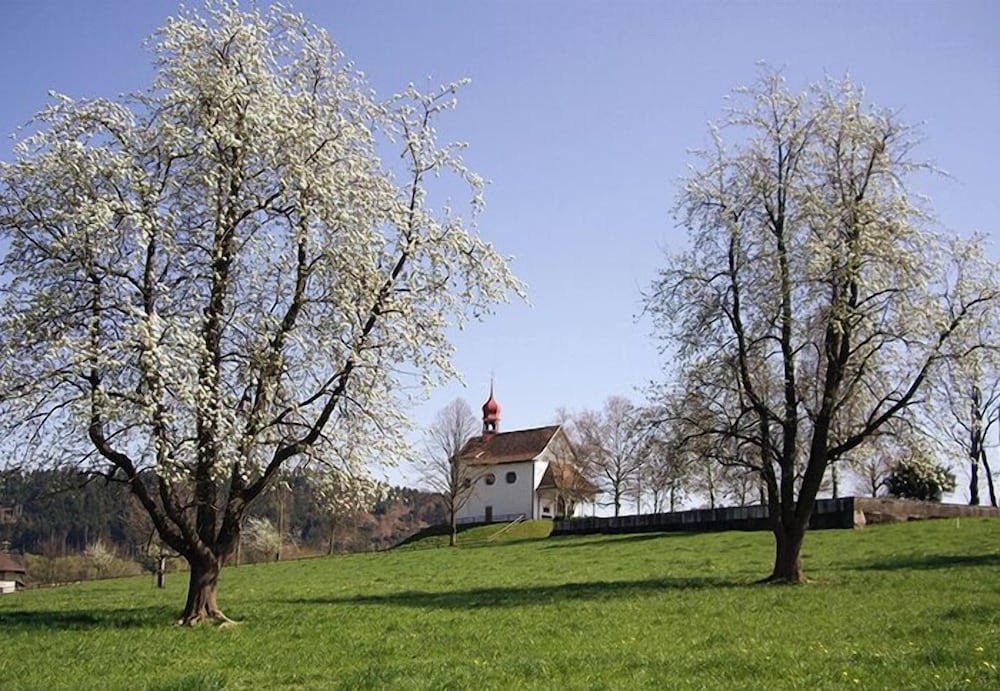 This was a gorgeous apartment and we really didn't want to leave. A bit tricky to find (Google sent us the wrong way round), but then we found the shorter way! Surrounded by fields and Swiss cows with bells, plenty of parking, a code to get into the building, apartment, washing room and parking. The apartment was so modern and had everything you needed (apart from air conditioning - that would be my only improvement!). The apartments are so soundproof that you don't hear any other guests, the main beds are like sleeping on clouds, however the sofa bed was very squeaky (rolling over woke me up everytime!). The tele had the BBC so we got to watch the Olympics (which was a huge unexpected bonus). A 30 min drive to Lucerne, walks and bike rides straight from the door, a local shop 1 min walk away.