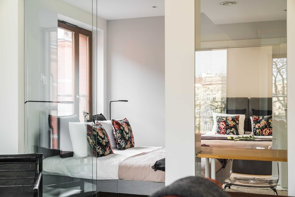A great find in Krakow! It's hard to find something this spacious in Europe. Not only that but it actually had Air Conditioning....and it was as advertised! Europe has an issue with saying something has AC and then you later realize it's a portable unit in 1 room or just a fan!....But NOT THIS PLACE. This had TRUE AC in every room (although controlled by 2 different remotes) but this AC was a life saver as Poland was having a heat wave during our stay. Beds are not the most comfortable, but the rest of the place made up for it.