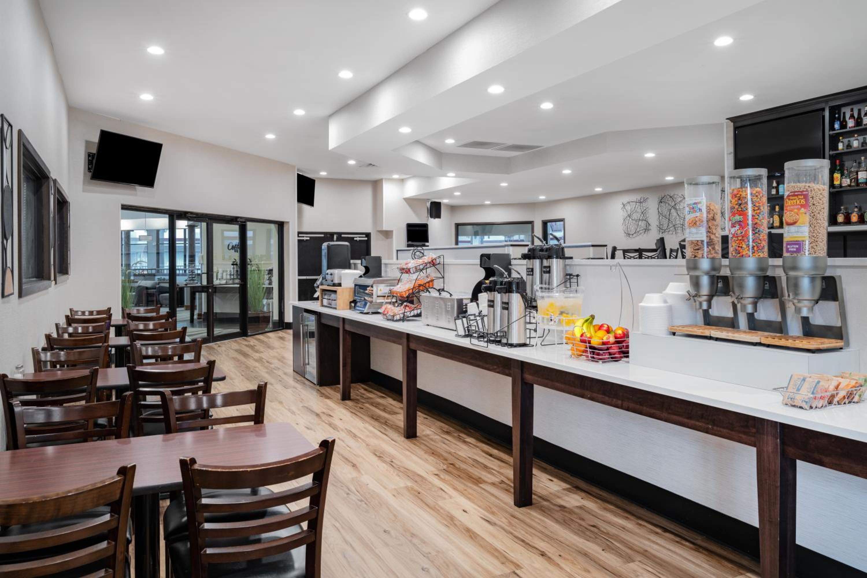 Breakfast was decent and staff were friendly enough. There is plenty of parking space in the lot and several restaurants in walking distance. The room was a decent size.
