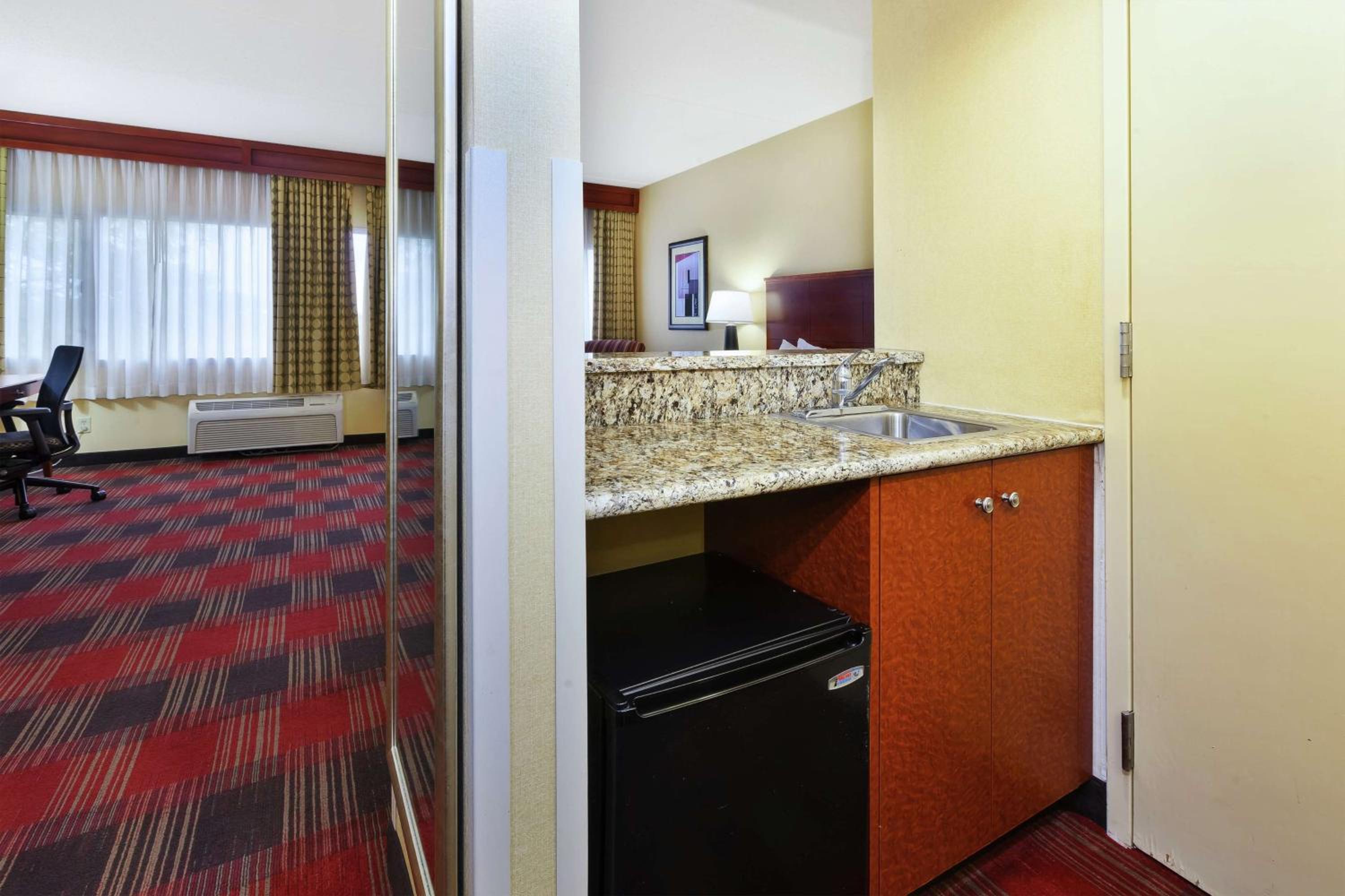 From the moment we walked in to the hotel, there was a strong musty smell. I understand that there are ongoing renovations but the smell was just so pungent. It’s not a welcoming sign. I then went to check in and requested, if possible, 2 connecting rooms, as I was traveling with kids. The front desk lady proceeds to tell me that “she has just been there for 2 weeks and doesn’t know how to do that”. Puzzled, I ask her to at least tell me the room numbers to know if they are even close to each other. She says “hang on” and starts getting the keys ready without telling me the room numbers. I ask her again to tell me the room numbers, and she finally does, tells me they are “close enough” and that they are fully booked so that’s that. We went to our rooms, which were close to each other, and walk in to find another incredibly pungent smell of chlorine. I then realize that the smell is coming from the pool right outside, we have a balcony facing the indoor pool. After some time in the room, I realize the strong smell is making my head and throat hurt so I ask if we could change rooms to a non balcony one, as I had no idea having a balcony would come with this strong smell inside the room. I’m again told that they are fully booked and that I should have known about the smell since I have a balcony room. It was so condescending. I then told the front desk person that having a balcony facing a pool shouldn’t necessarily mean this incredibly strong smell inside the room. I ended up trying to sleep with a facemask and woke up with a headache. It was the most disappointing and awful stay I’ve had at a DoubleTree hotel. Definitely not the service or quality I’ve grown accustomed to expect from a DoubleTree hotel. I filed a complaint about the staff service and the awful experience inside my room and never heard back from anyone. AVOID THIS PLACE